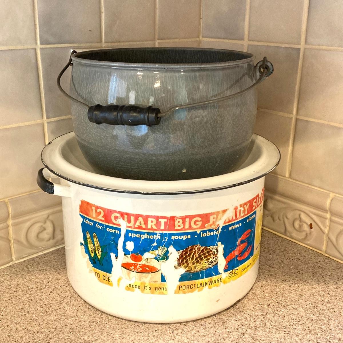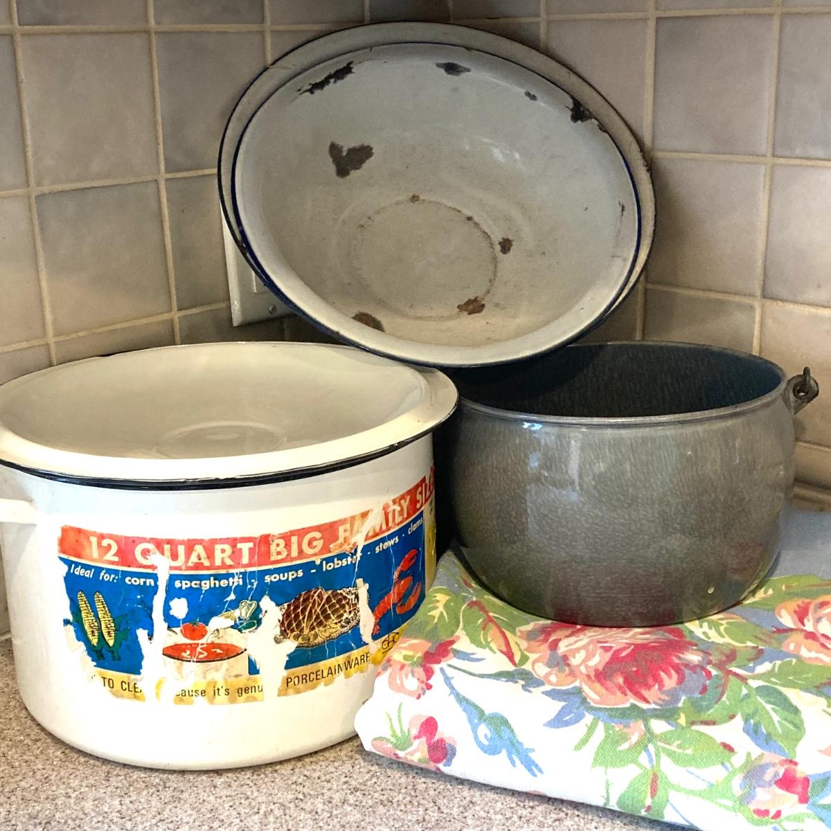 LOT 77: Vintage Enamel and Nickel Steel Cookware