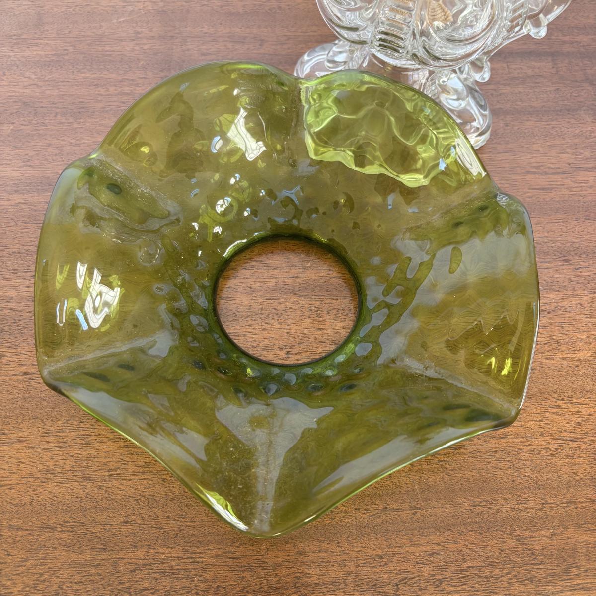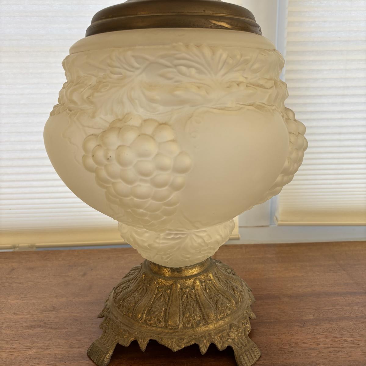 LOT 83: Vintage Electric Parlor Lamp & Hurricane/Oil Lamp w/Green Glass Ruffled Shade