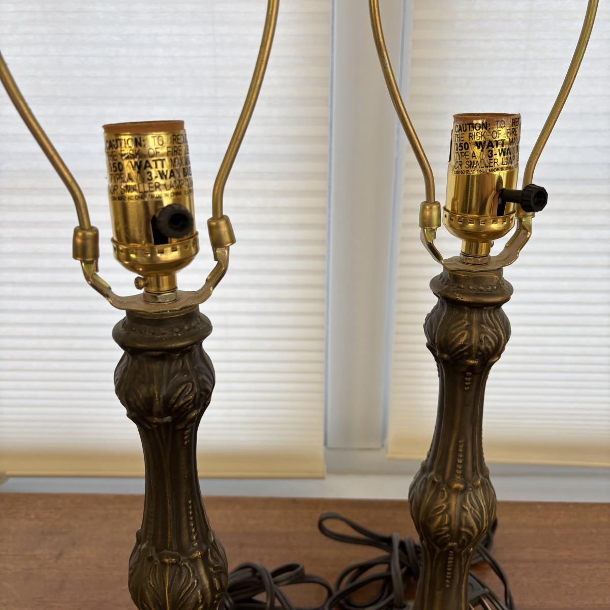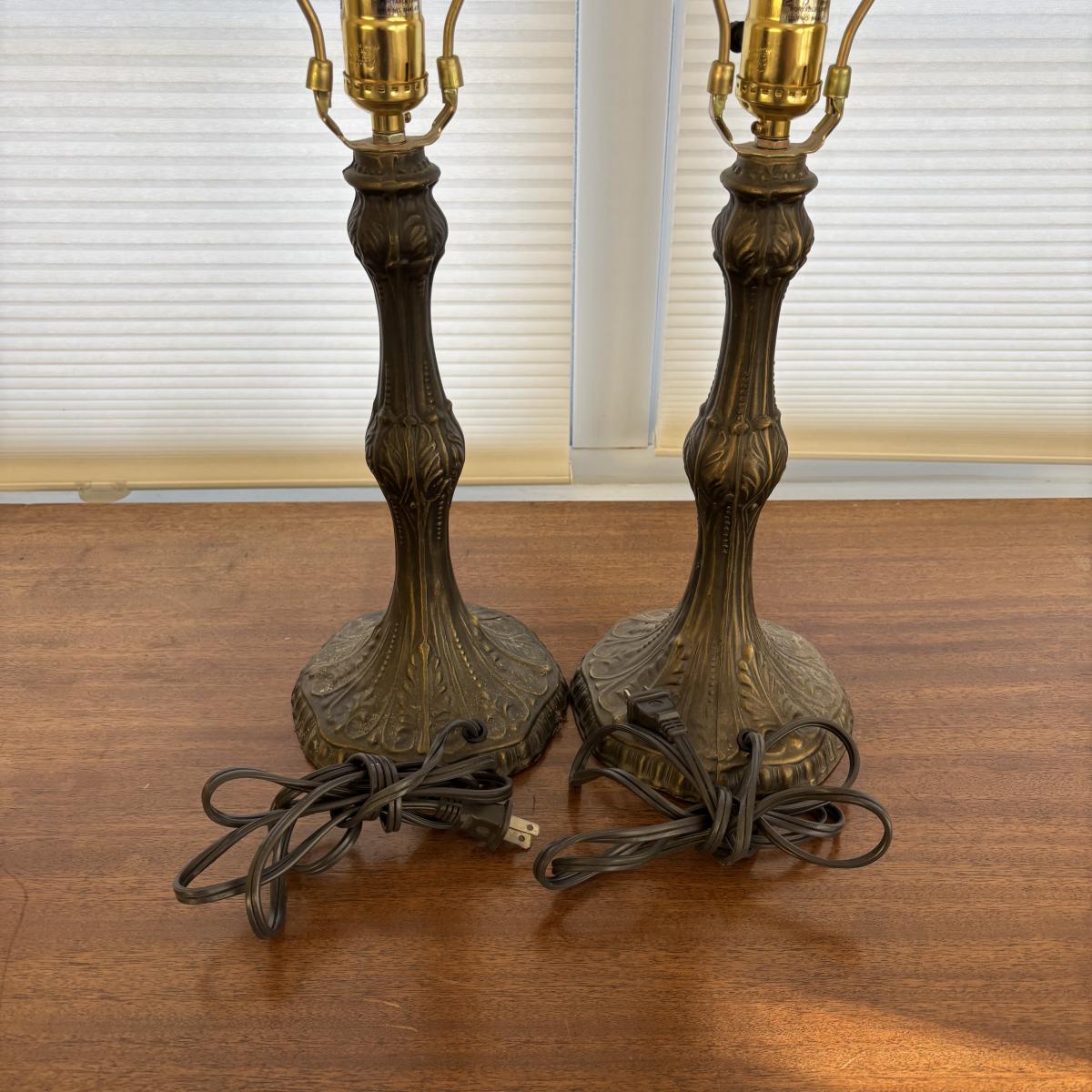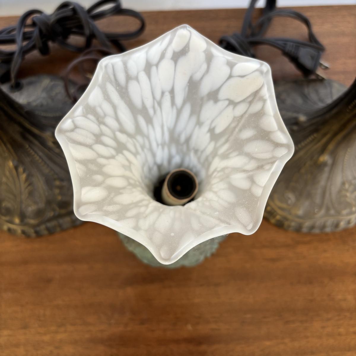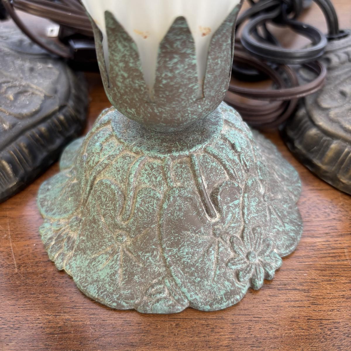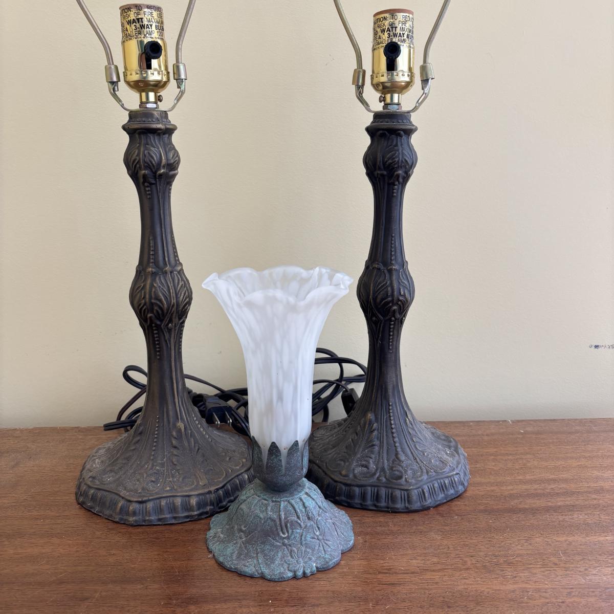 LOT 84: Frosted White Trumpet Tulip Accent Lamp & a Pair of Matching Metal Lamp Bases