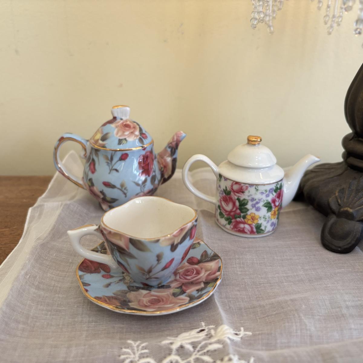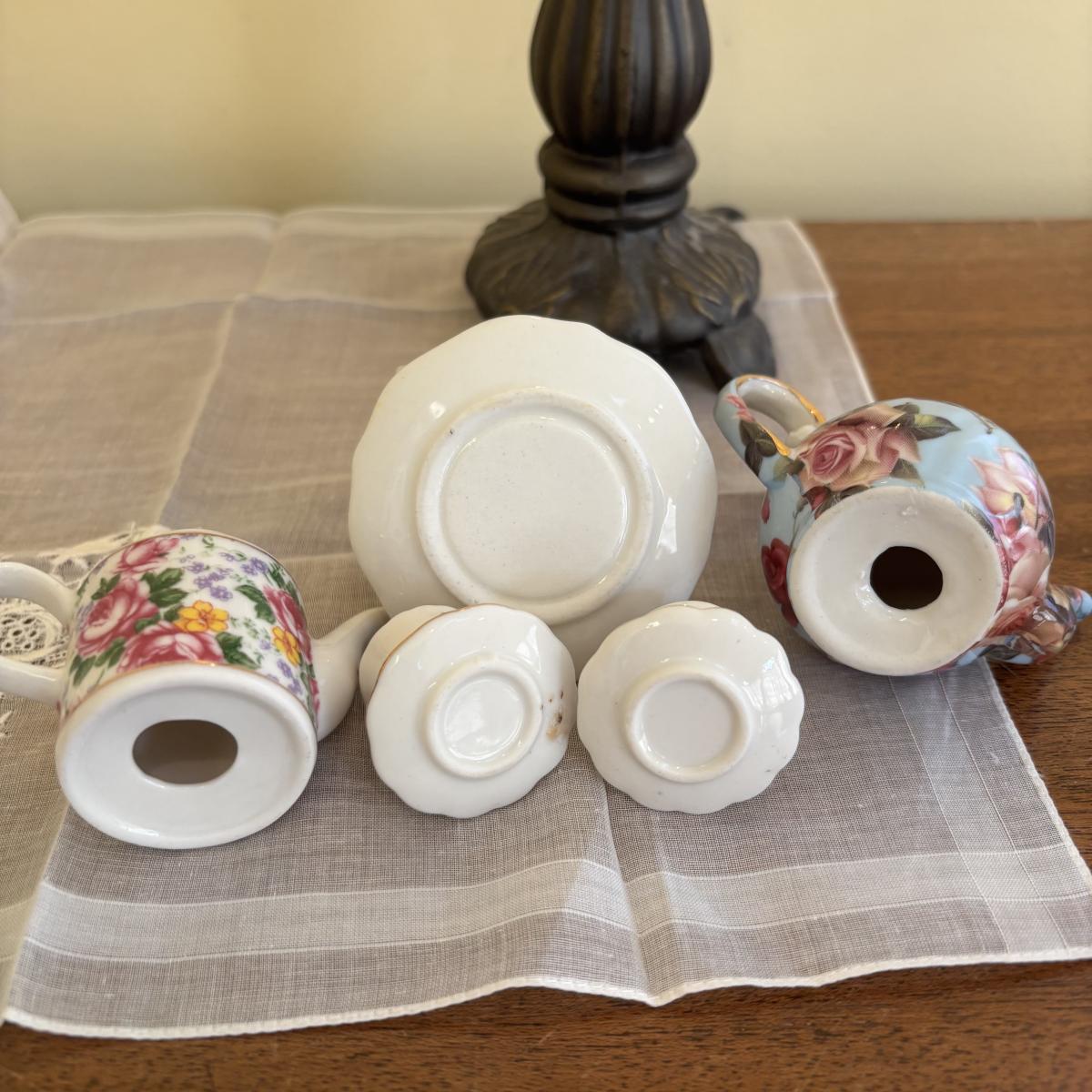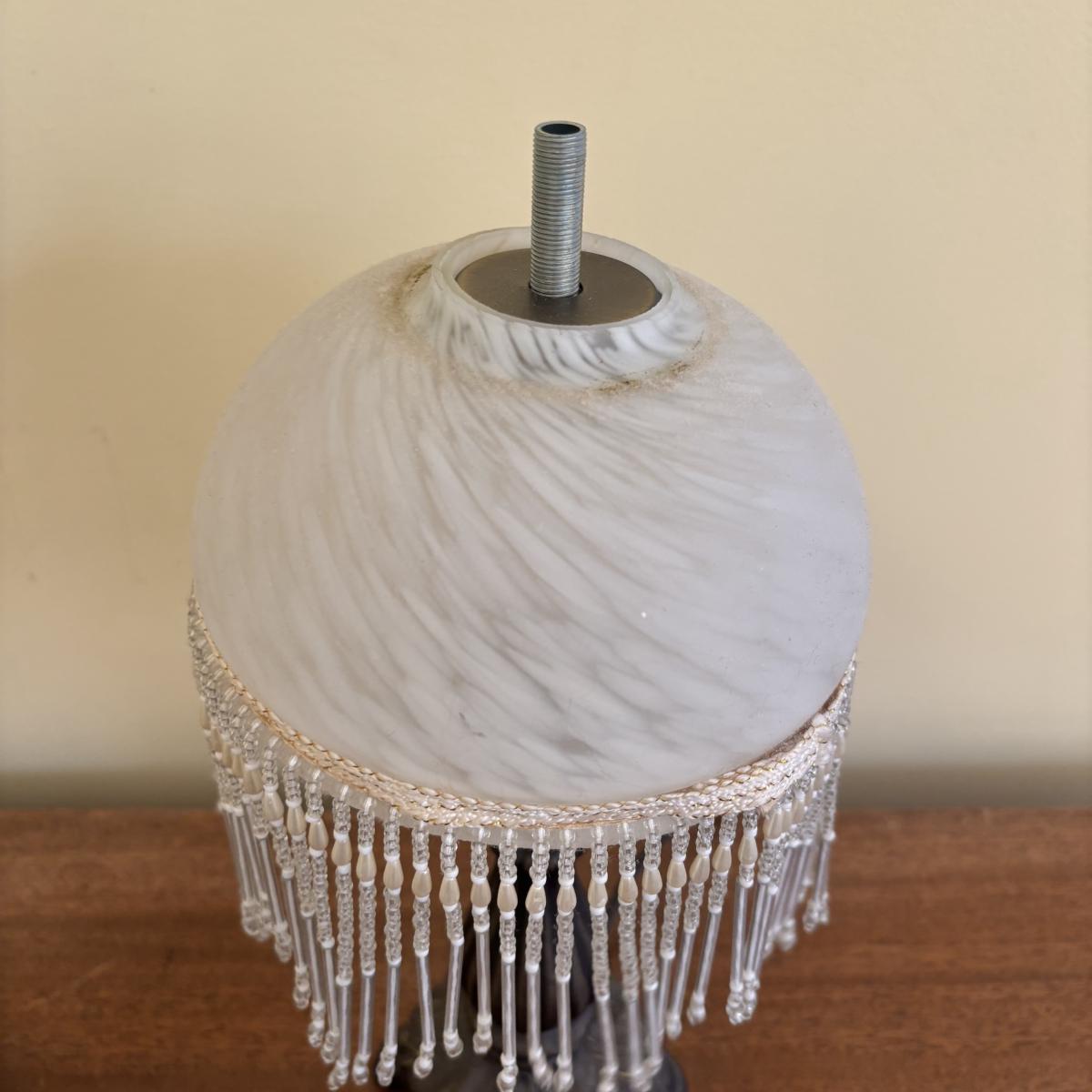 LOT 138: Victorian Style Table Lamp w/Glass & Beaded Shade, Miniature Teapot Collectibles