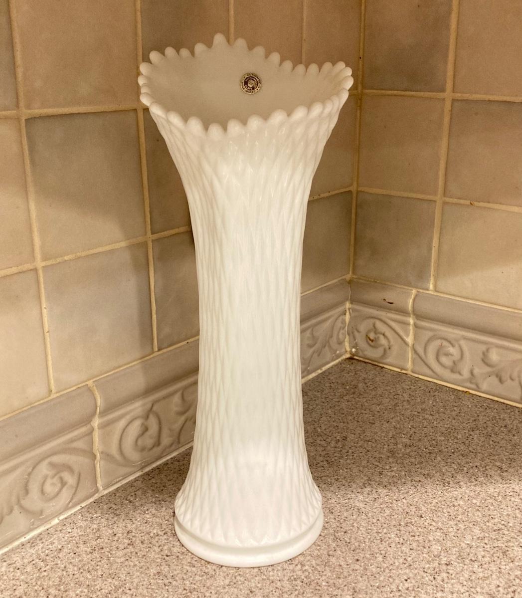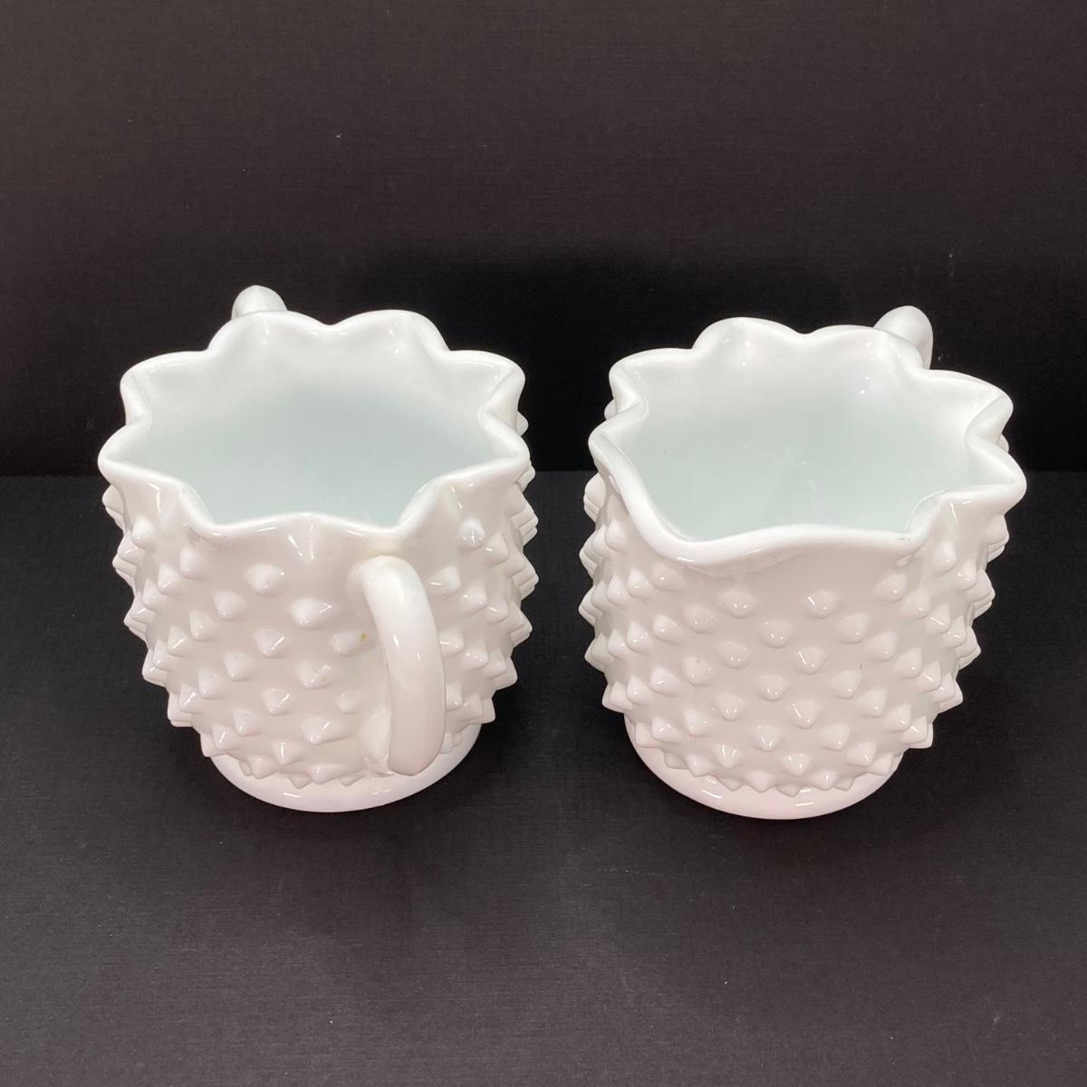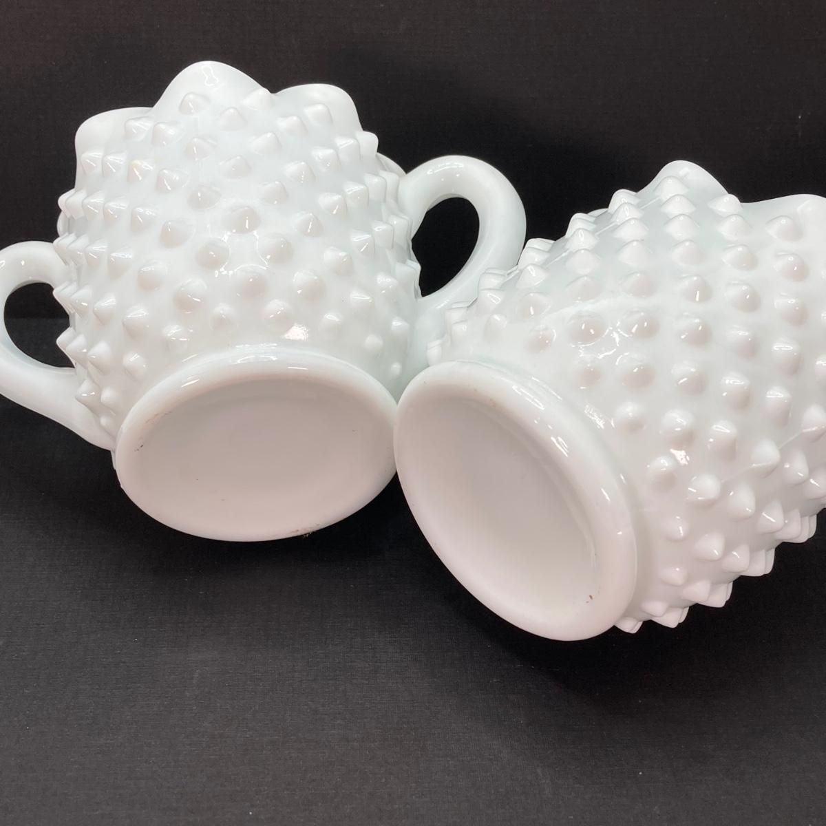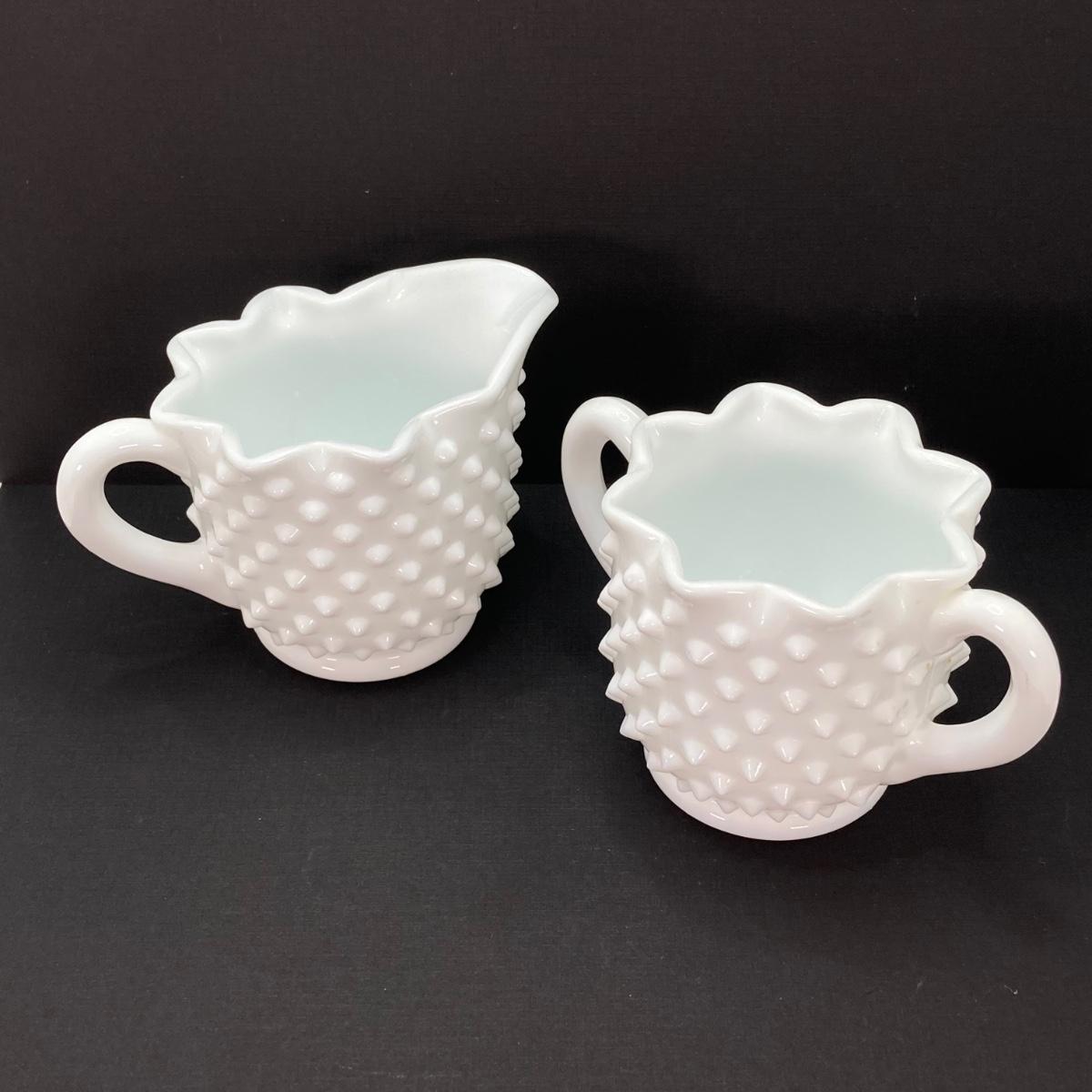 LOT 164: Westmoreland Milk Glass Vase with Small Hobnail Milk Glass Cream and Sugar Bowls