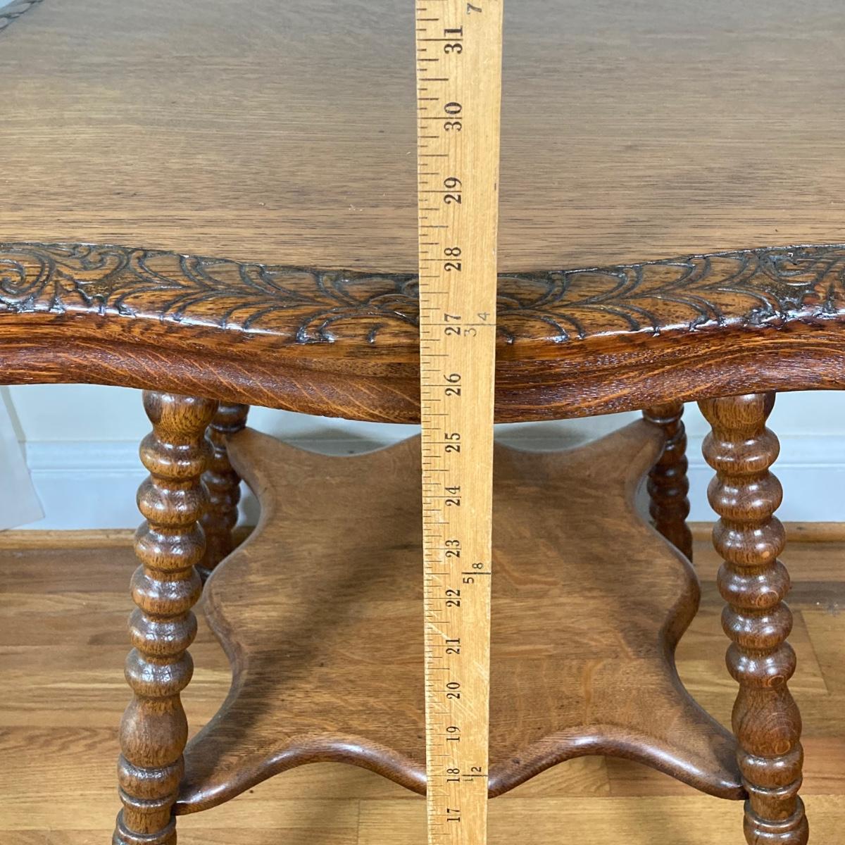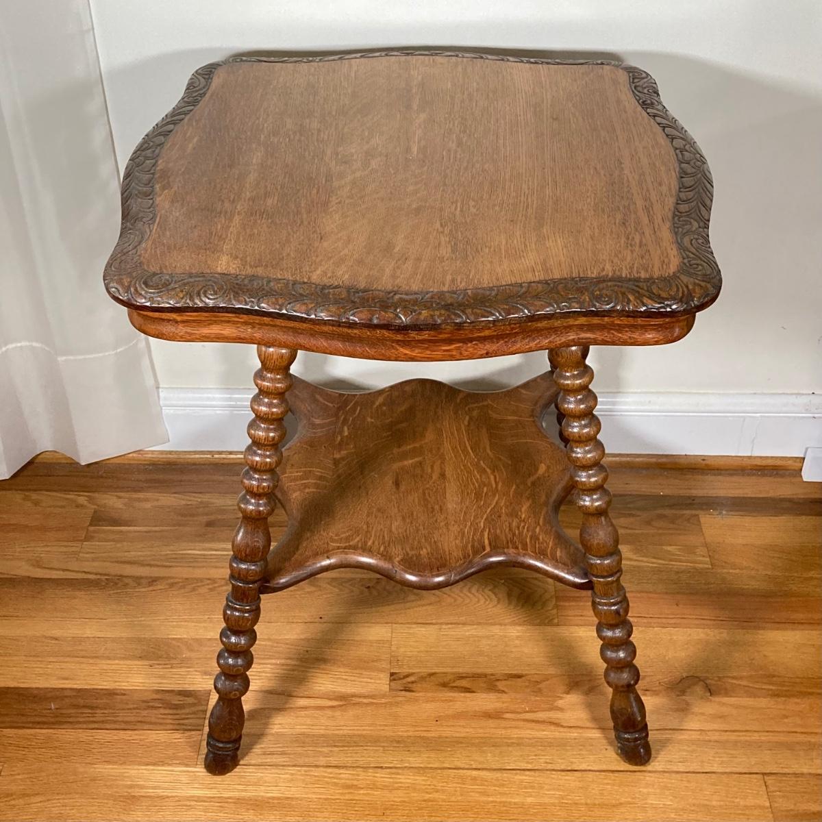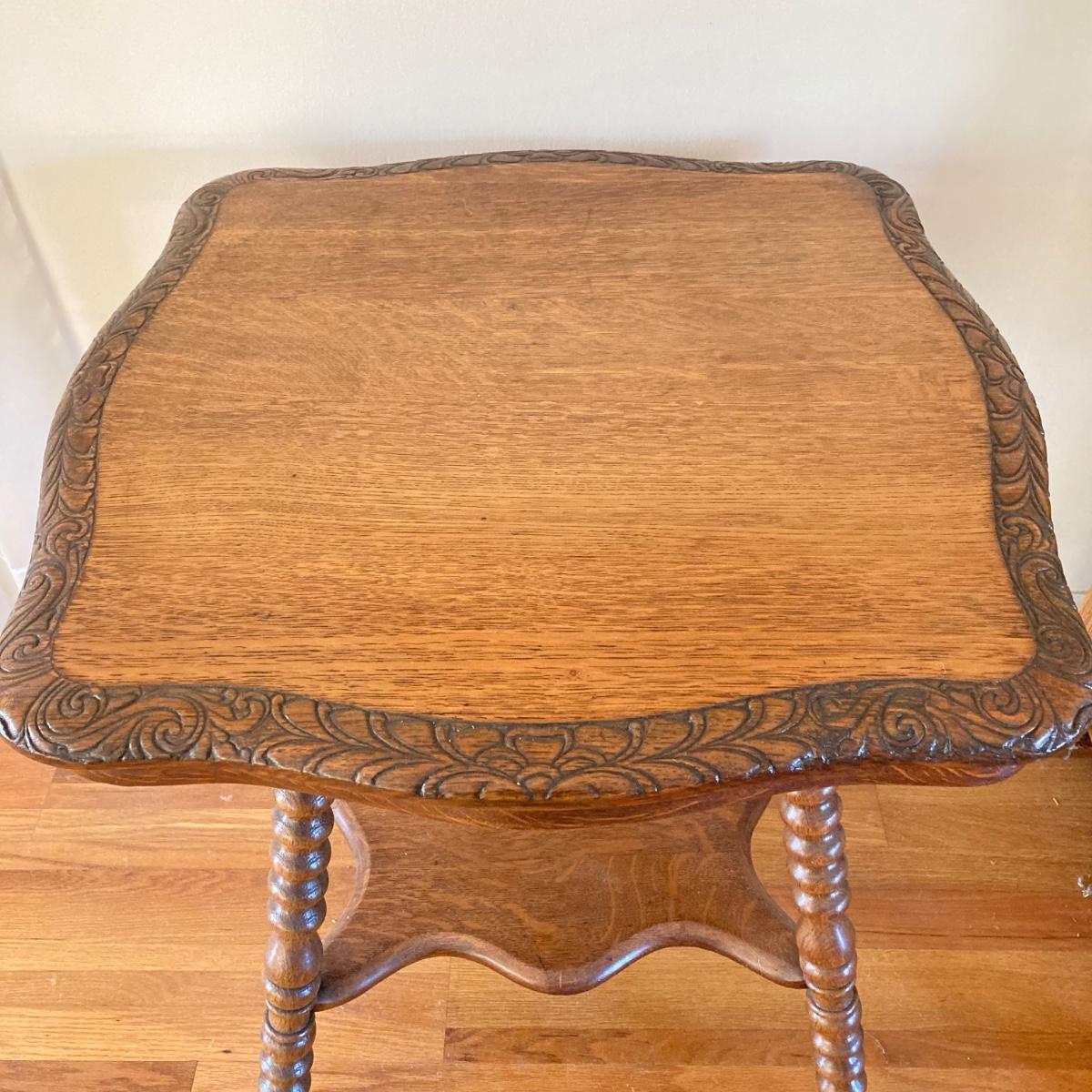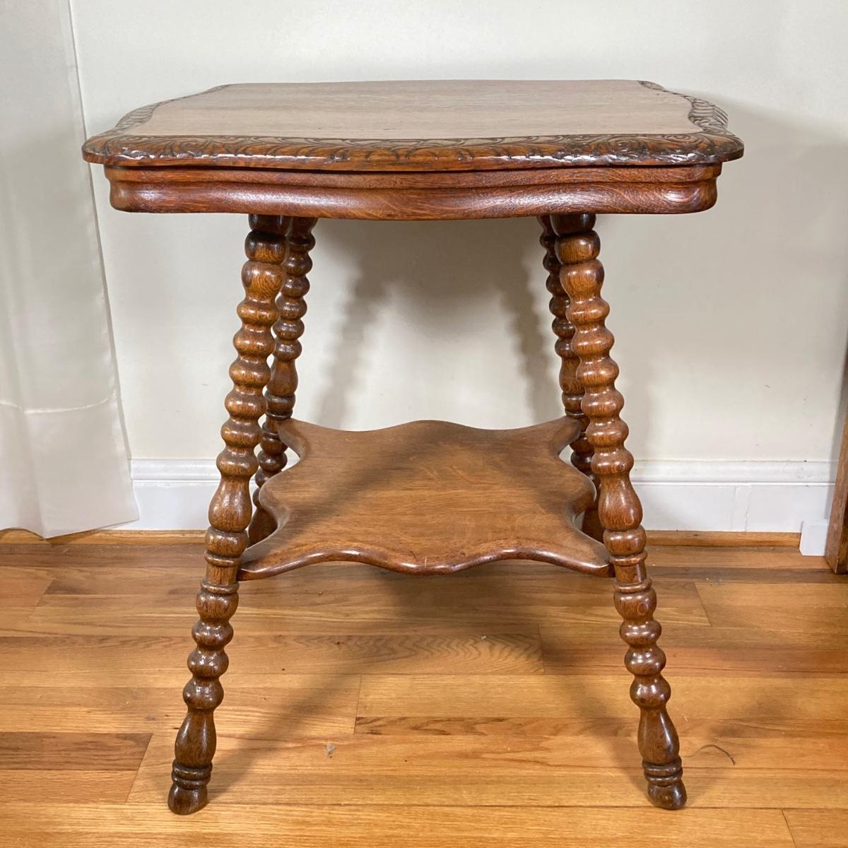 LOT 178: Vintage Carved Wood Cork Screw Twisted Spindle Side Table