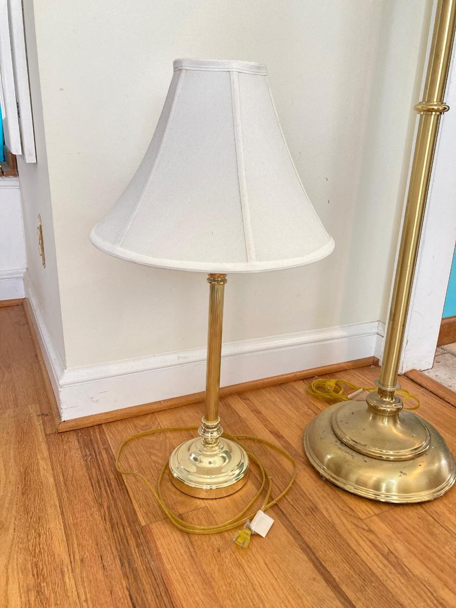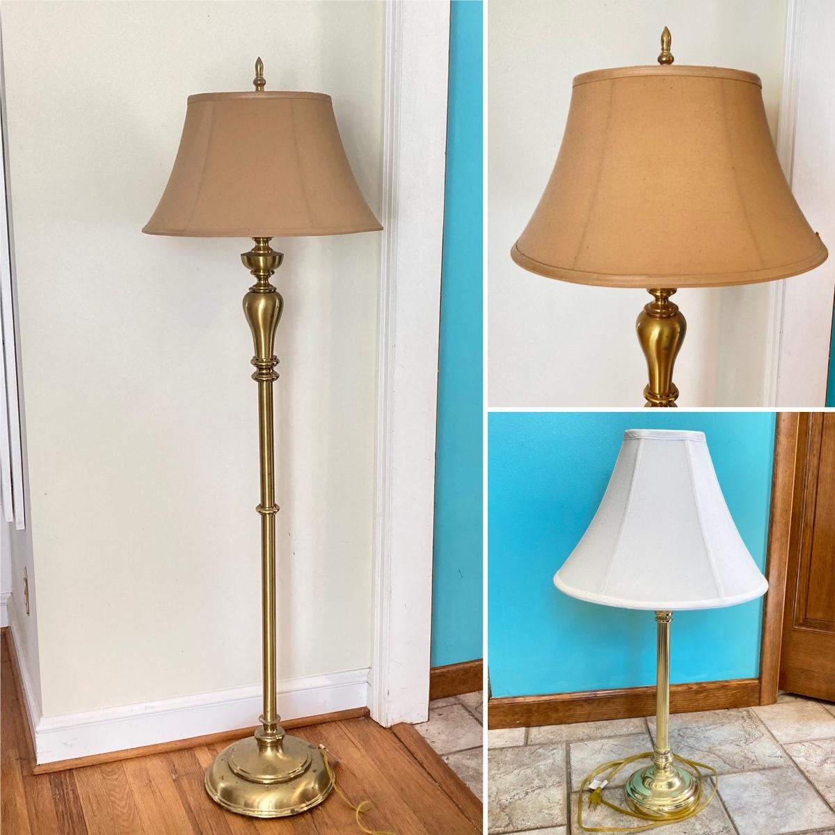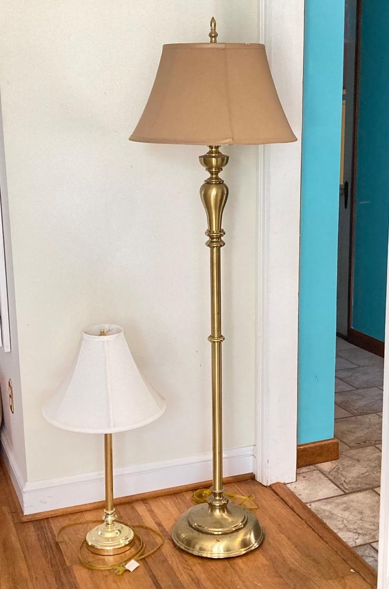LOT 180: Pair of Brass Lamps - Floor and Table Styles
