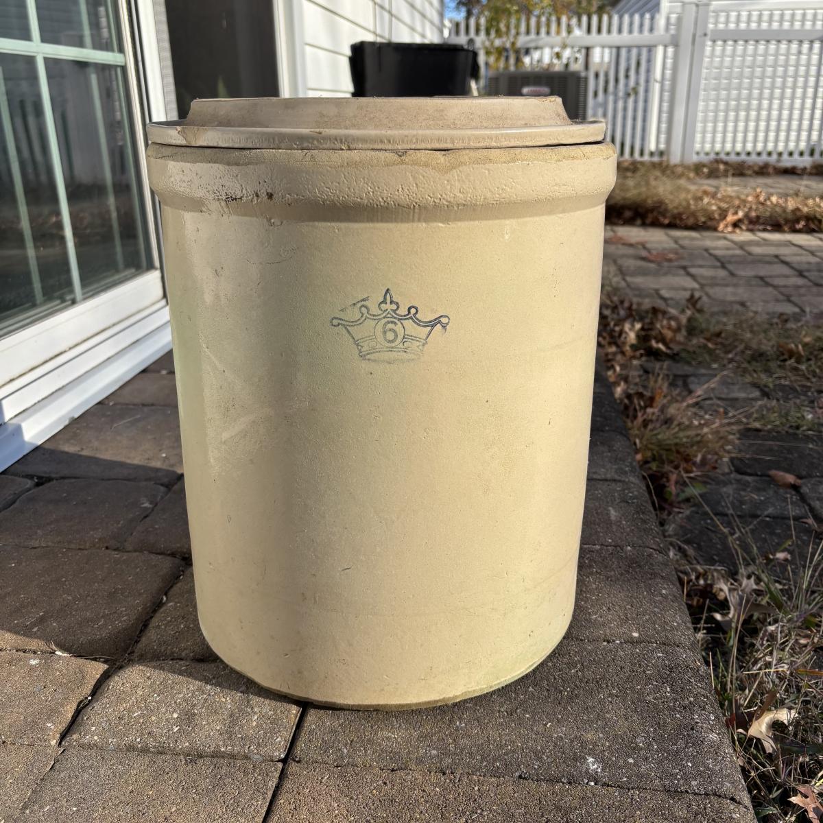 LOT 221: Vintage 6-gallon Crock w/Lid
