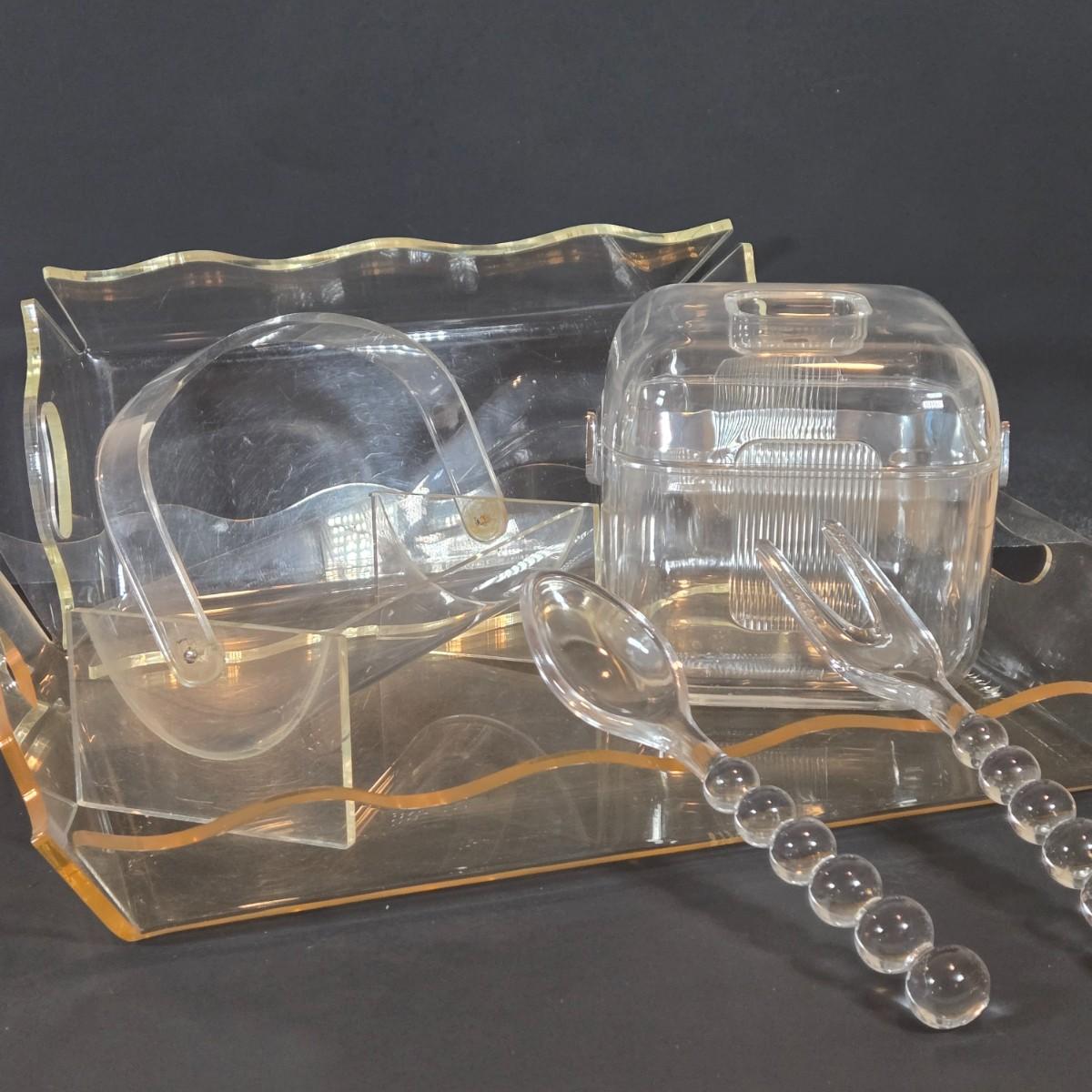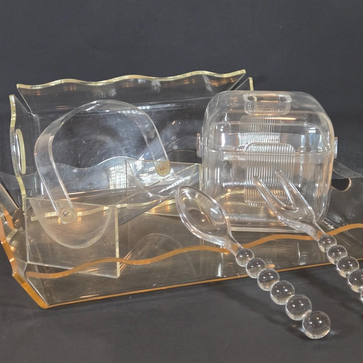 LOT 206B: Lucite Service Ware, Ice Bucket, and More
