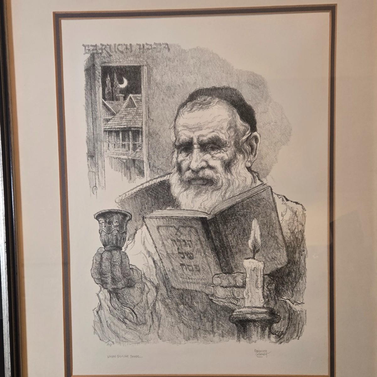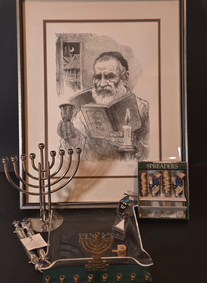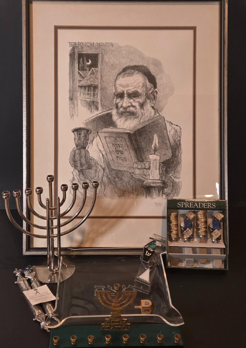 LOT 214B: When Elijah Comes by Emanuel Schary, Two Menorahs, and More