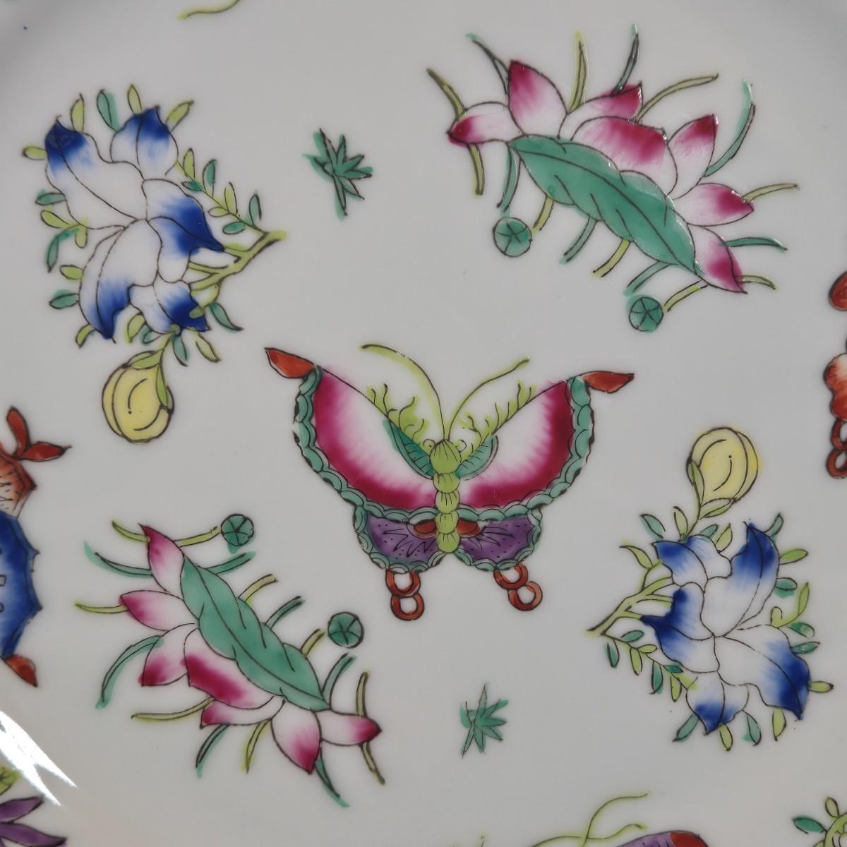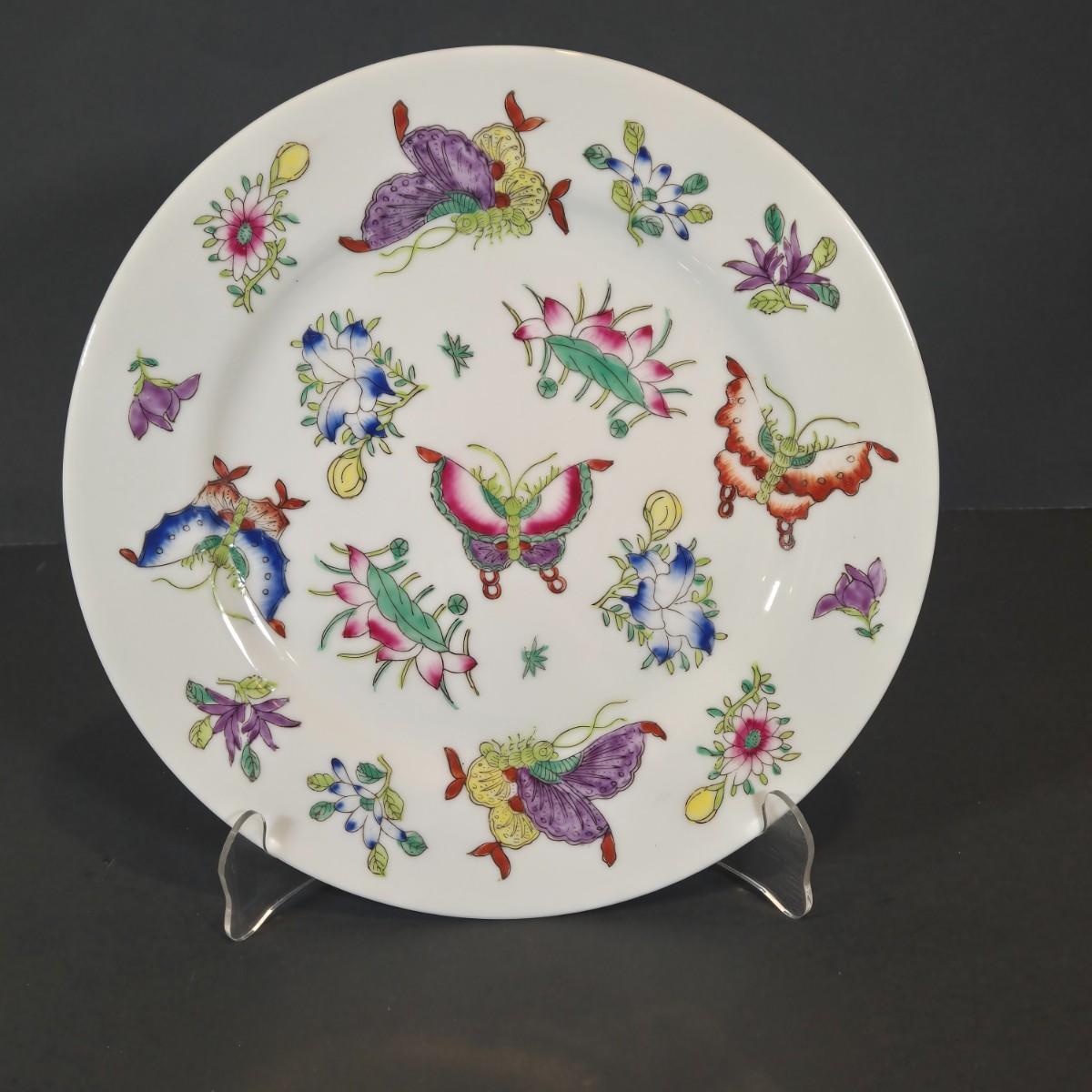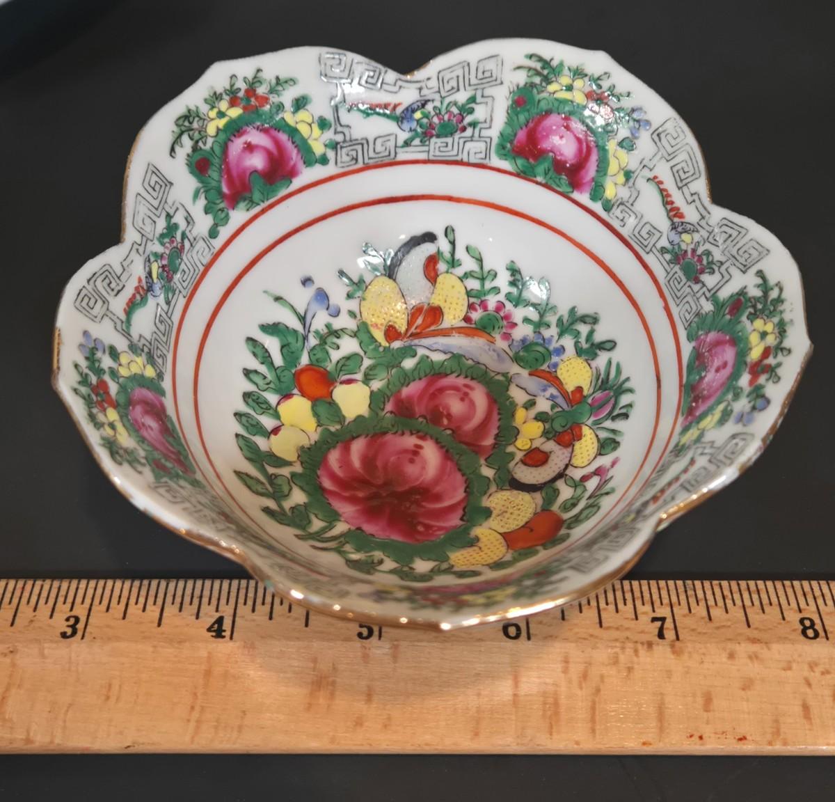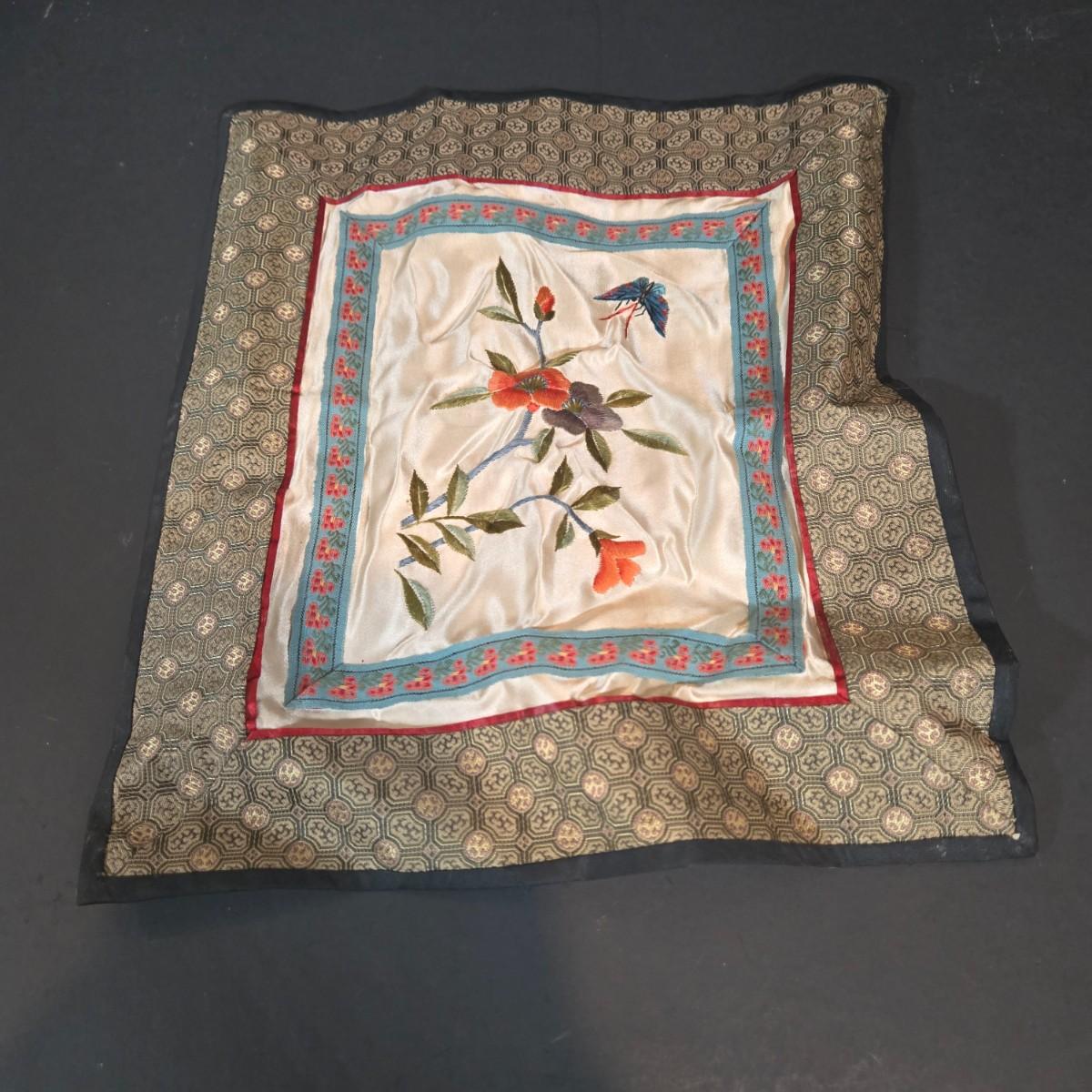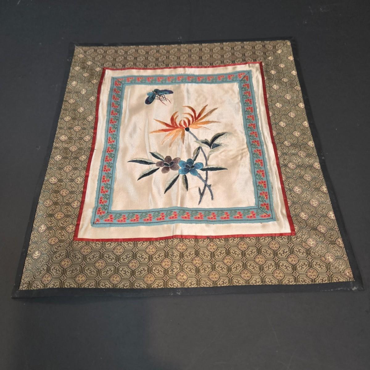 LOT 216B: Asian Style Butterfly Dish, Small Bowl, Embroidered Silk Panels, and More