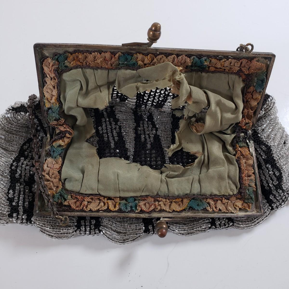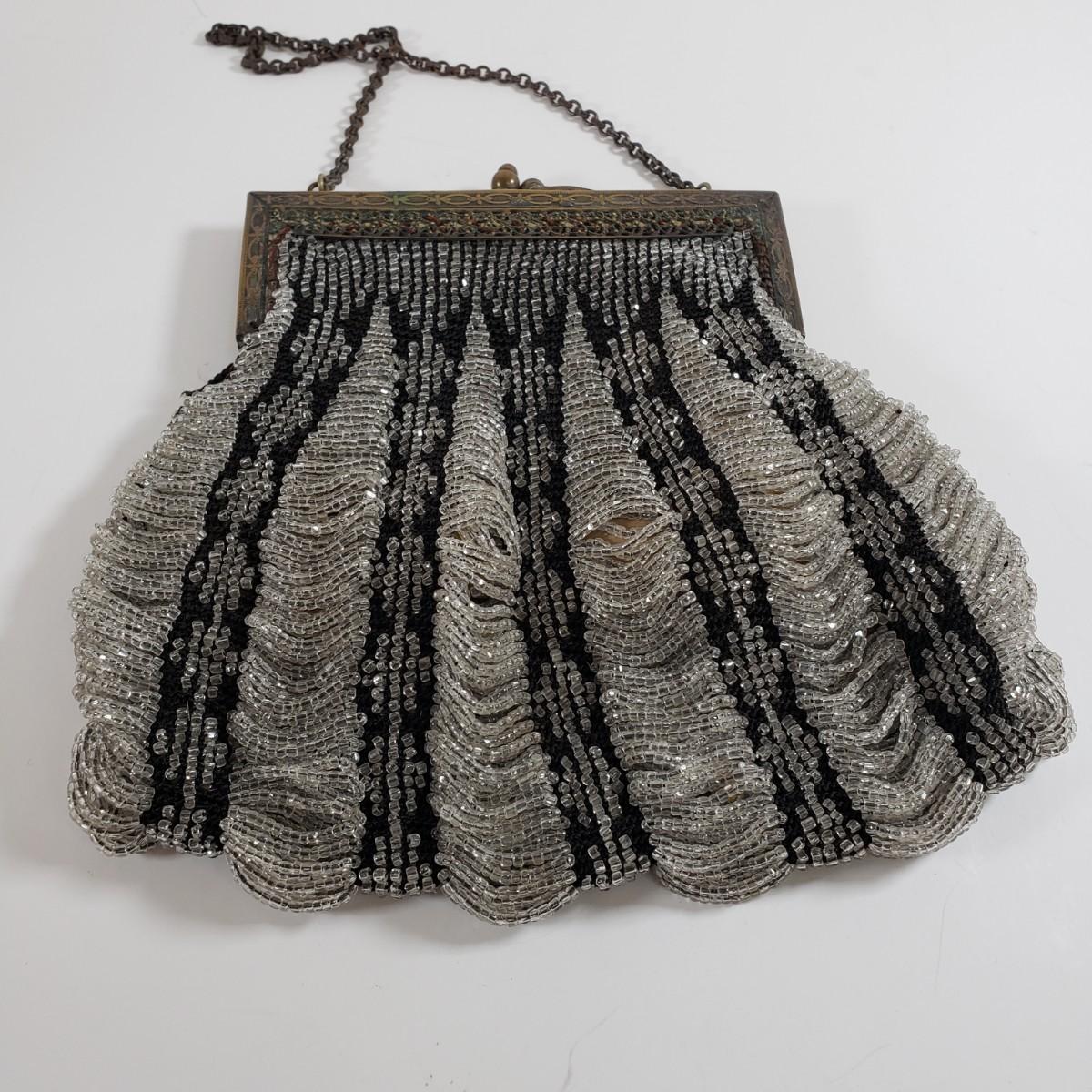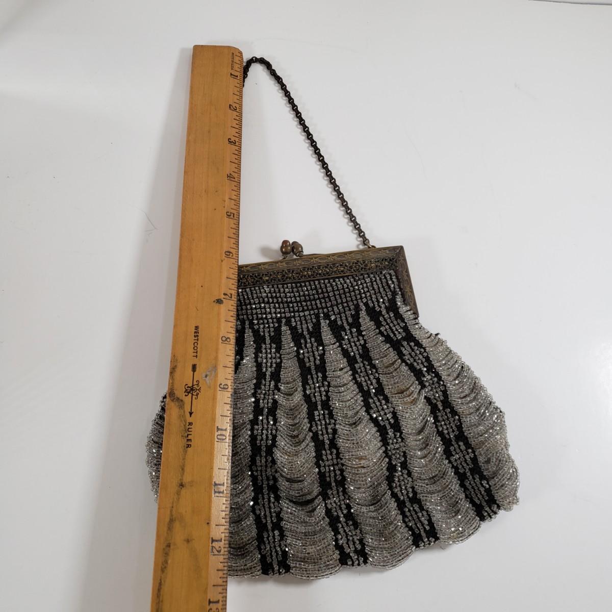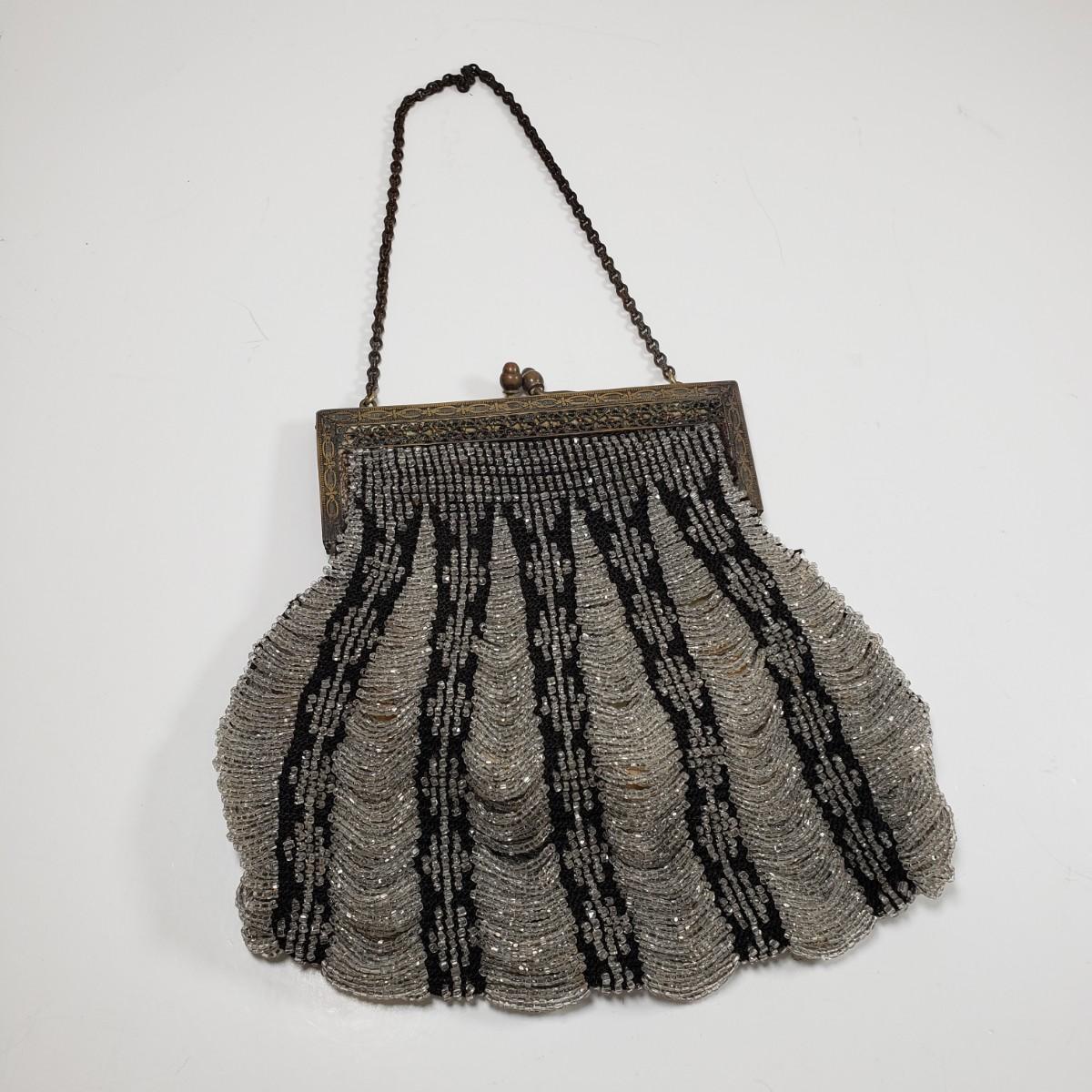 LOT 222MBL: Antique Beaded Purse with Metal Clasp & Chain