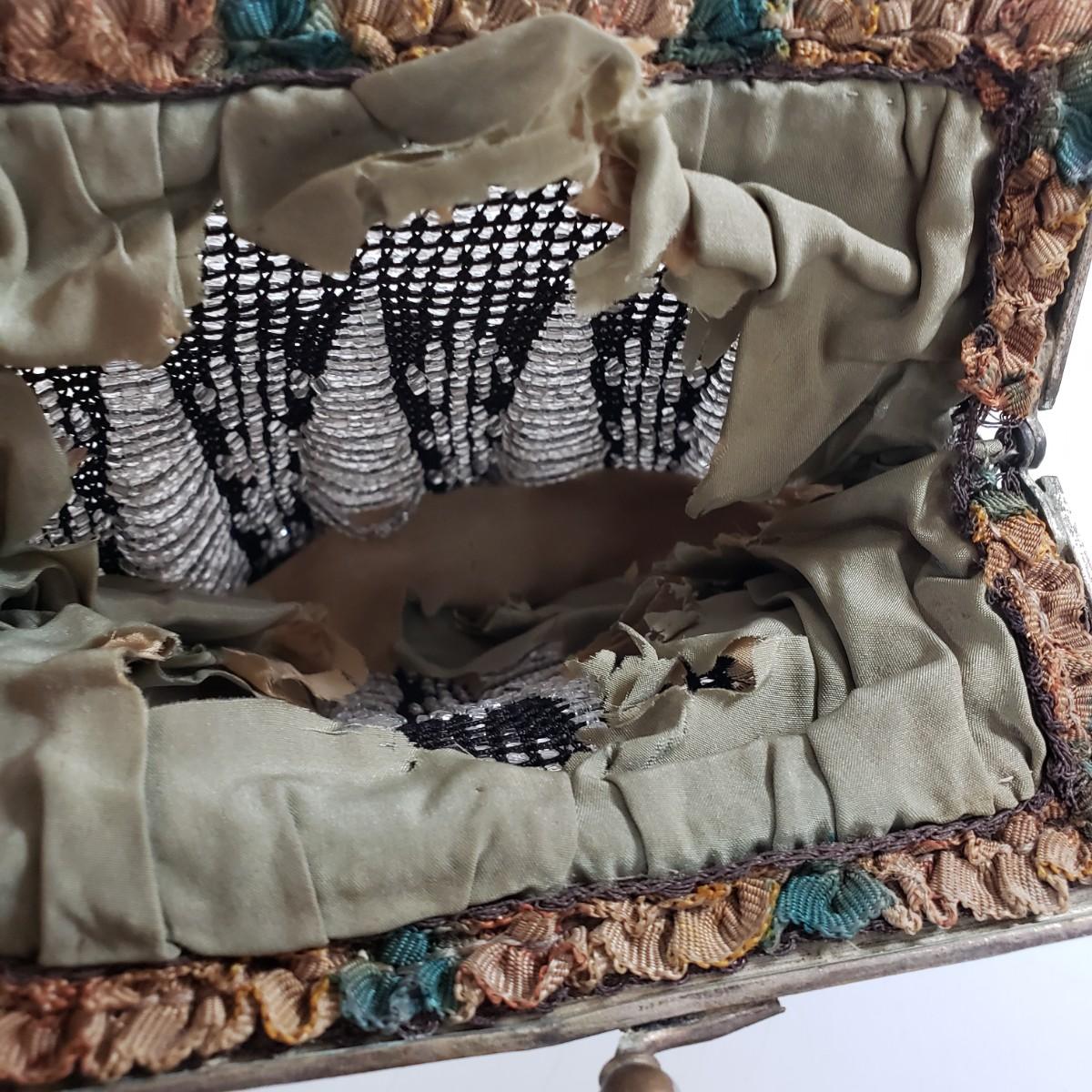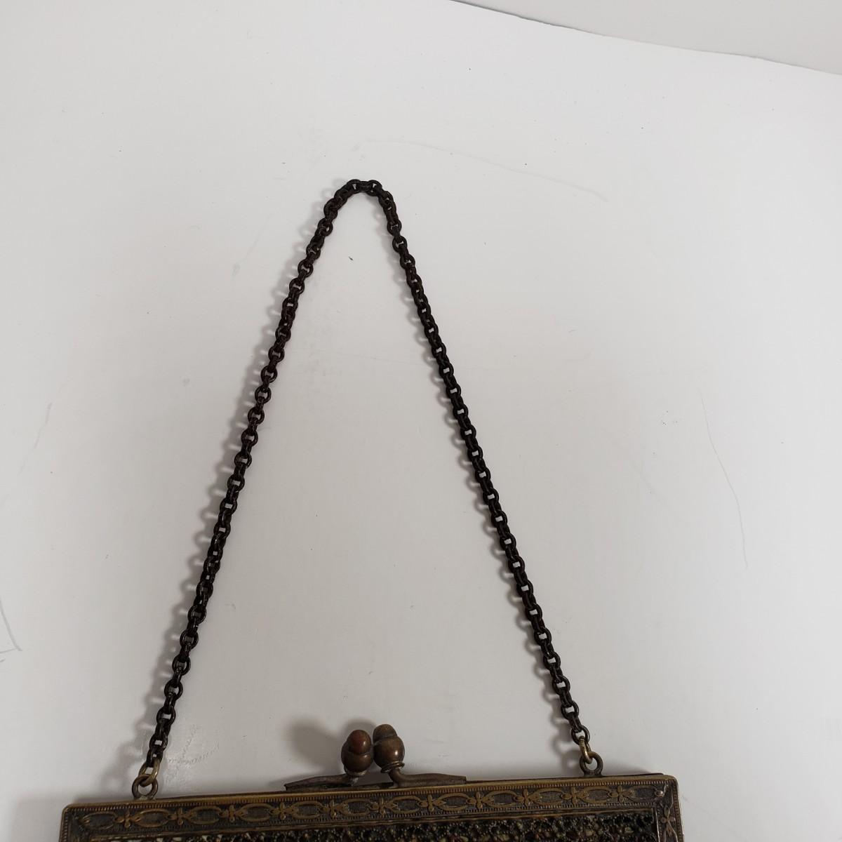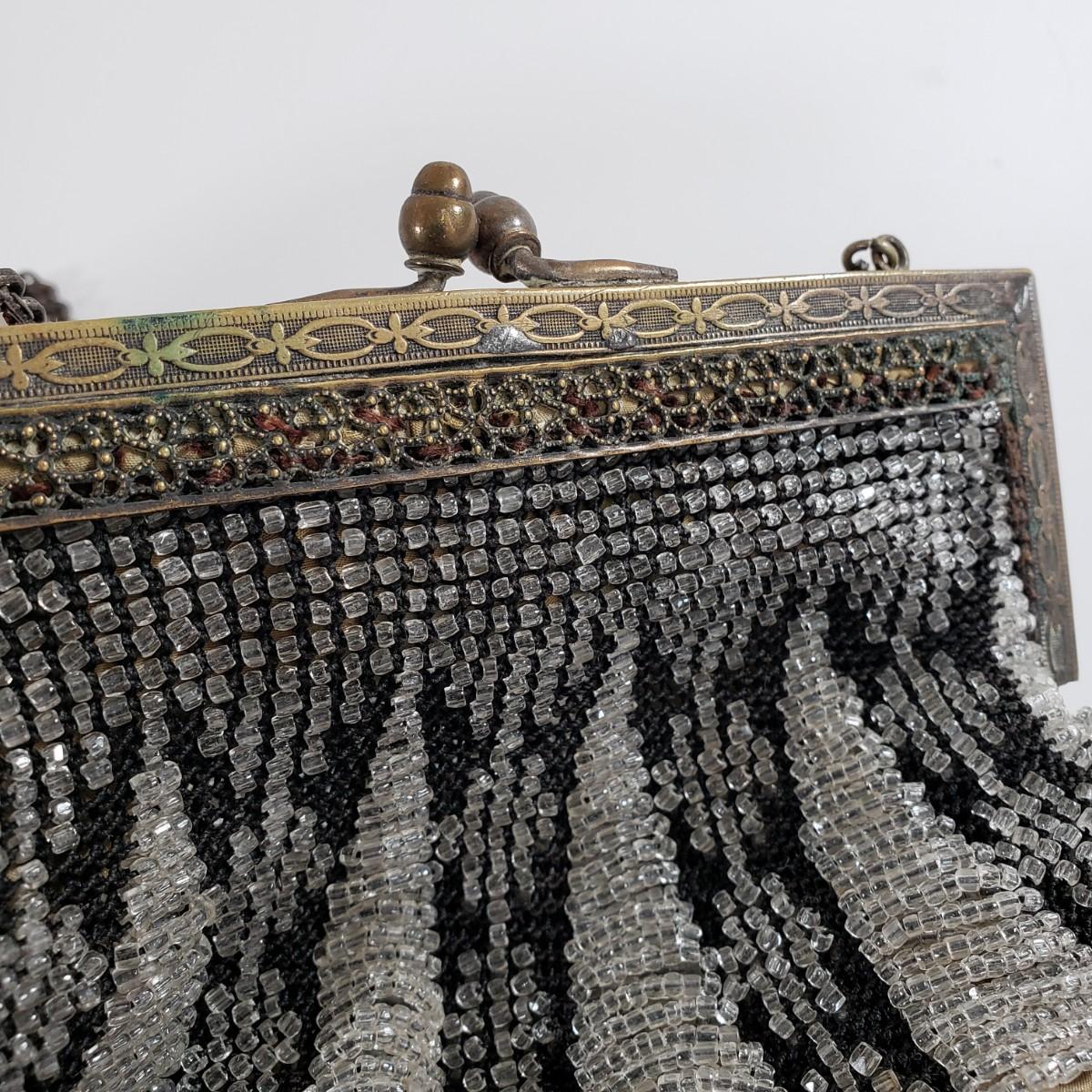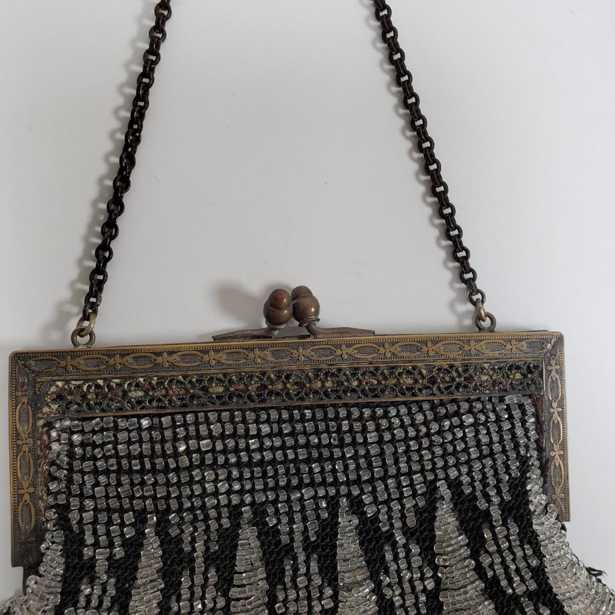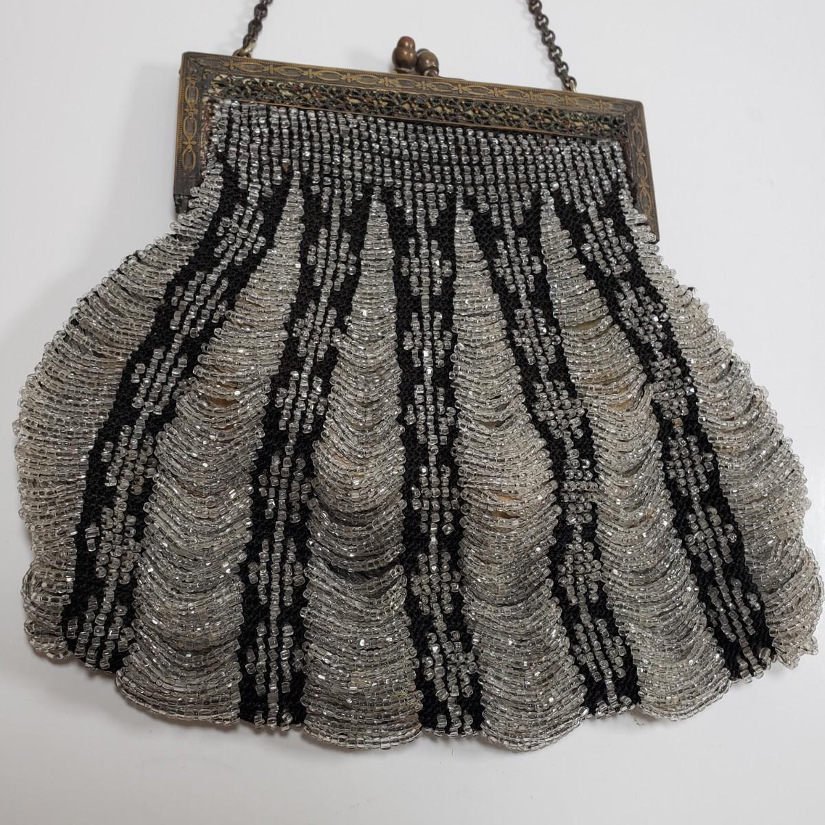 LOT 222MBL: Antique Beaded Purse with Metal Clasp & Chain