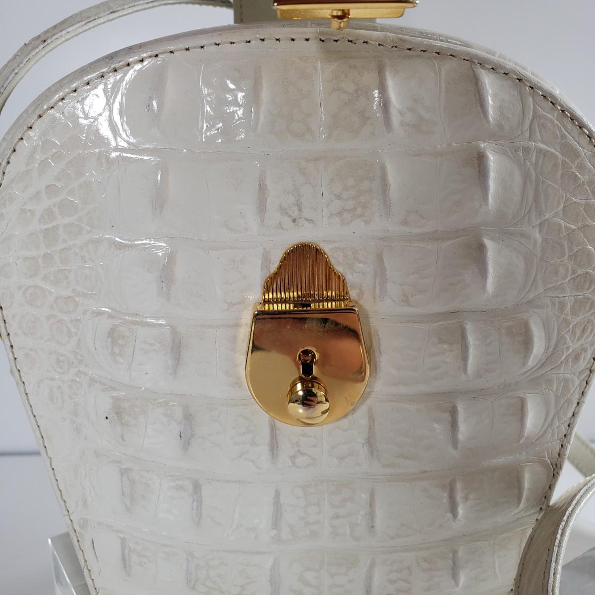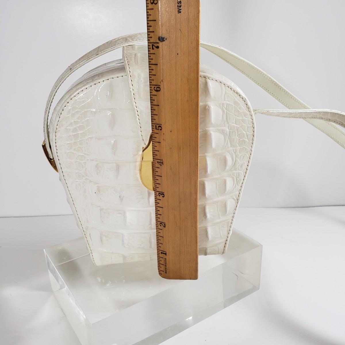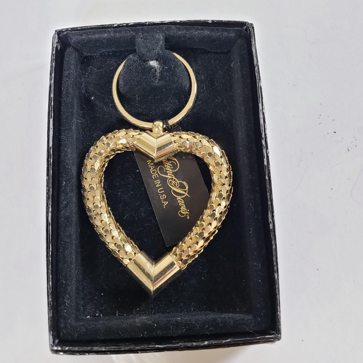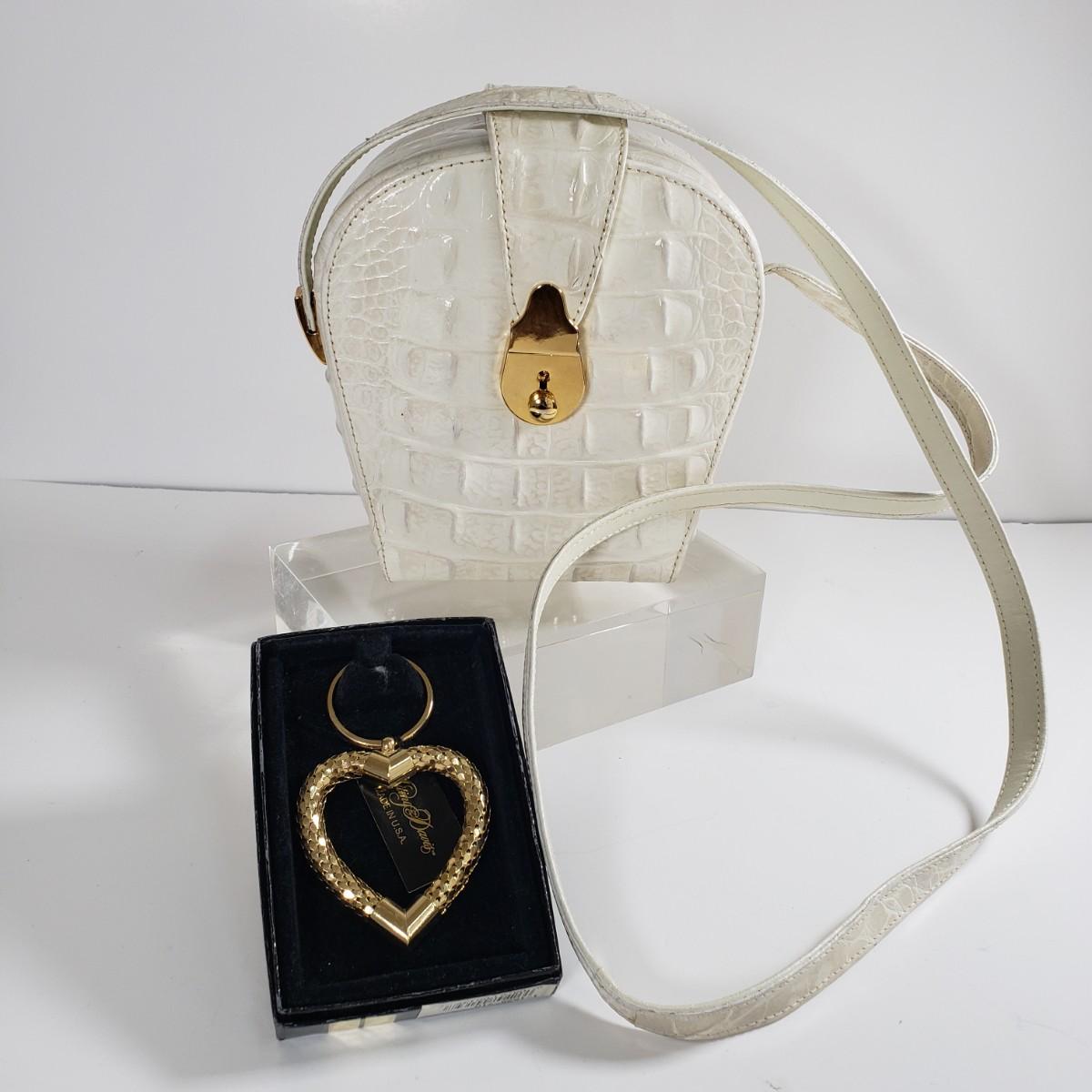 LOT 225MBL: Alligator Print Purse with Dust Bag & Whiting & Davis Gold Mesh Heart Key Ring