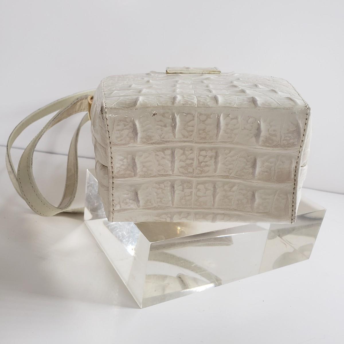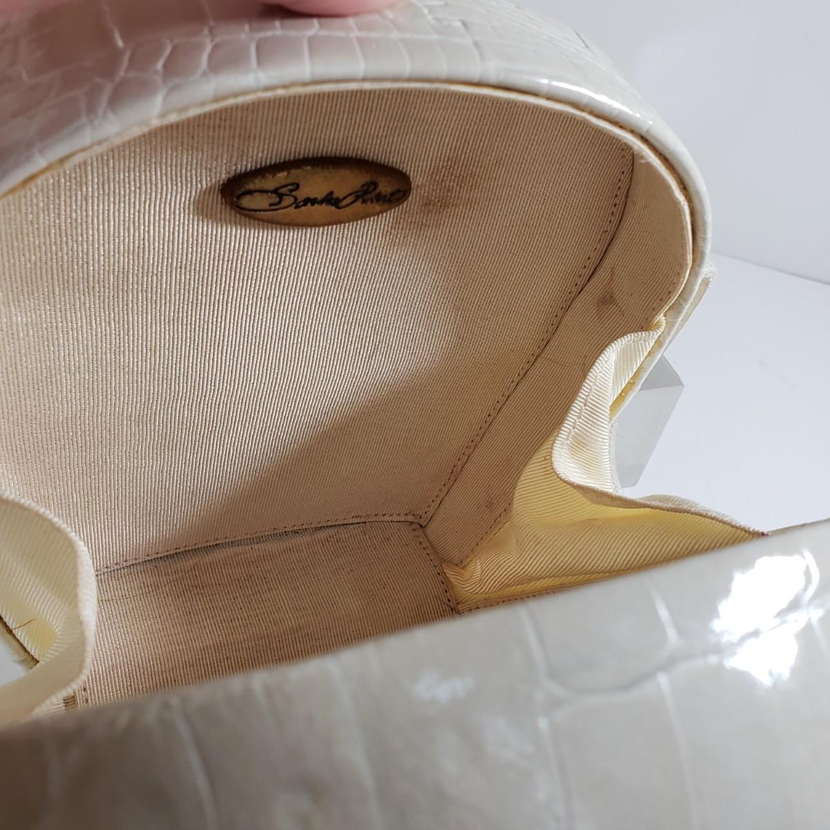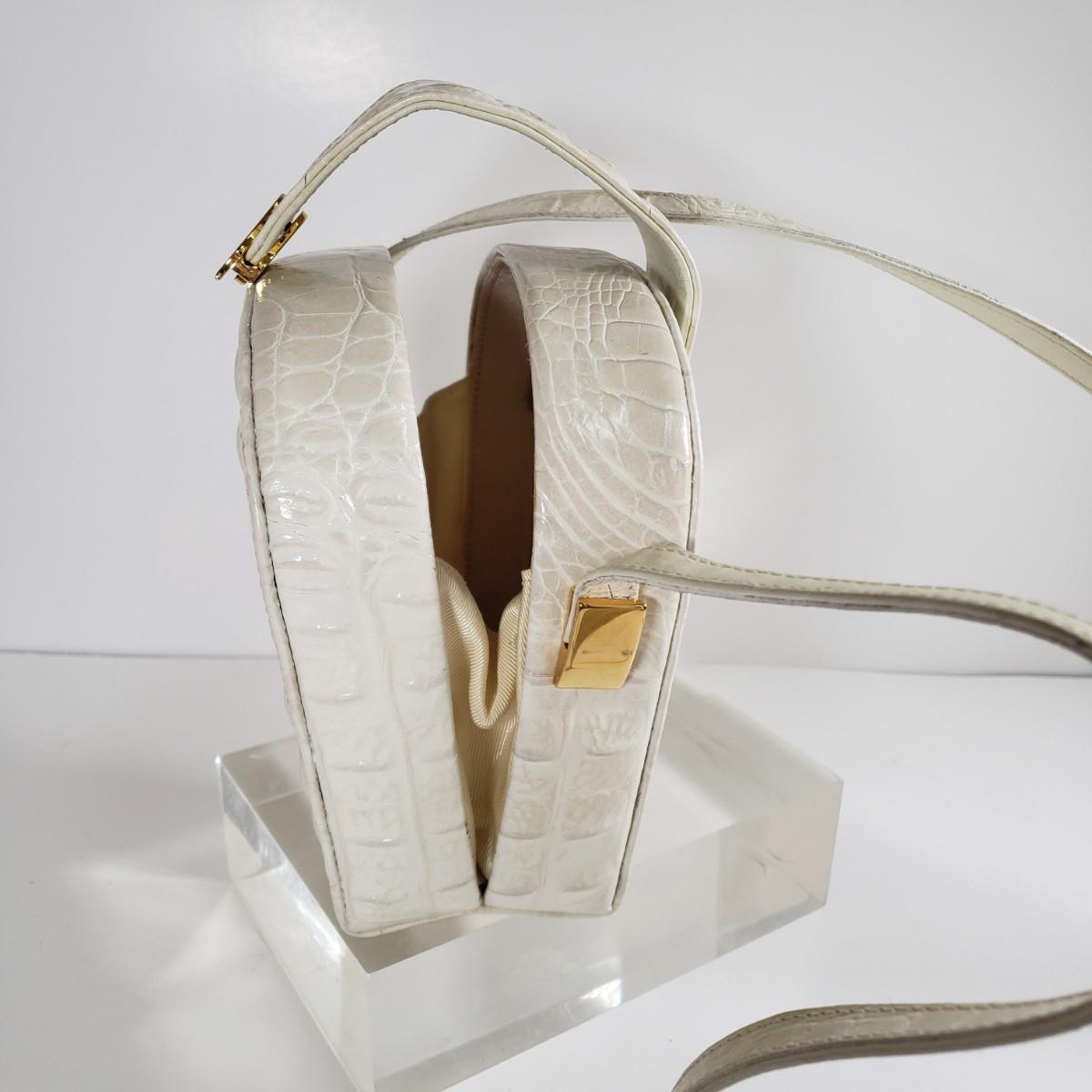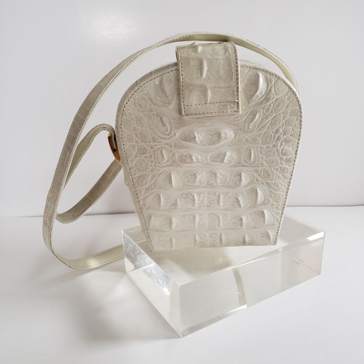 LOT 225MBL: Alligator Print Purse with Dust Bag & Whiting & Davis Gold Mesh Heart Key Ring