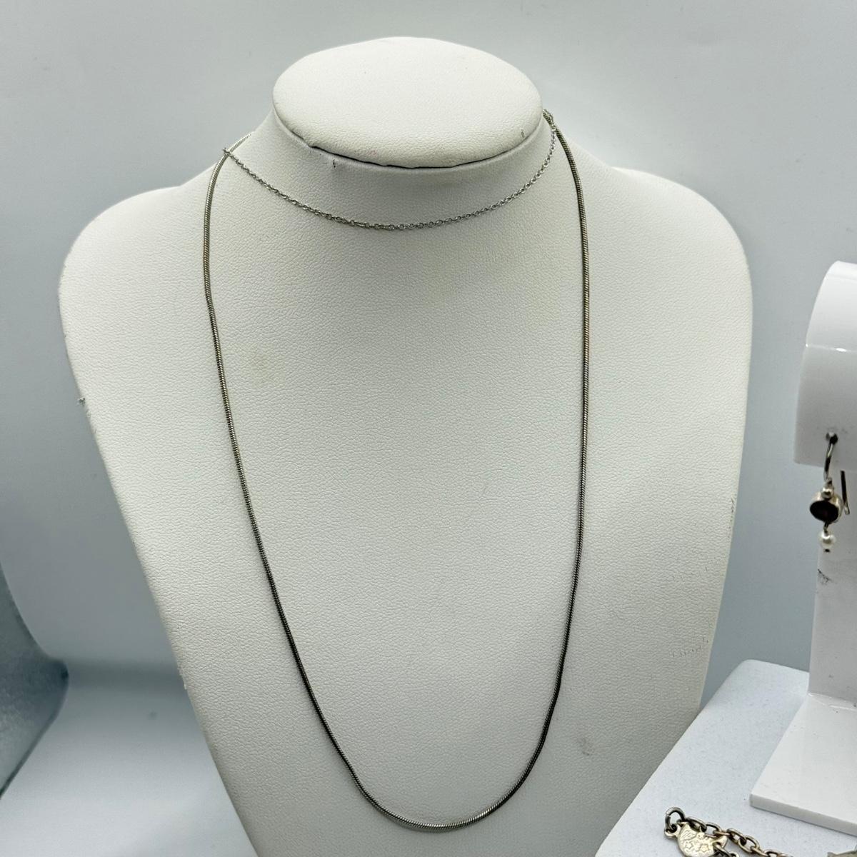 LOT 281J: 925 Sterling Silver Moons & Star Bracelet, Pierced Drop Earrings & Chains (10.24g)
