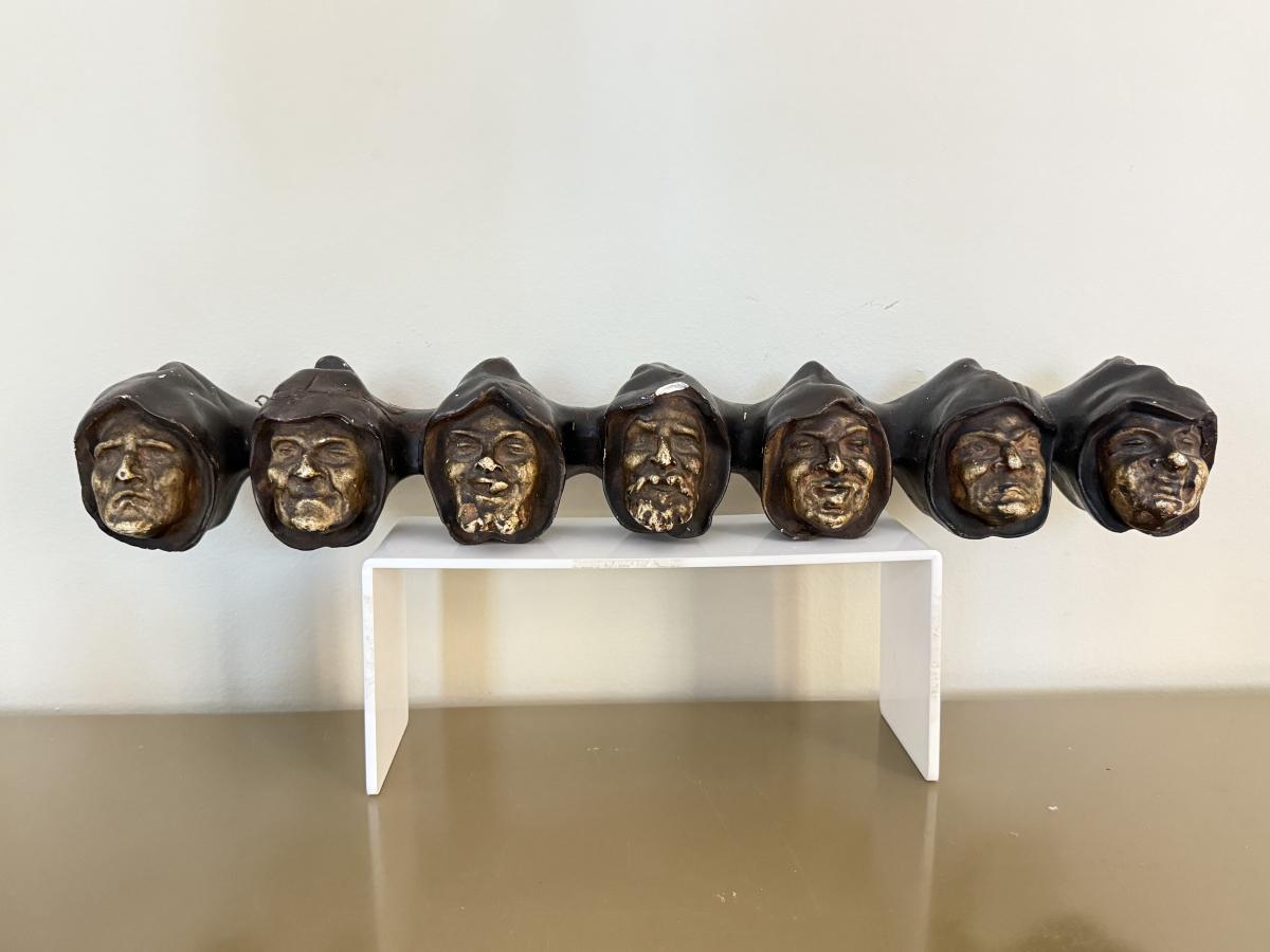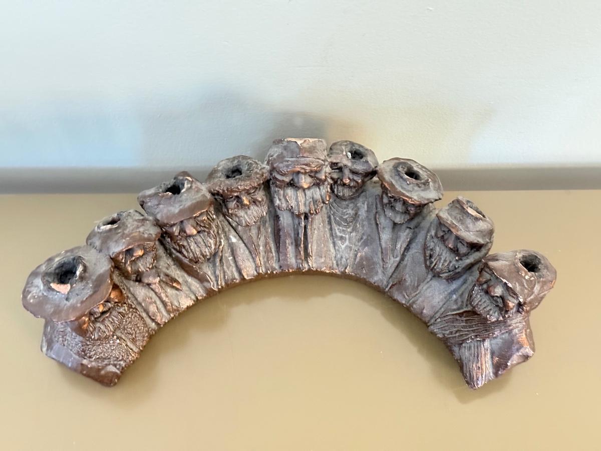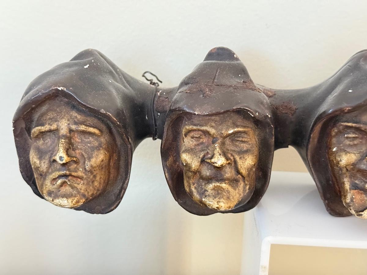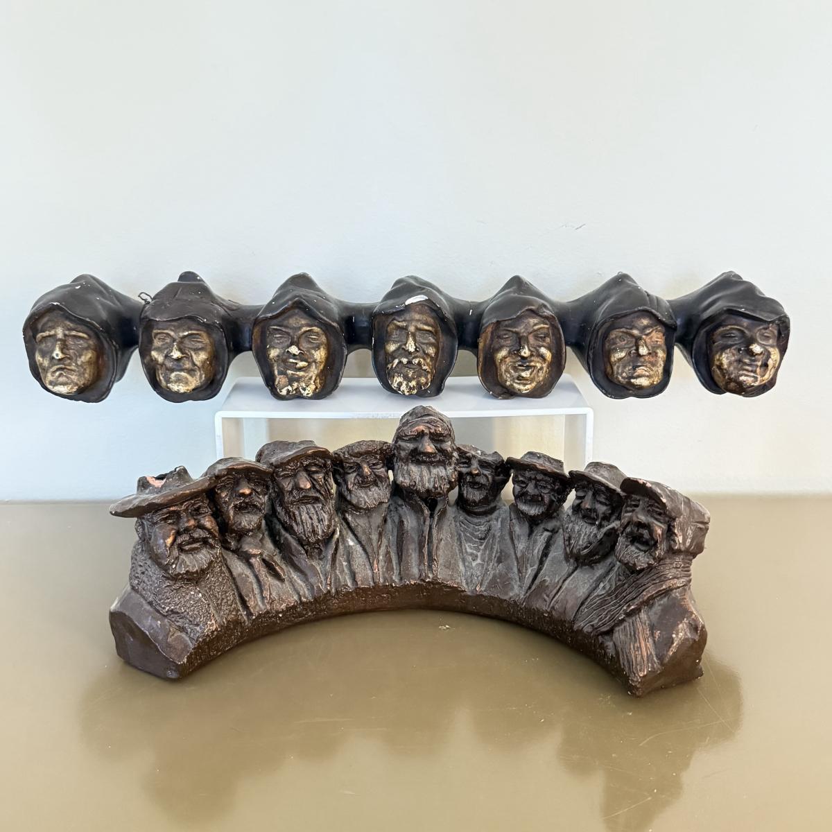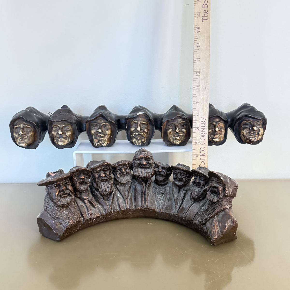 LOT 291F: Arts & Crafts Era Seven Deadly Sins Monk Wall Hanging & Sculptural Menorah