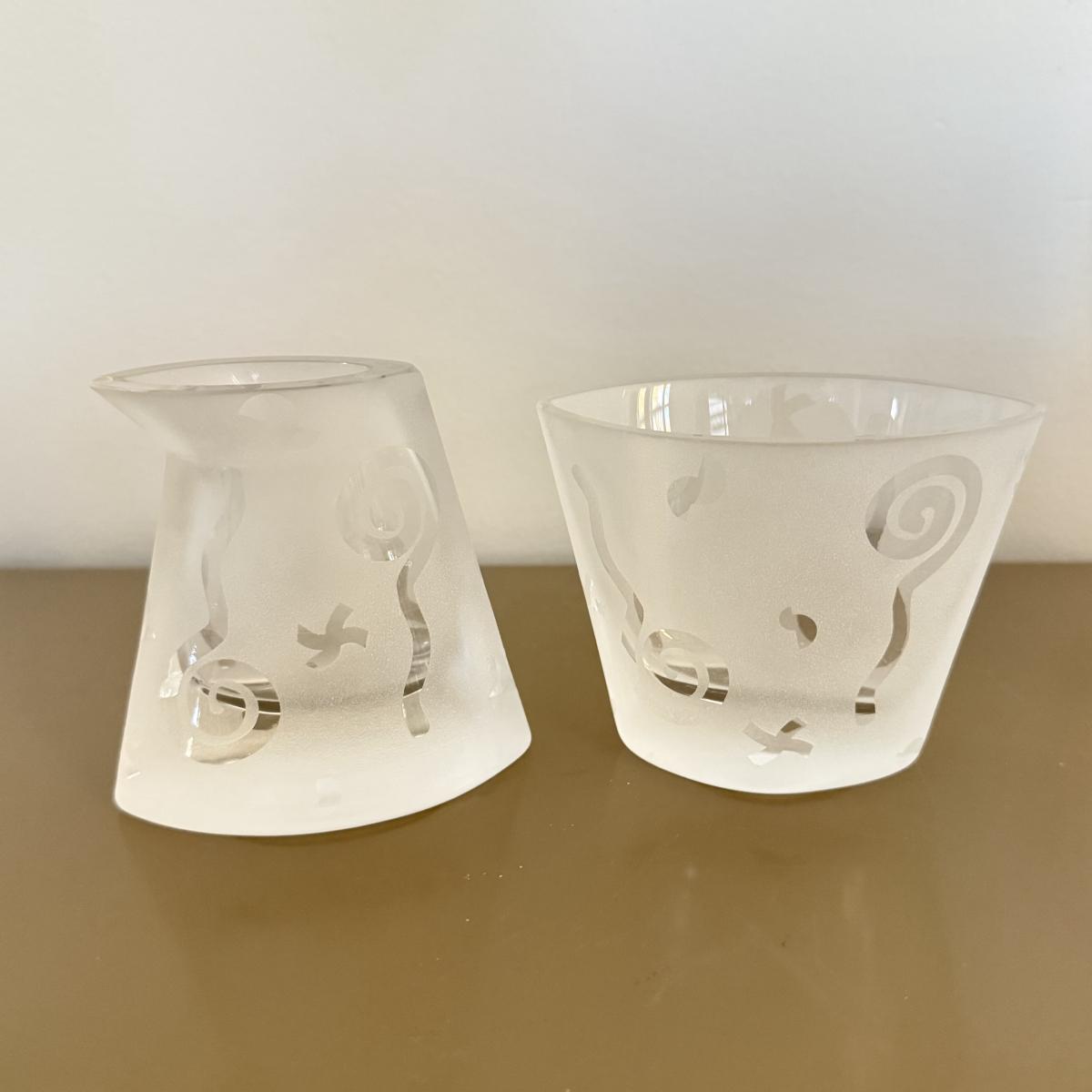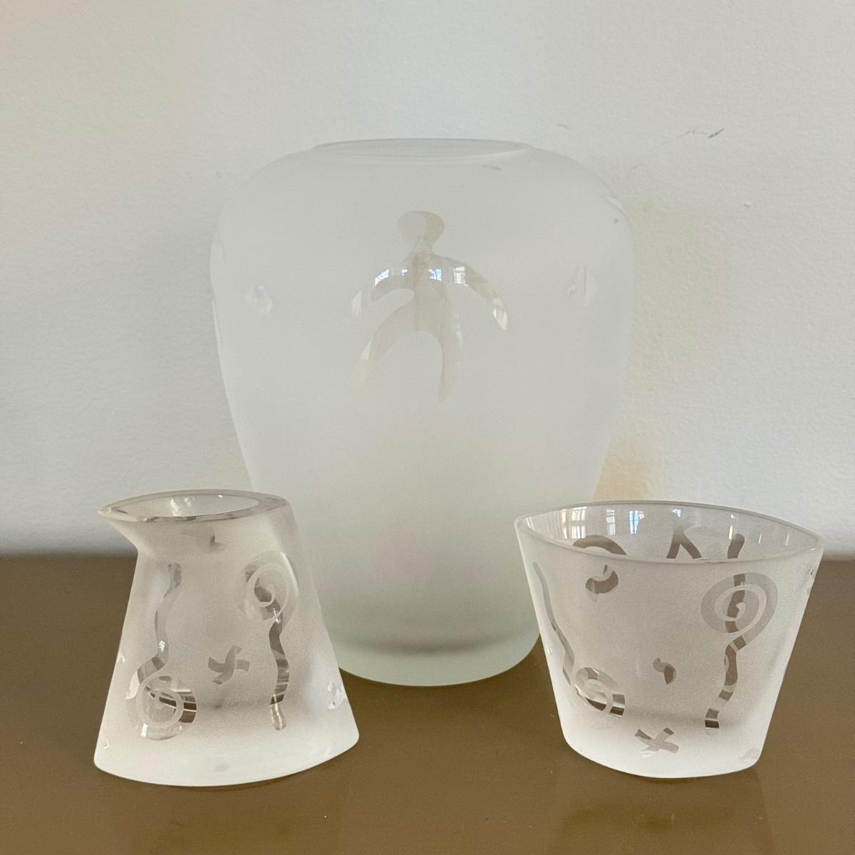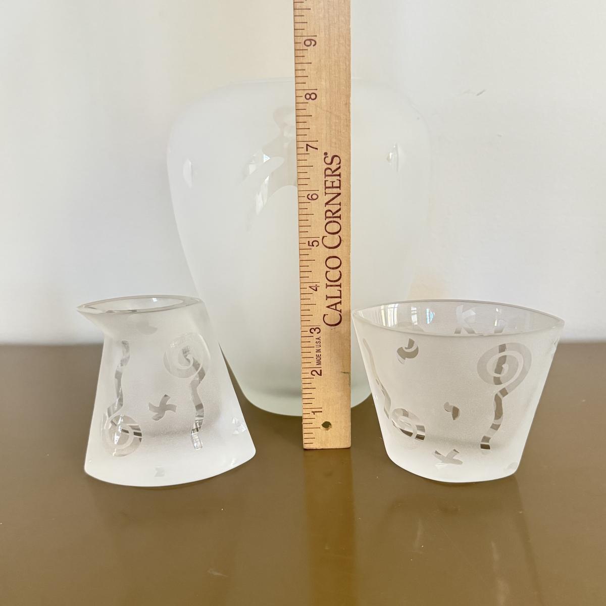 LOT 296F: Robert McCandless Signed Frosted Sugar Bowl & Creamer w/ Frosted Glass Vase