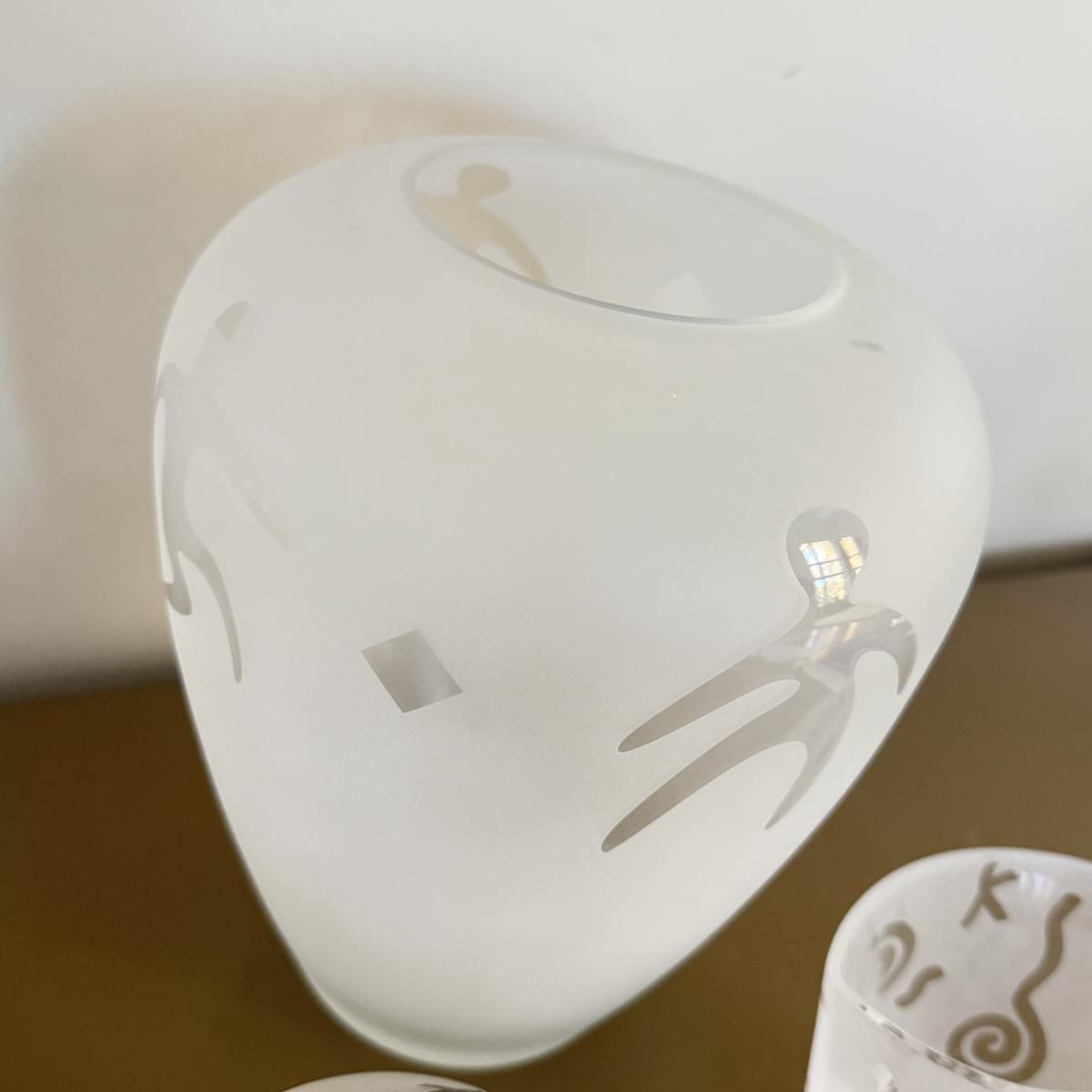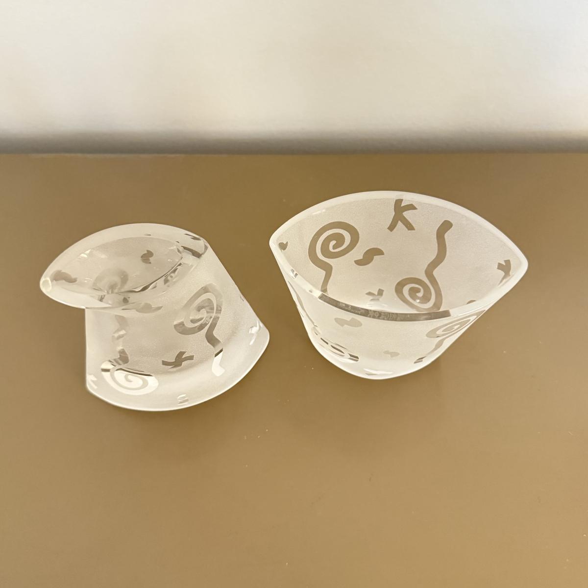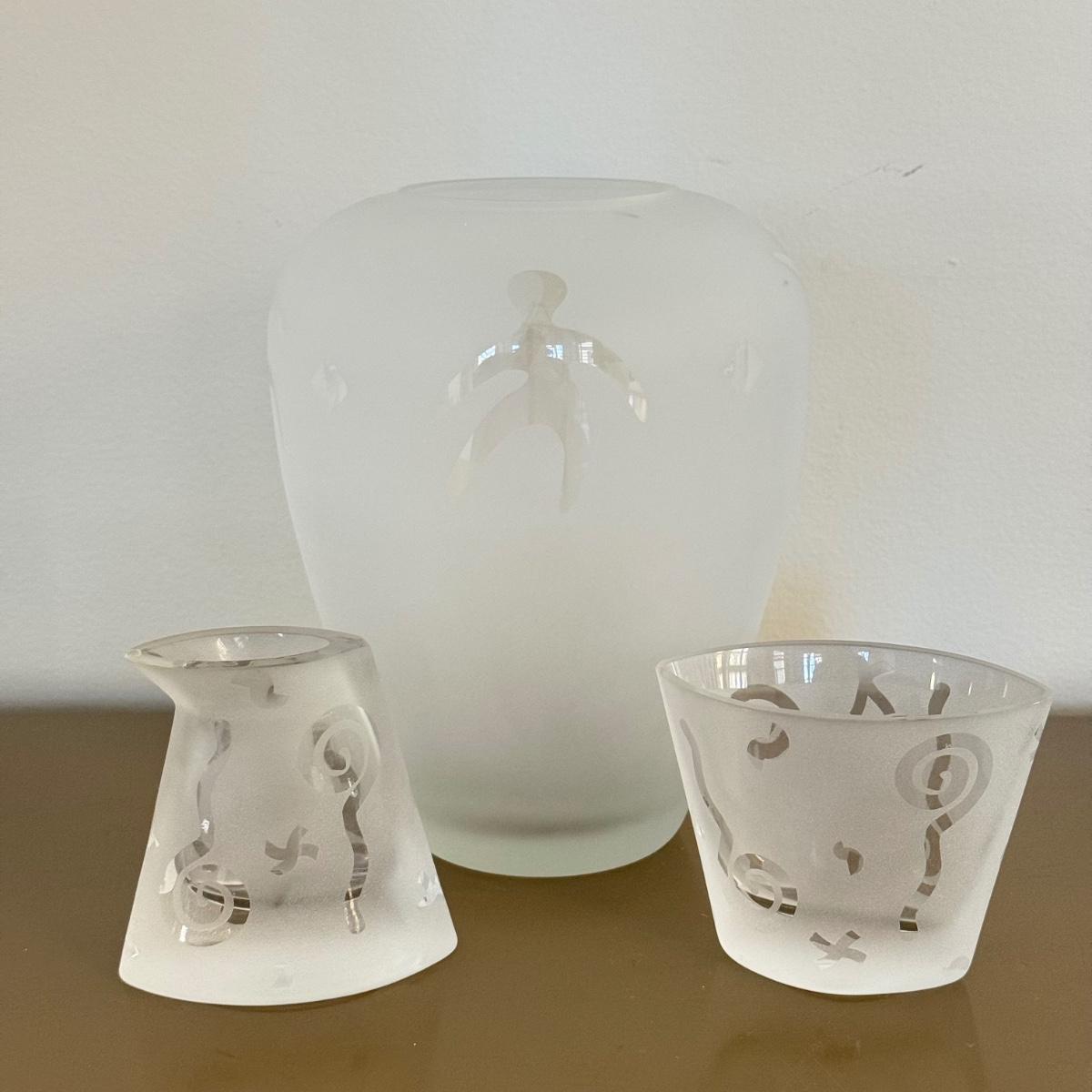 LOT 296F: Robert McCandless Signed Frosted Sugar Bowl & Creamer w/ Frosted Glass Vase