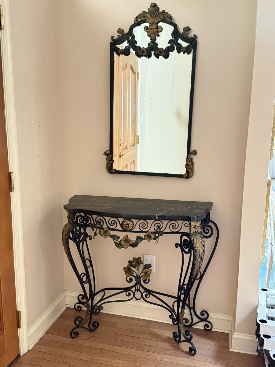 LOT 299L: Metal Floral Sculpture Wall Mirror & Matching Marble Top Table