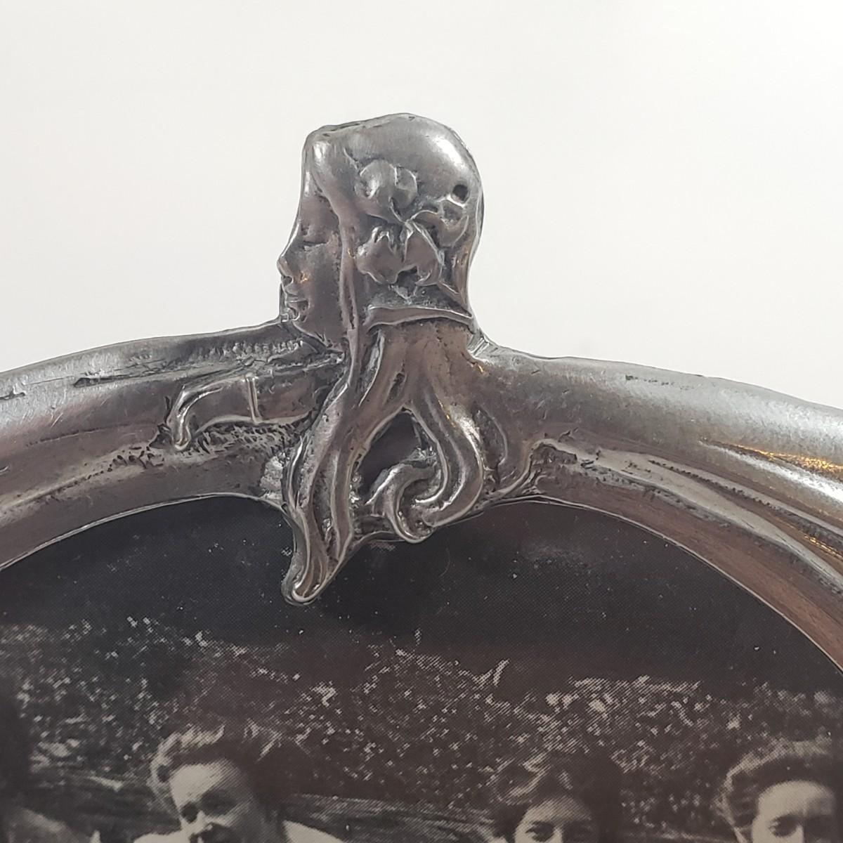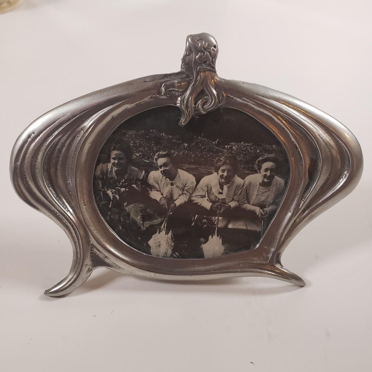 LOT 303B: Art Nouveau Lady Frame, Ornate Grape Leaf Shears, Art Pottery & Olivia Riegel Mirrored Frame