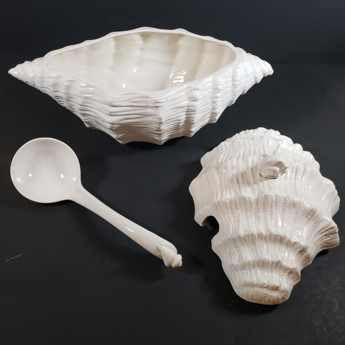 LOT 311B: Italian Ceramic Coral Pattern Plates, Fish Dishes by California Pottery & Ironstone, Large Conch Shell Tureen