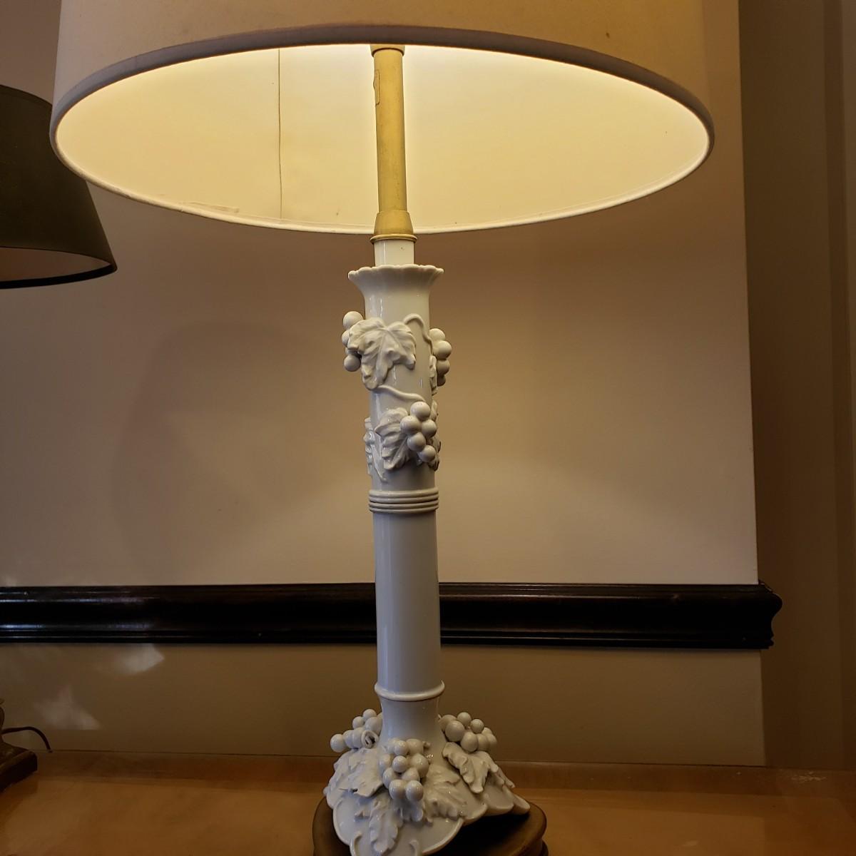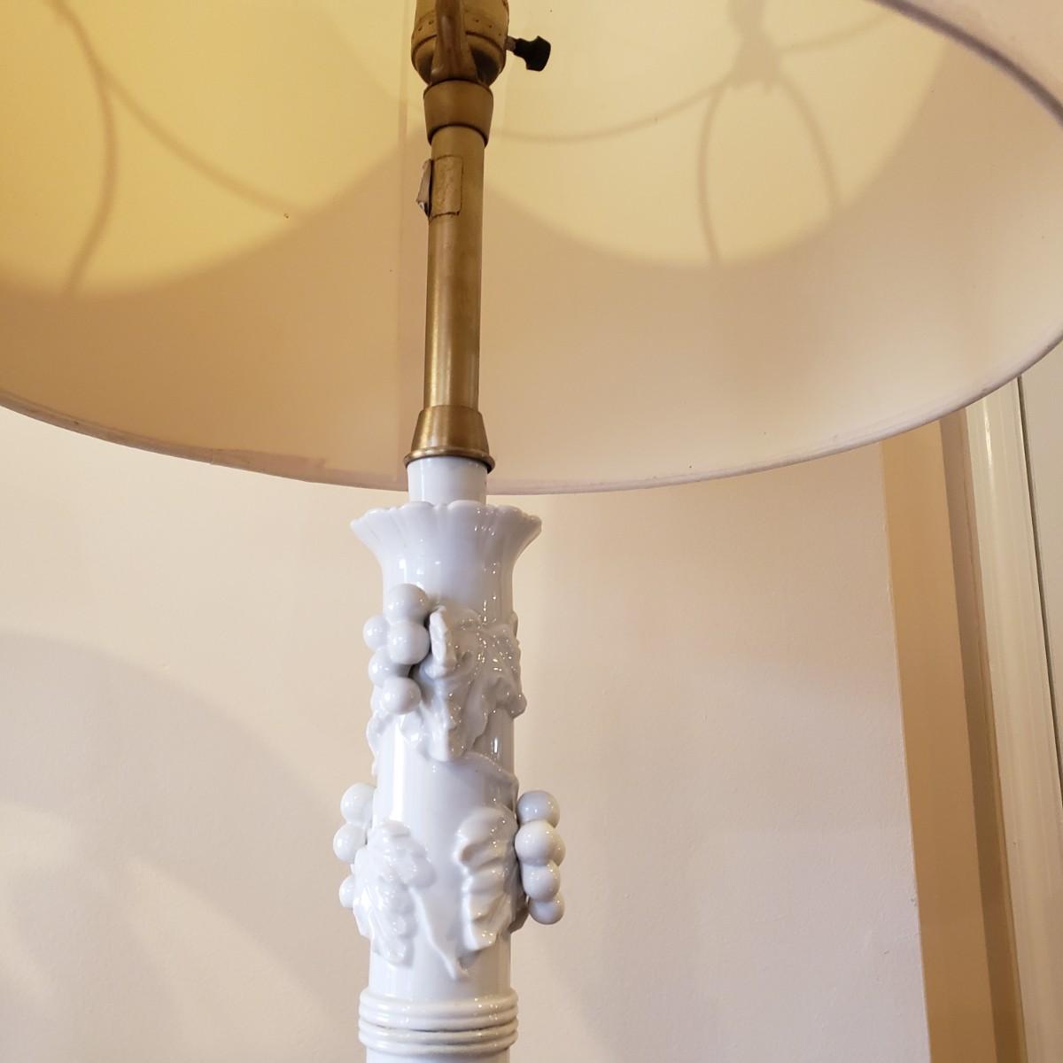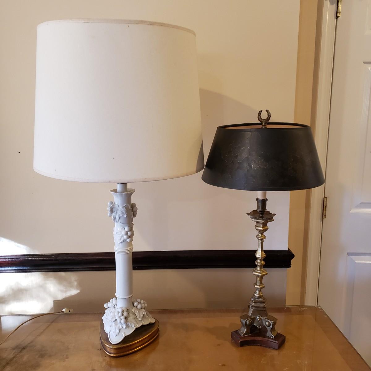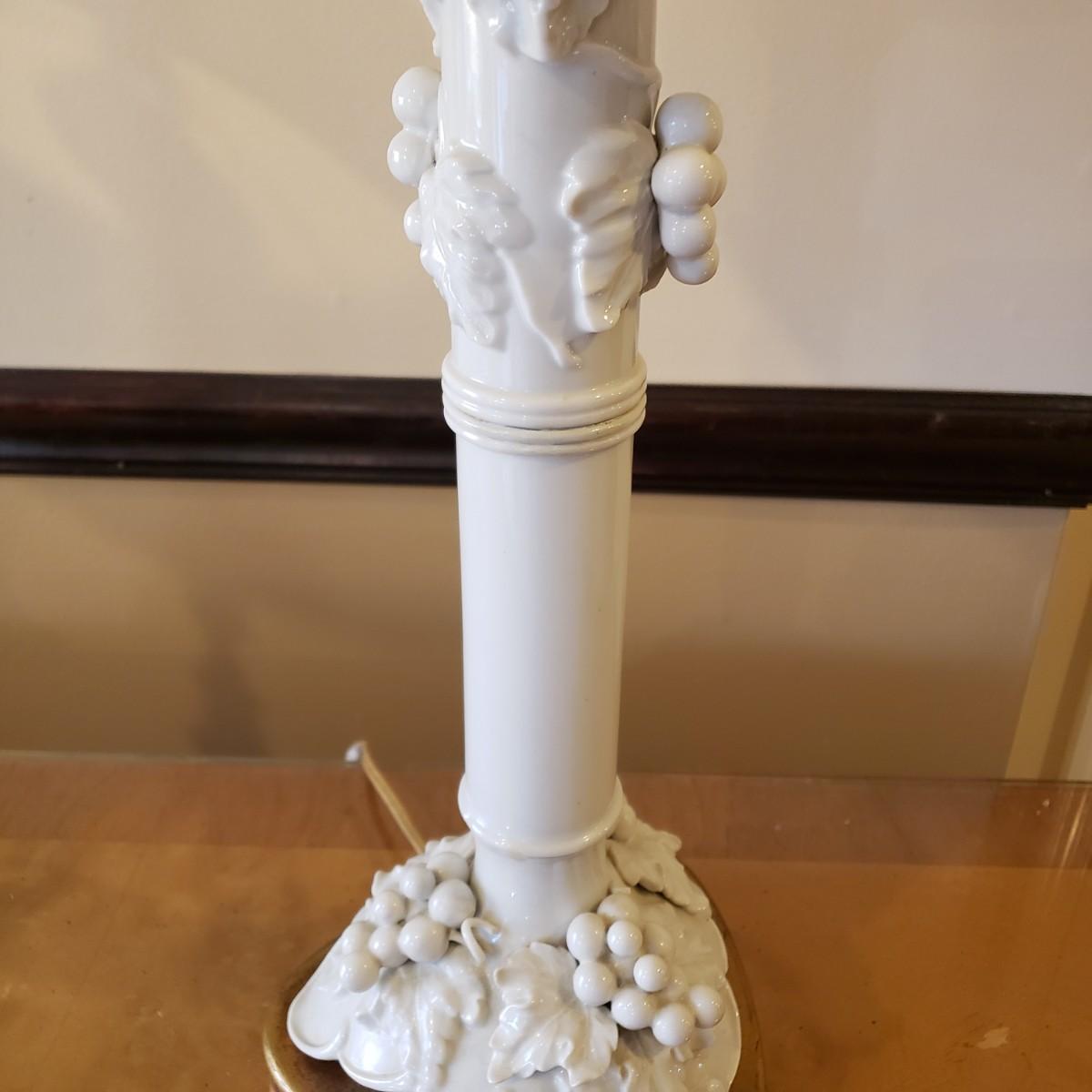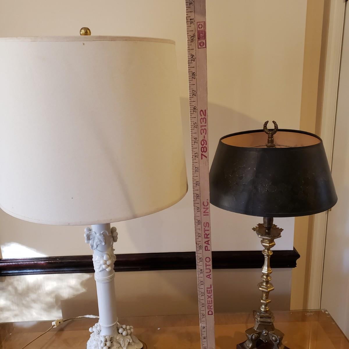 LOT 317B: Vintage Brass Candlestick Lamp & Italian Ceramic Grape Leaf Lamp