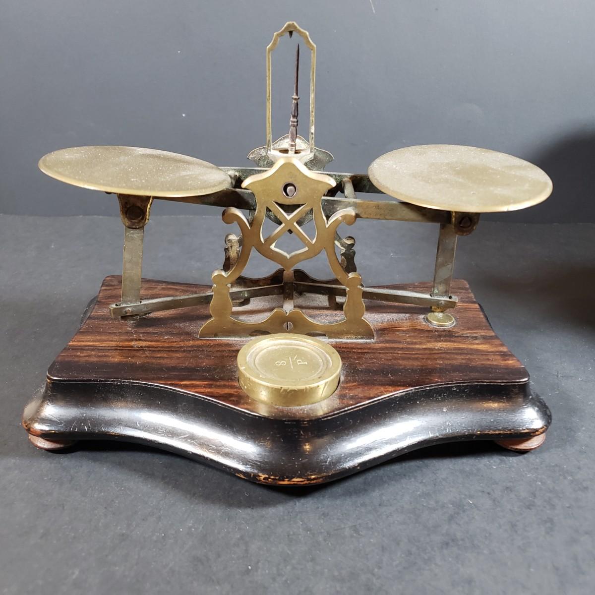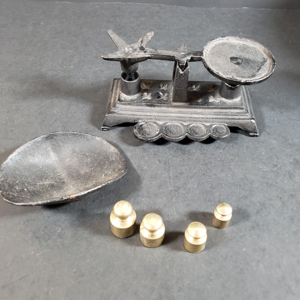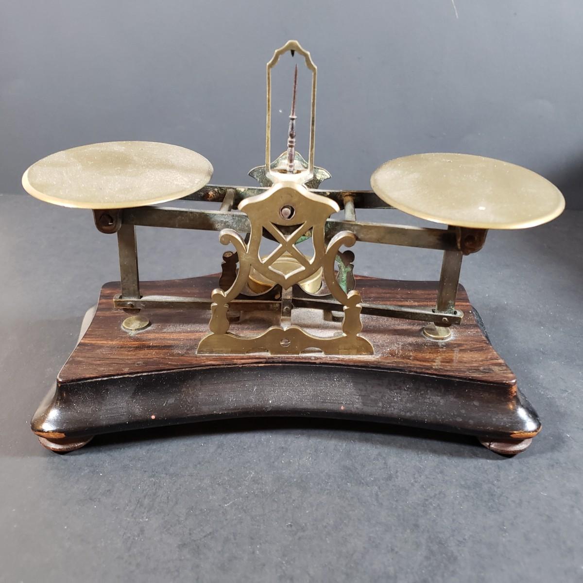 LOT 318B: Vintage Brass & Cast Iron Scales, Brass Table Decor & More