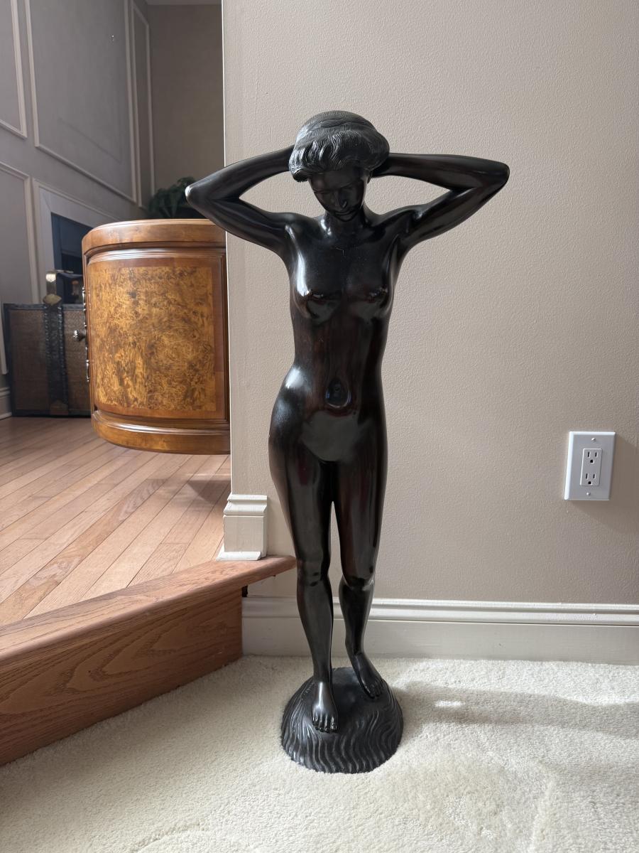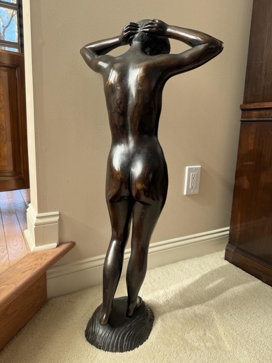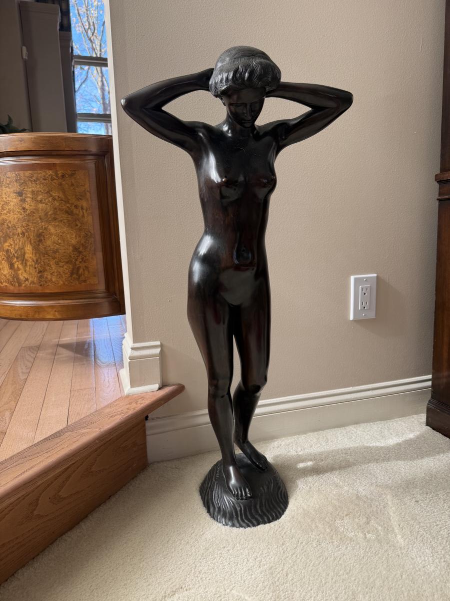 34" tall and heavy statue. Please see all pictures as they are the best representation of the items. The pictures show condition, measurements if taken, and what is included in the lot. Due to the large amount that we photograph and the time frame, we are not always able to take measurements. All items unless noted, are pre-owned and have been used. If you purchased furniture, you must bring help. We do not allow one person to carry large furniture out on their own. Bring help, tools and a truck for the safety of our client’s homes, and your personal safety. Any damages that result to the property including walls, and floors due to moving of the furniture will be charged to the buyer. Company policy. Thank you.