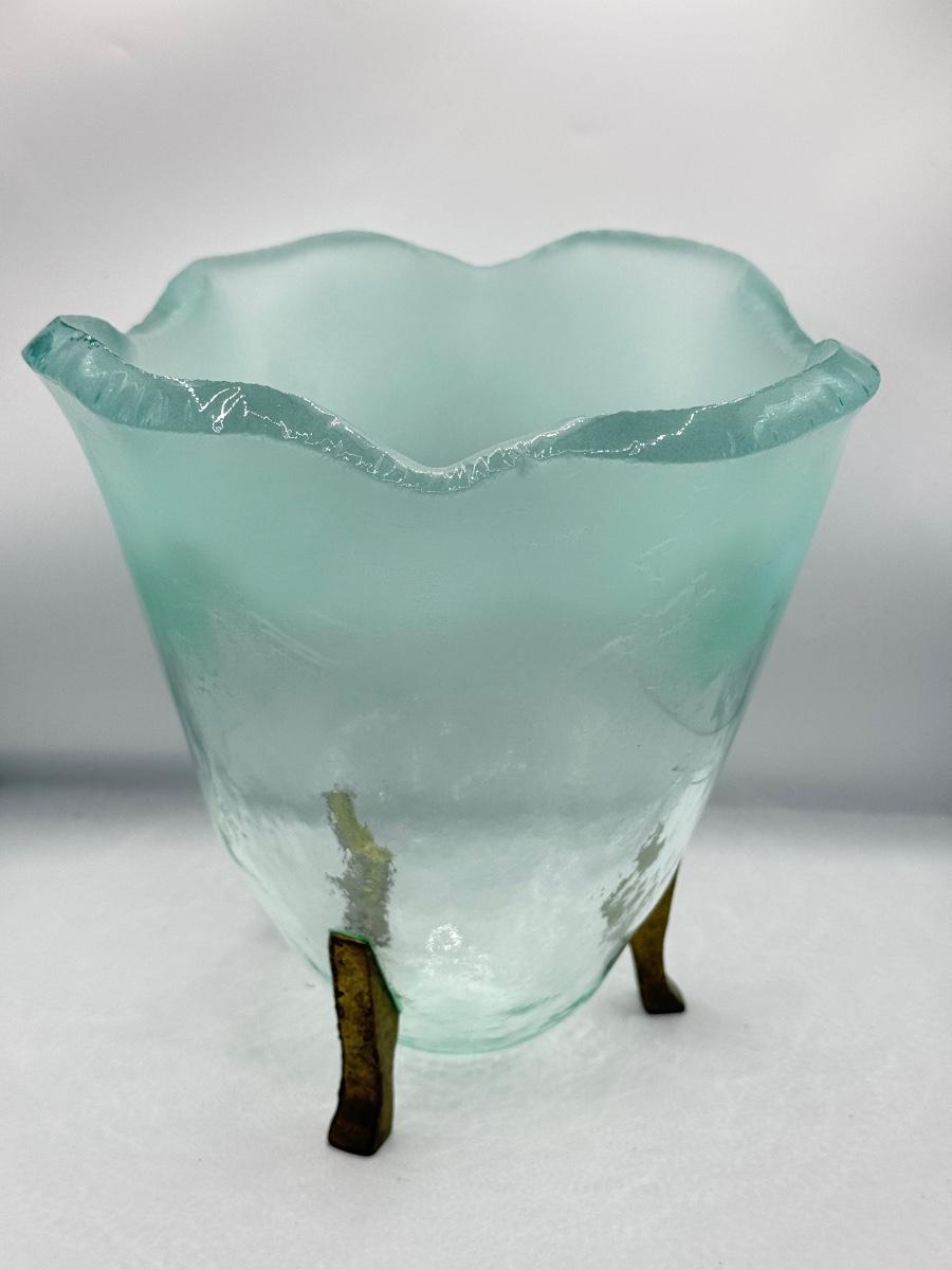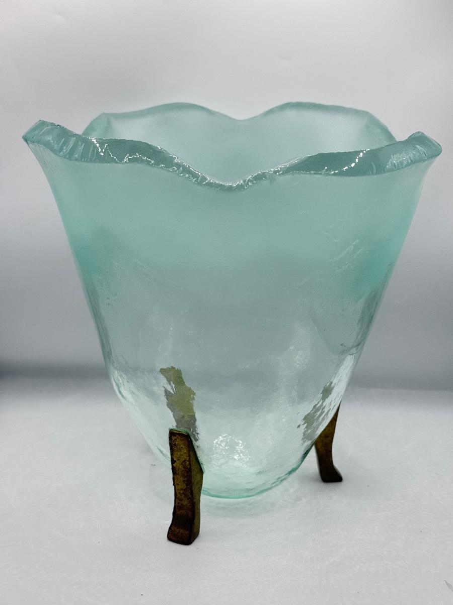 LOT 324L: Frosted Teal Glass Design Wine/Champagne Cooler
