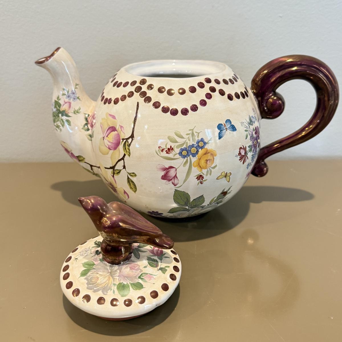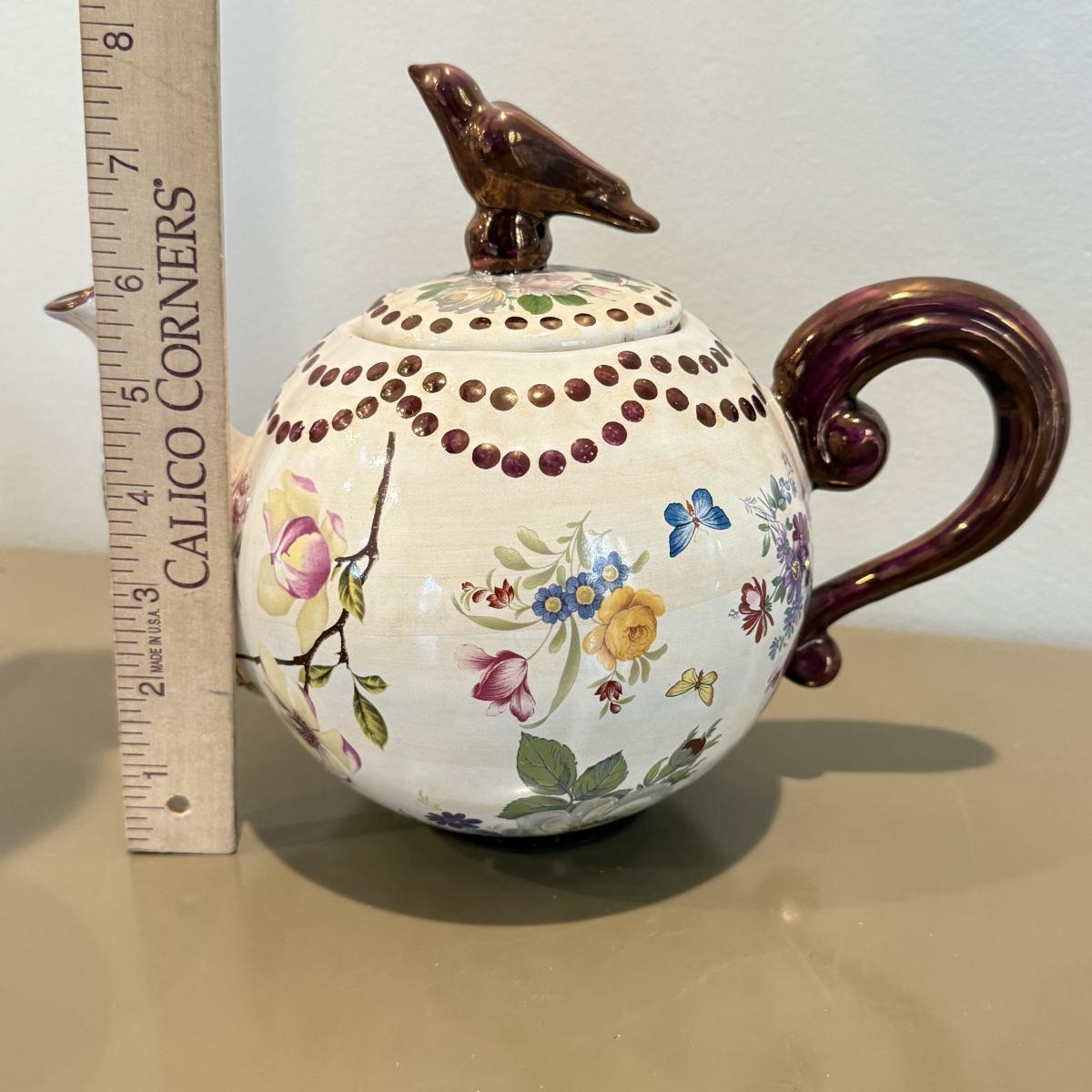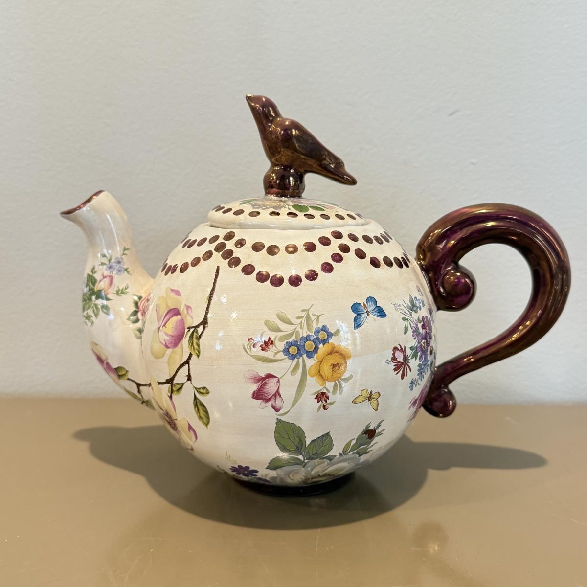 LOT 328F: Mackenzie-Childs Bird Teapot w/ Large Box