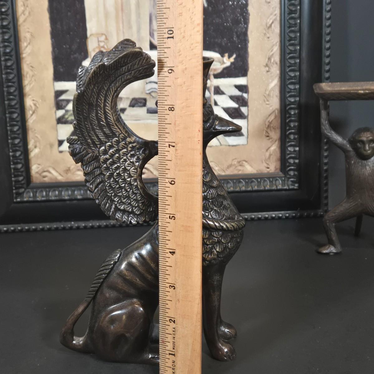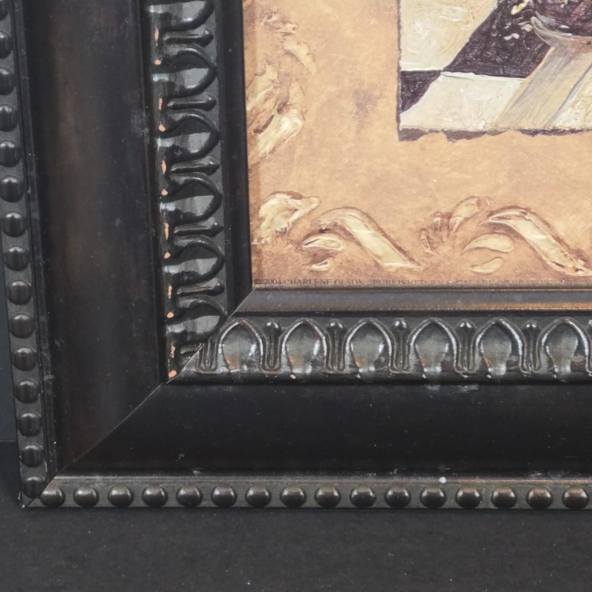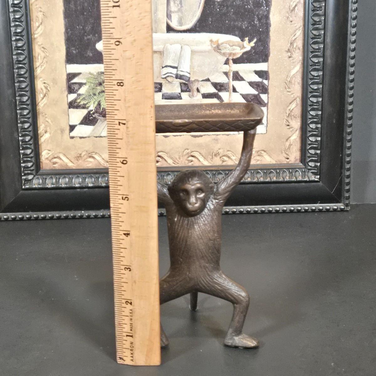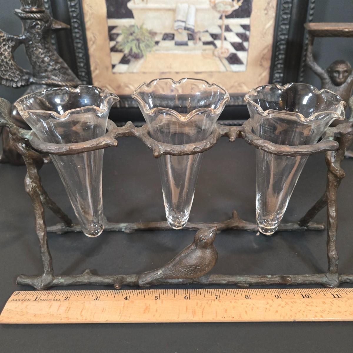 LOT 344B: Maison Bath II by Artist Charlene Winterle Olson, Vintage Bud Vase Set, Vintage Griffin Candlestick Holder, and Bombay Co Brass Monkey Trinket Holder/ Soap Dish