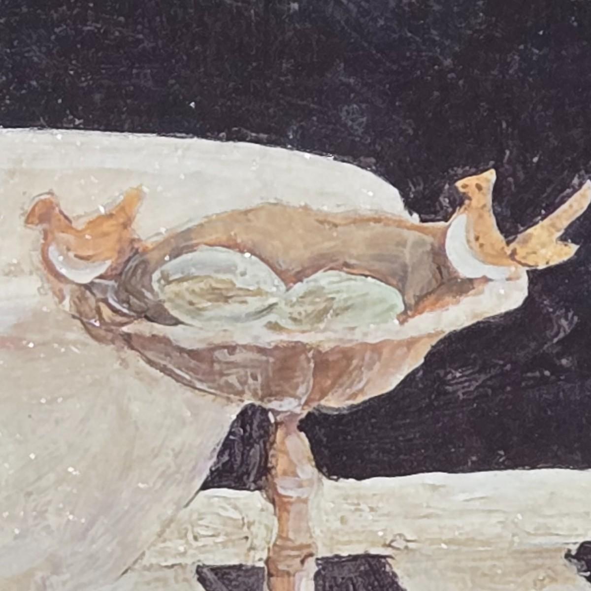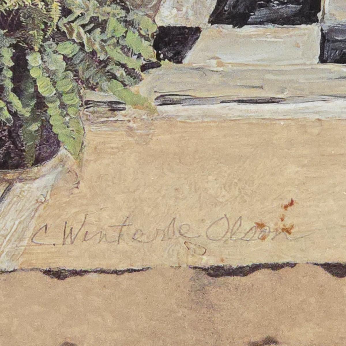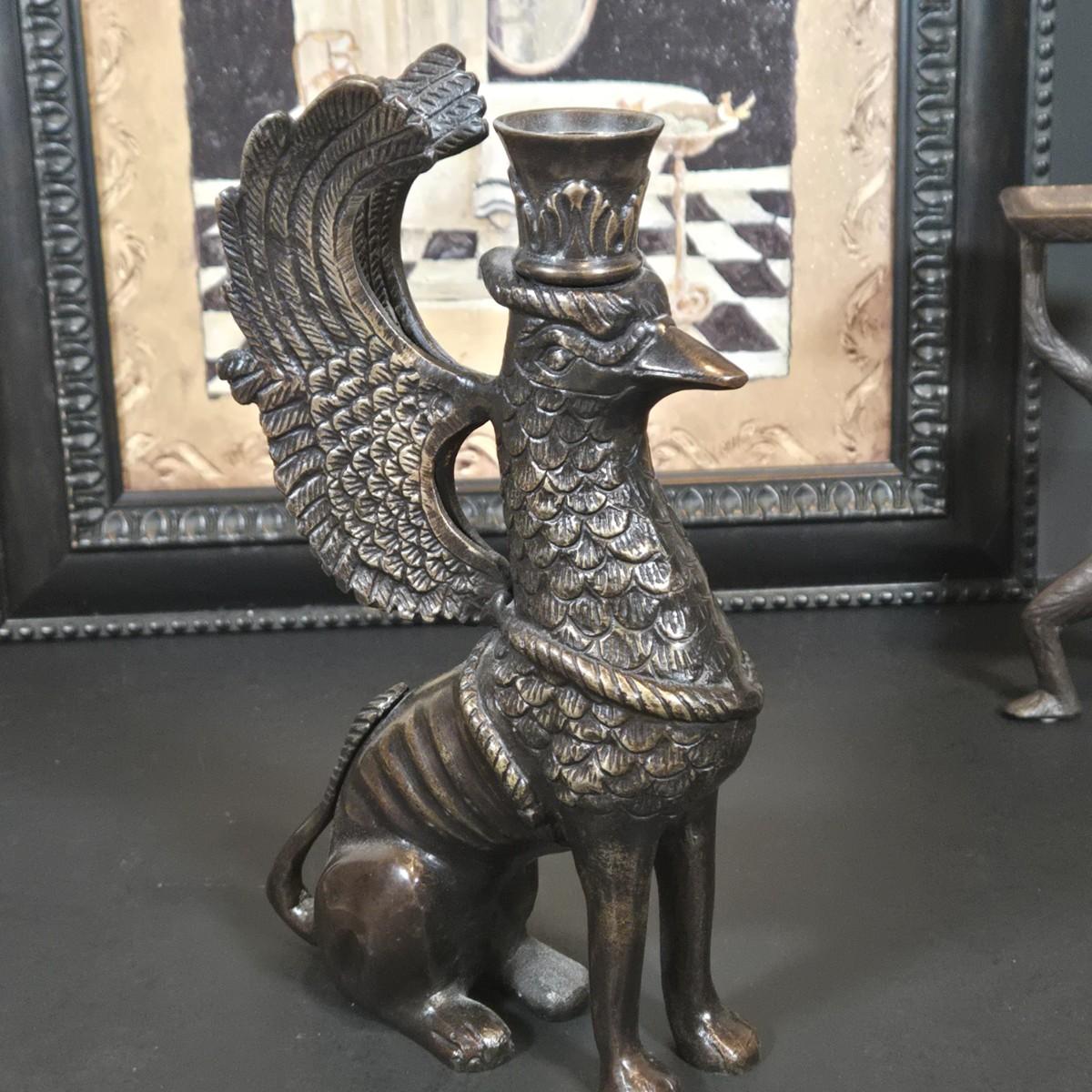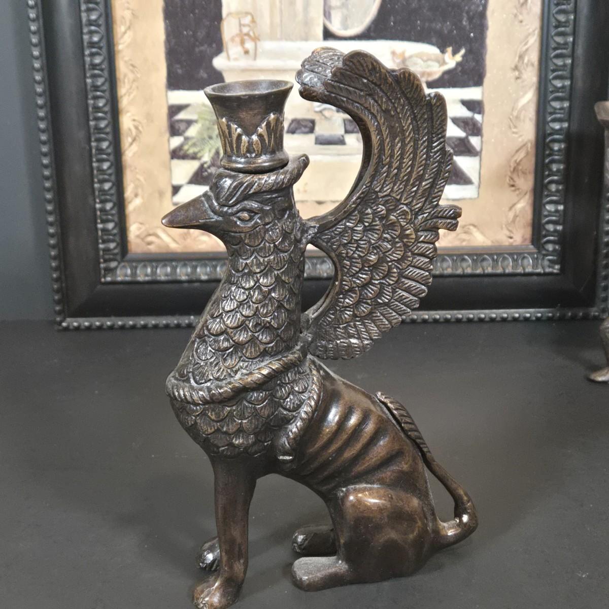 LOT 344B: Maison Bath II by Artist Charlene Winterle Olson, Vintage Bud Vase Set, Vintage Griffin Candlestick Holder, and Bombay Co Brass Monkey Trinket Holder/ Soap Dish