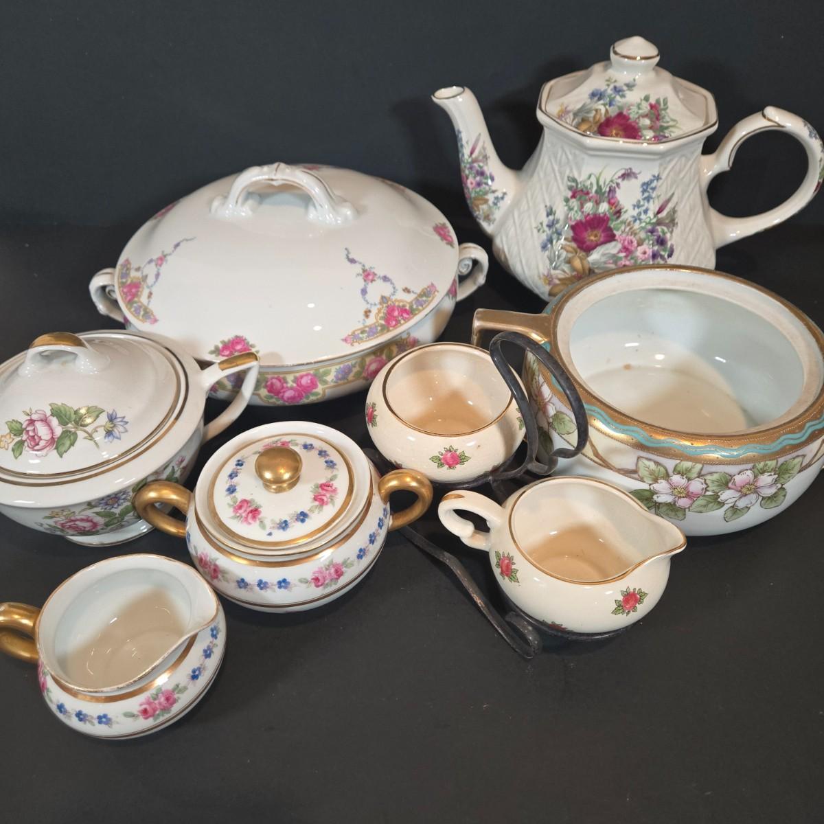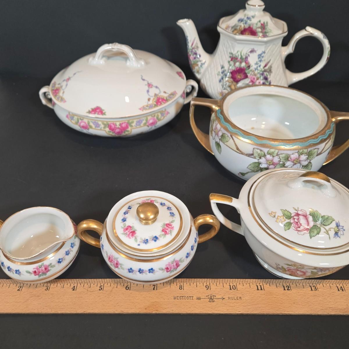 LOT 345B: Various Pieces of Flowered China Including Limoges France, Embassy, Nippon, and More