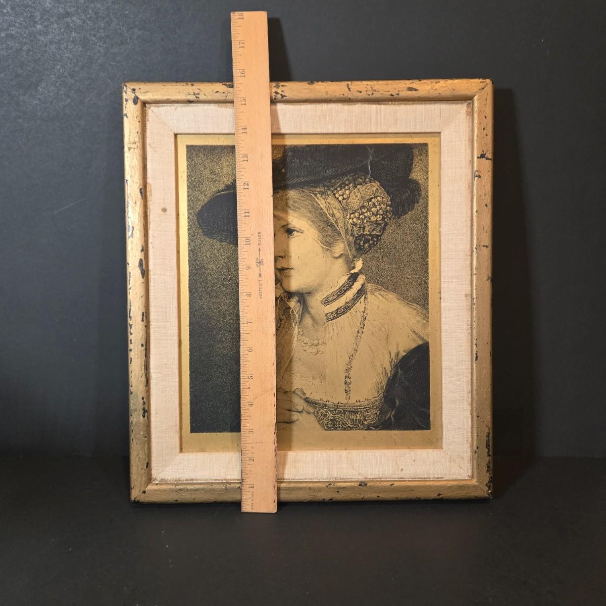 LOT 350B: A Day Dream Framed Etched Art, Clay Pitcher with Faux Lavender, and Two Antique British Poets and Translations Books