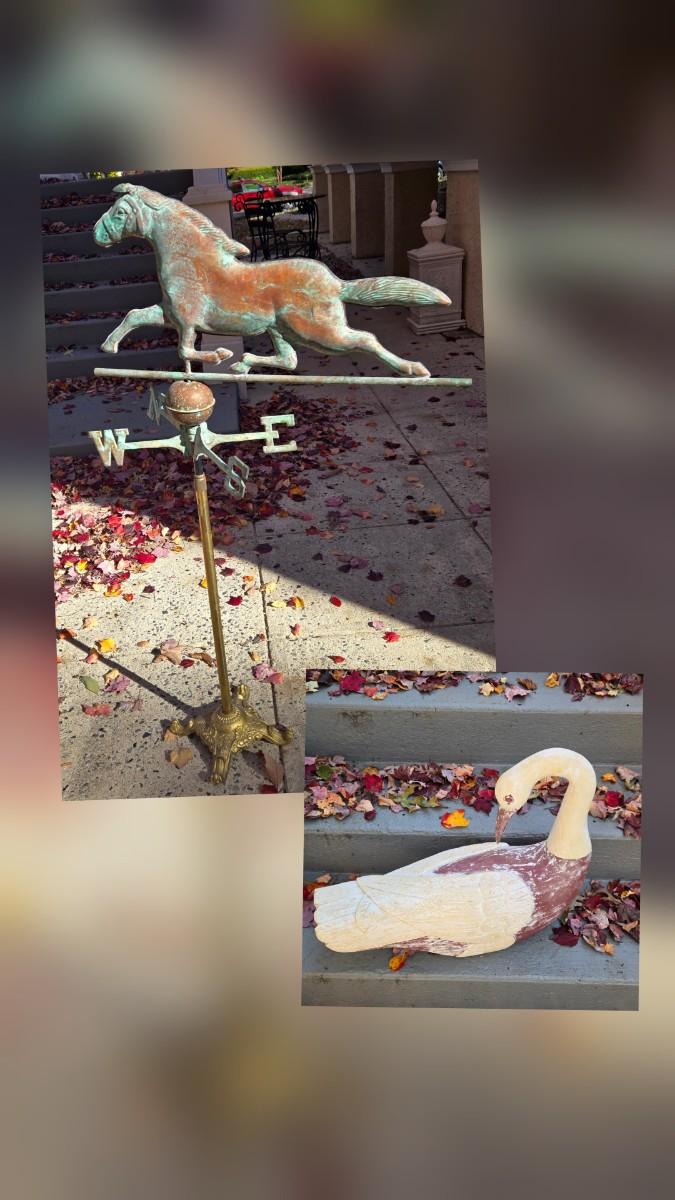 LOT 354B: Vintage Horse Weather Vane on Pole and Wooden Swan
