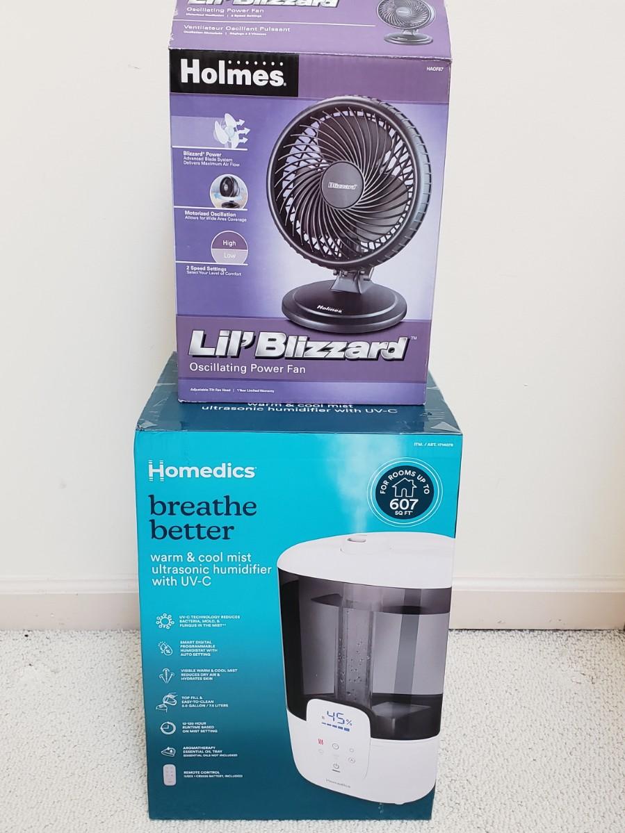 LOT 411Z: New Sealed Homedics Humidifier & Holmes Oscillating Power Fan