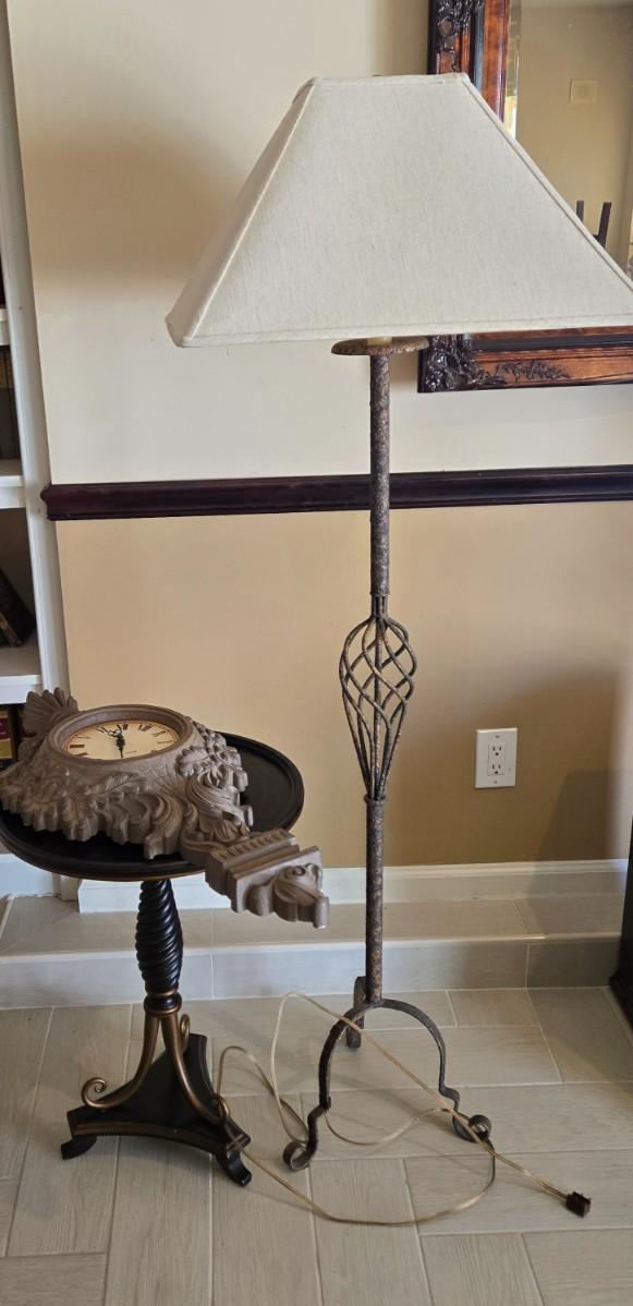 Untested! Lamp is 62 inches tall and needs repair, table is 18 round and 24.5 high. Please see all pictures as they are the best representation of the items. The pictures show condition, measurements if taken, and what is included in the lot. Due to the large amount that we photograph and the time frame, we are not always able to take measurements. All items unless noted, are pre-owned and have been used. If you purchased furniture, you must bring help. We do not allow one person to carry large furniture out on their own. Bring help, tools and a truck for the safety of our client’s homes, and your personal safety. Any damages that result to the property including walls, and floors due to moving of the furniture will be charged to the buyer. Company policy. Thank you.