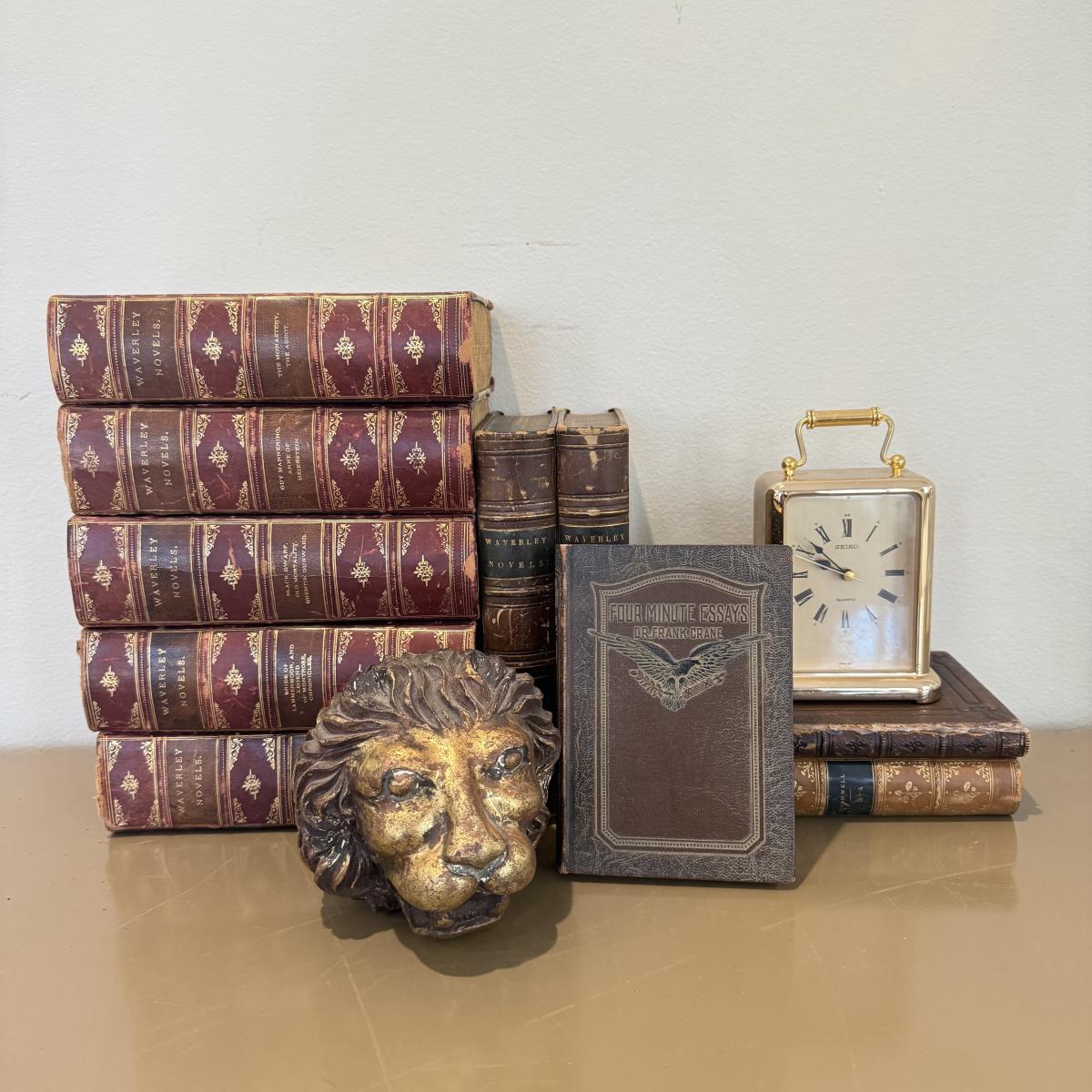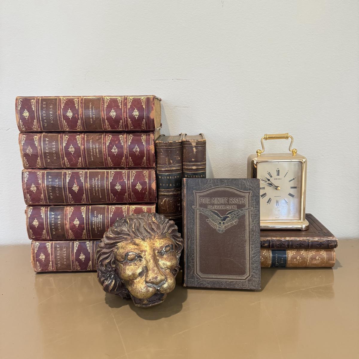 LOT 464F: Antique Books, Seiko Clock & Lions Head