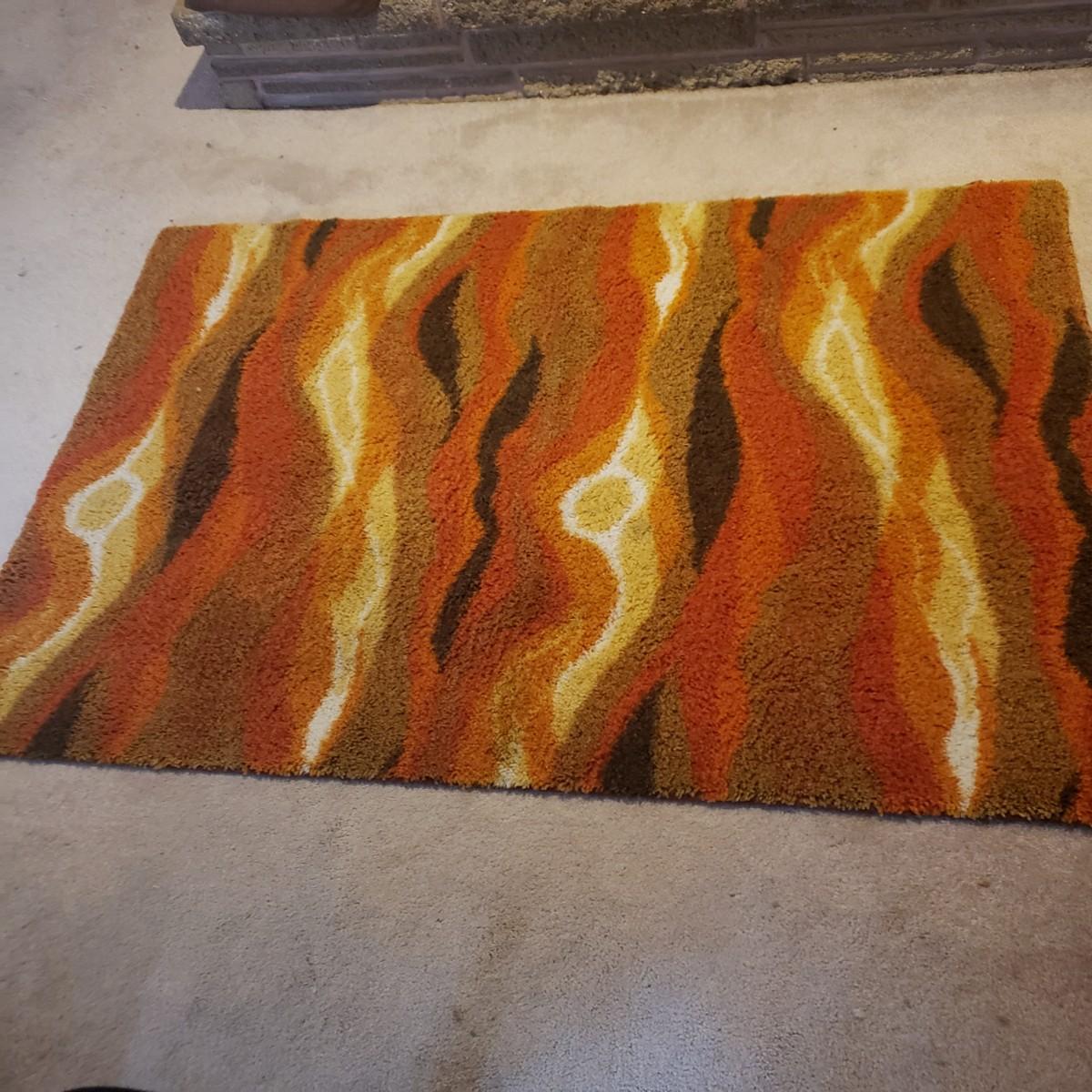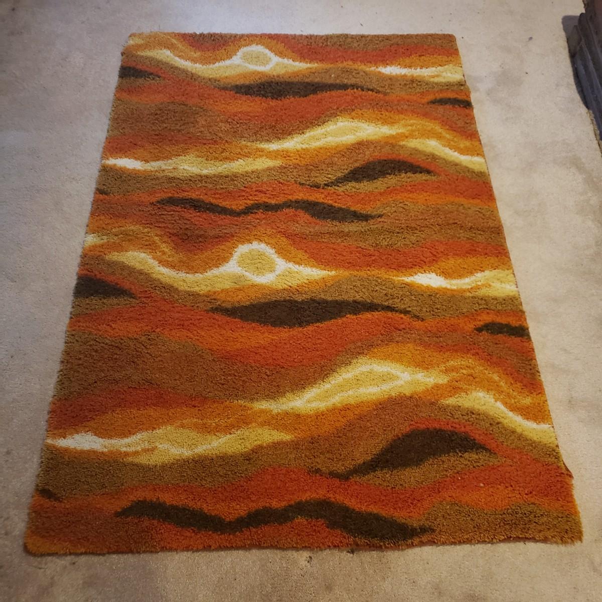 LOT 12L: Vintage Mid Century Wavy Sunset Rug