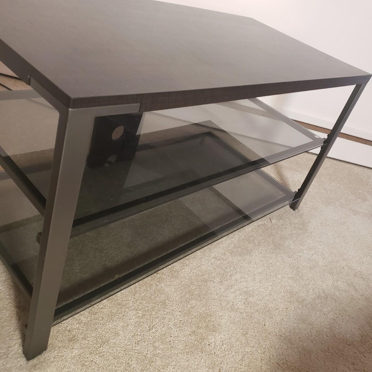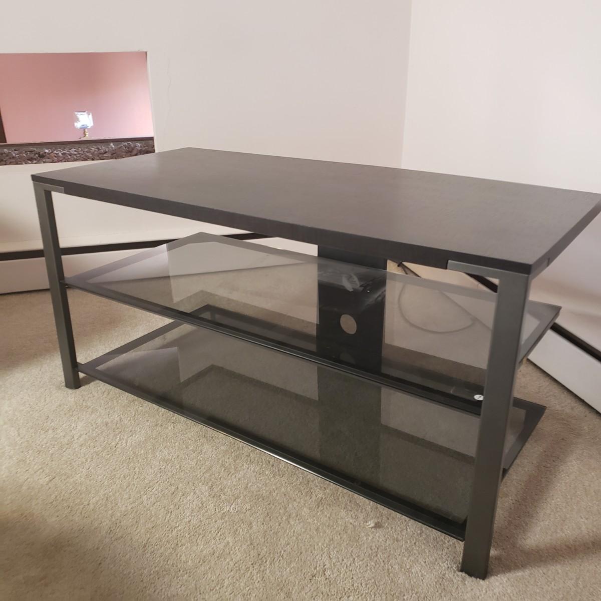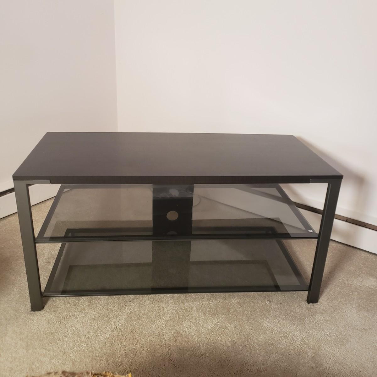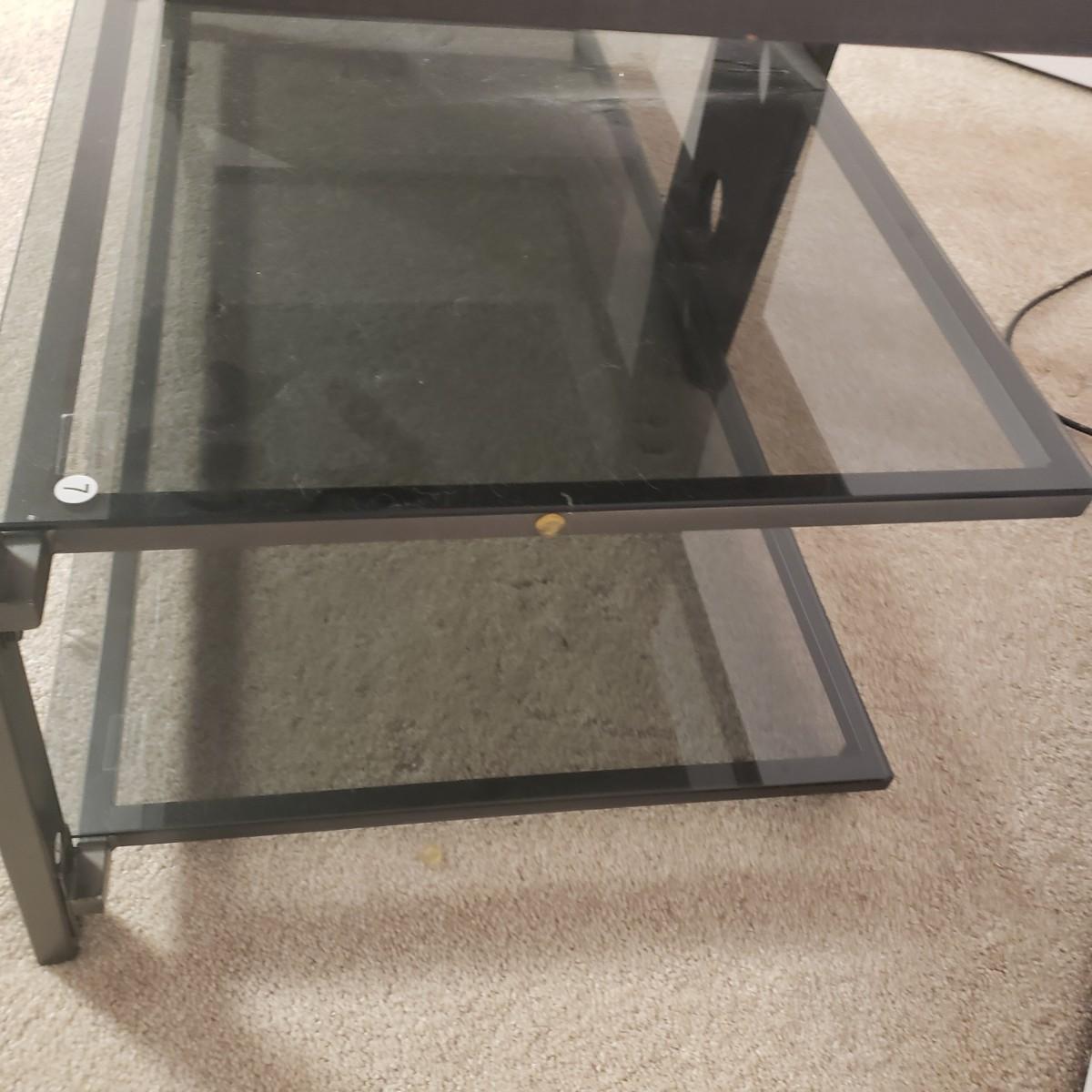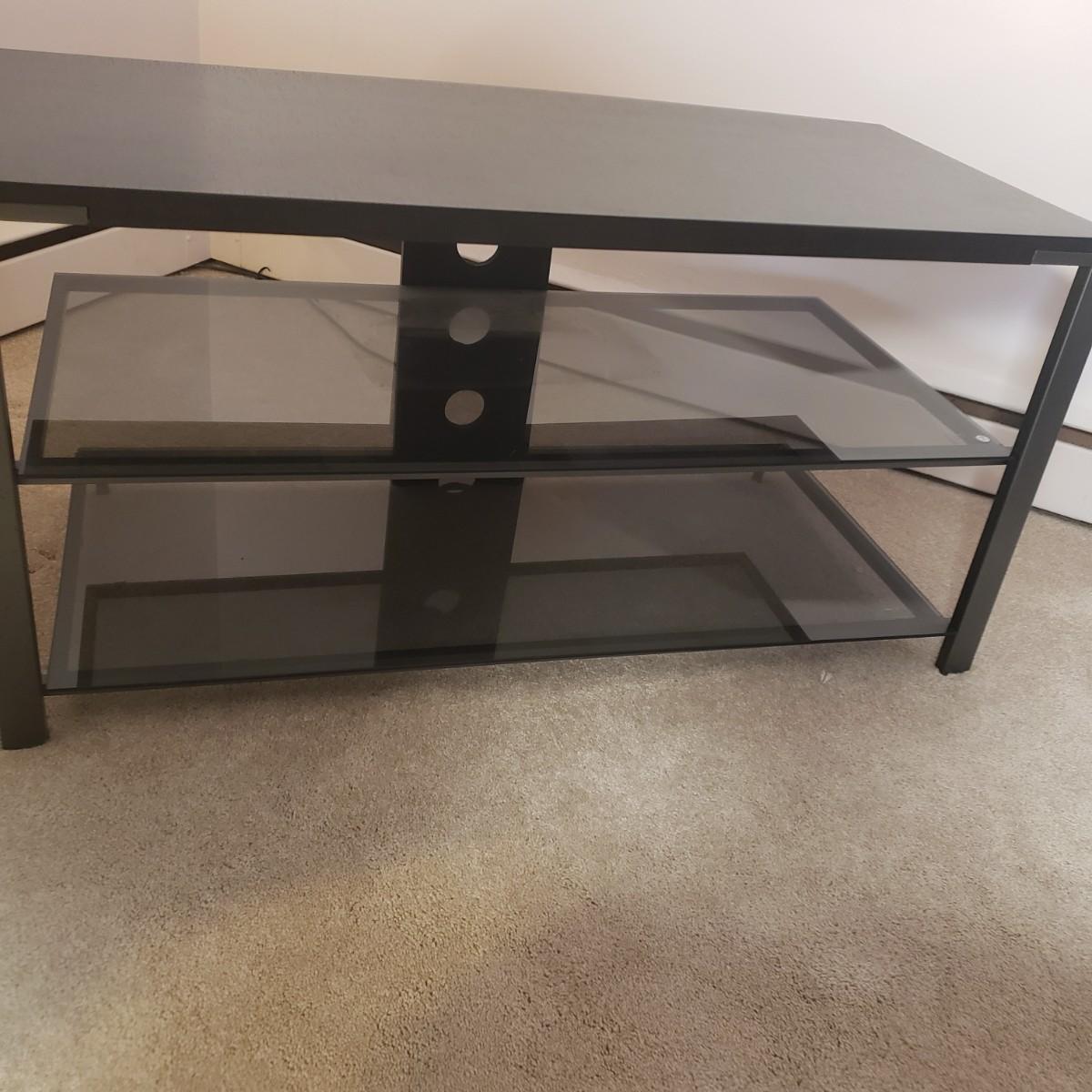 LOT 15L: Modern TV/Media Stand with Smoky Glass Shelves