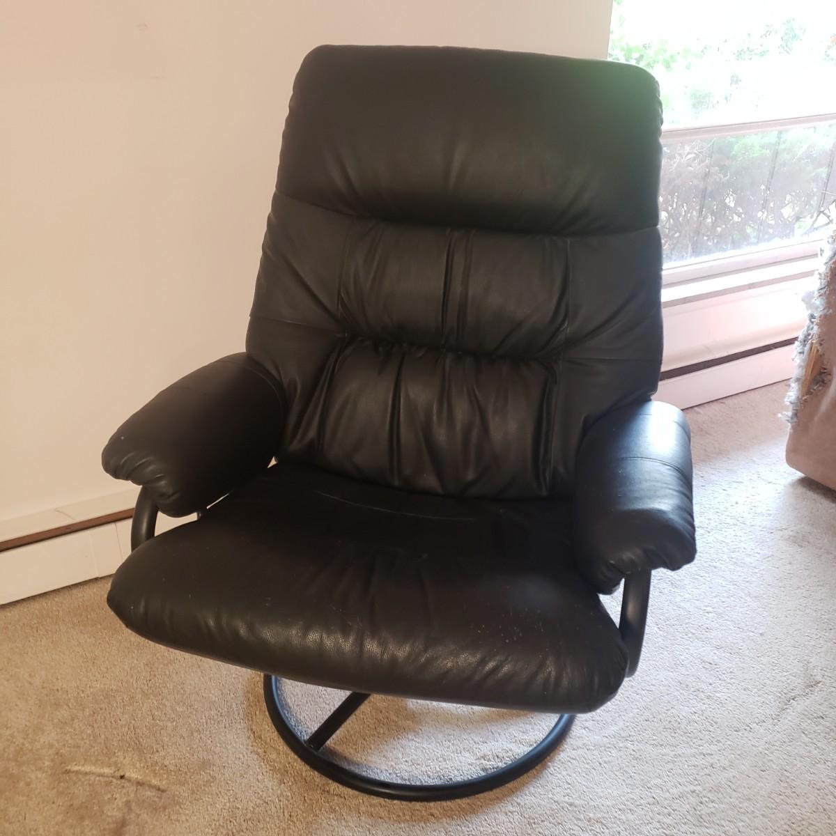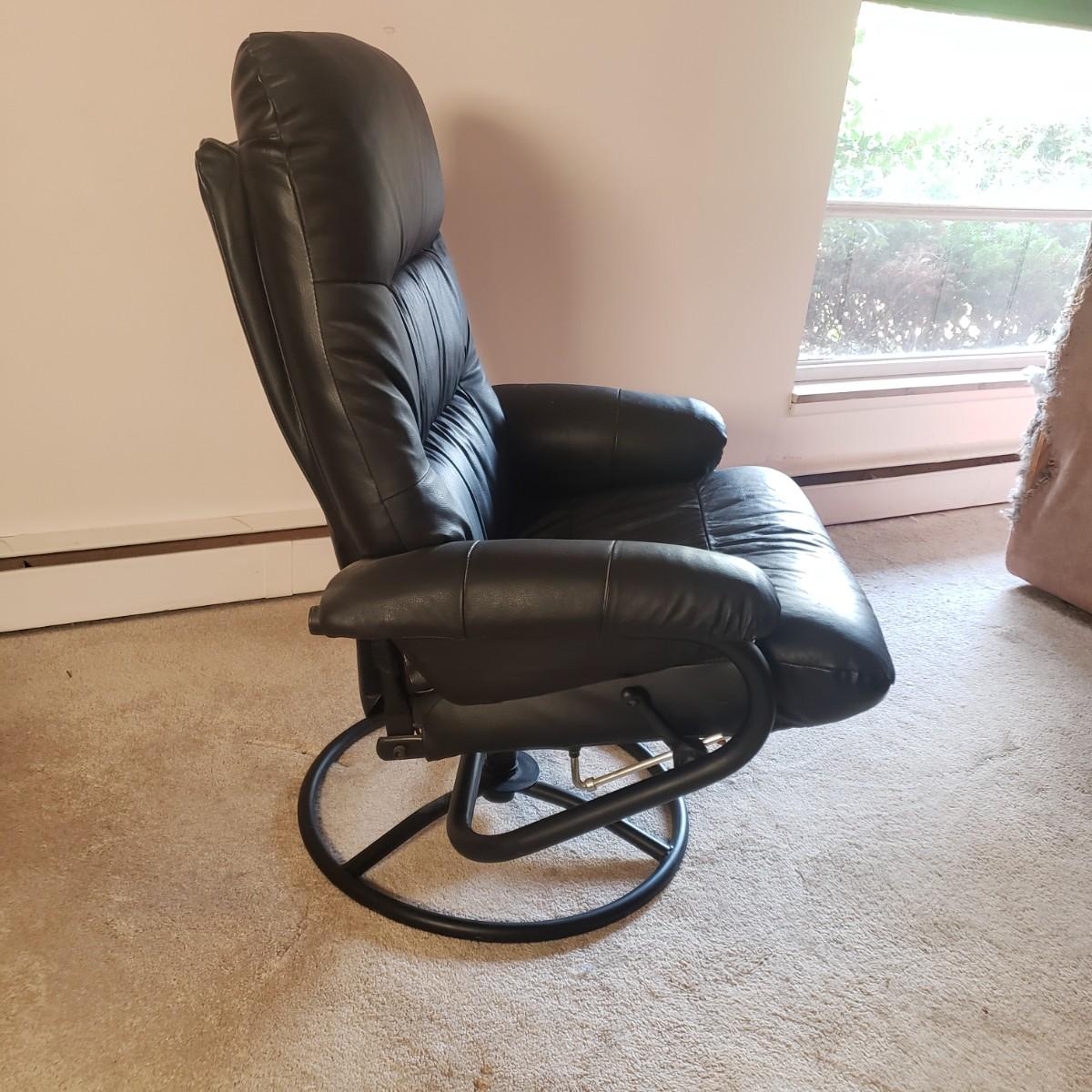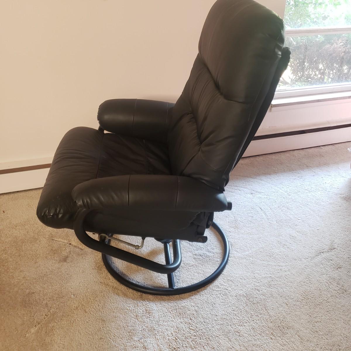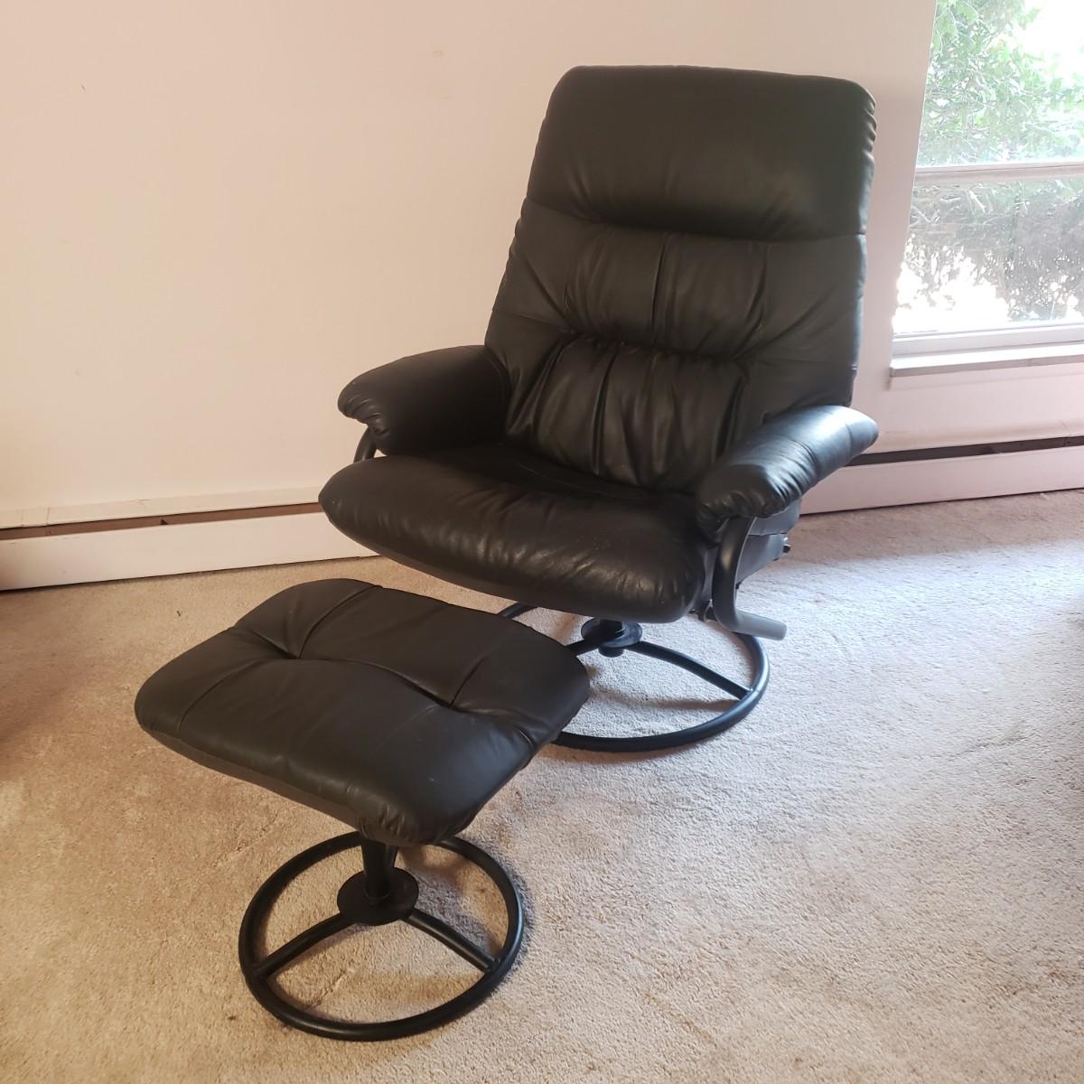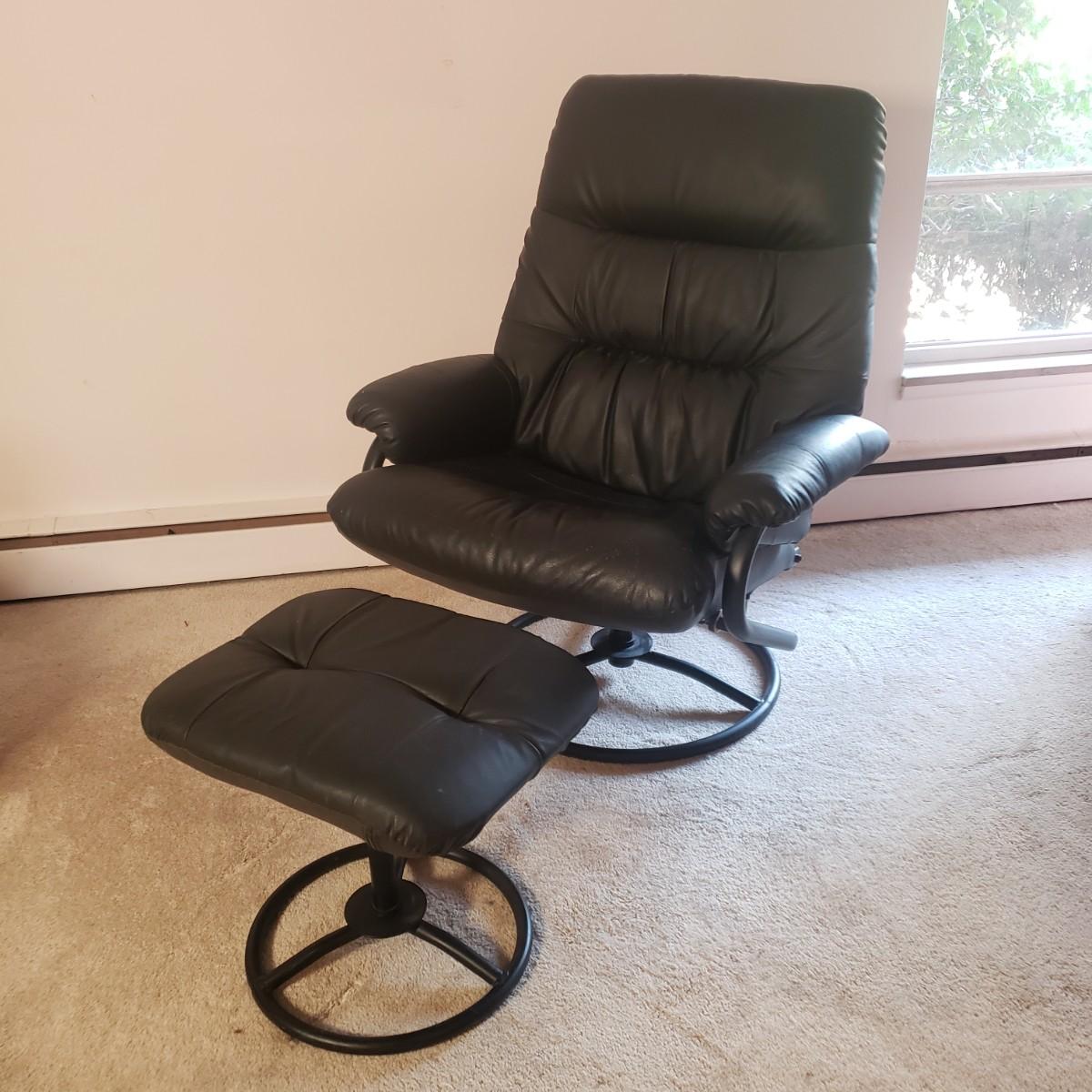 LOT 18L: Modern Black Chair & Ottoman-Ekornes Stressless Style