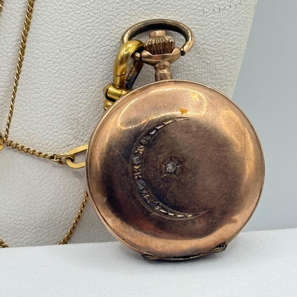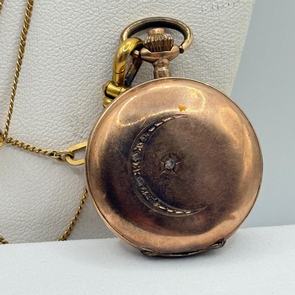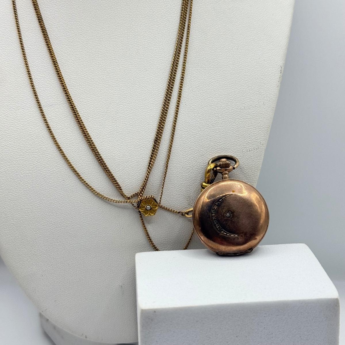 LOT 41J: Vintage Moon Pocket Watch 44” 12kt 1/20th Gold Filled Chain