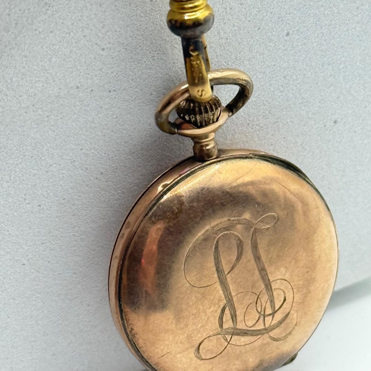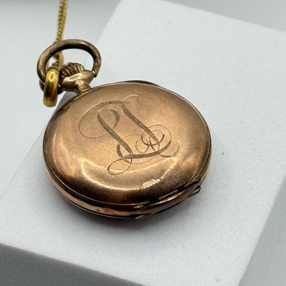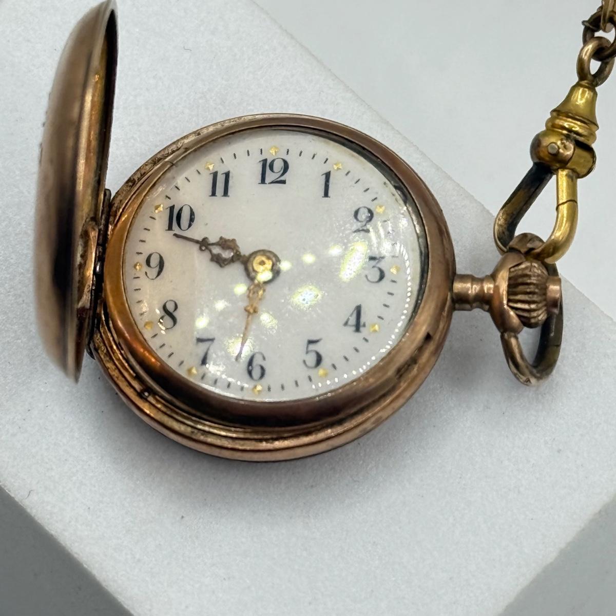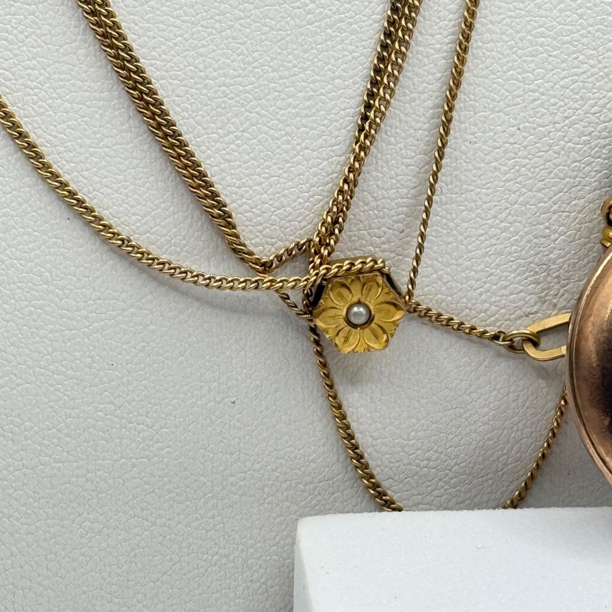 LOT 41J: Vintage Moon Pocket Watch 44” 12kt 1/20th Gold Filled Chain