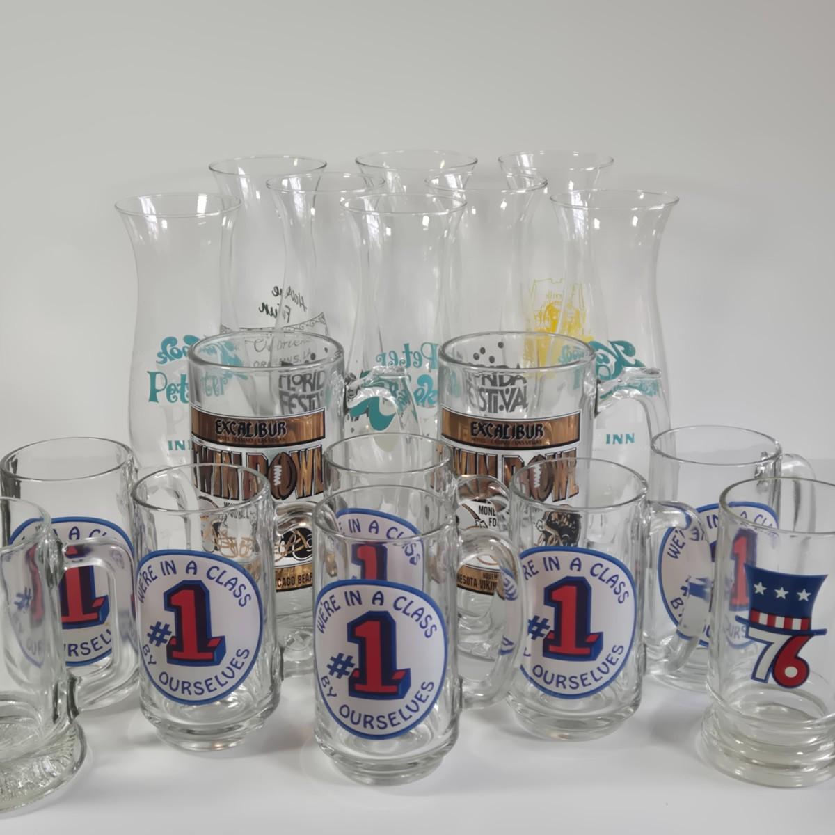 LOT 62L: Beer Sign, Beer Mugs, and Hurricane Glasses