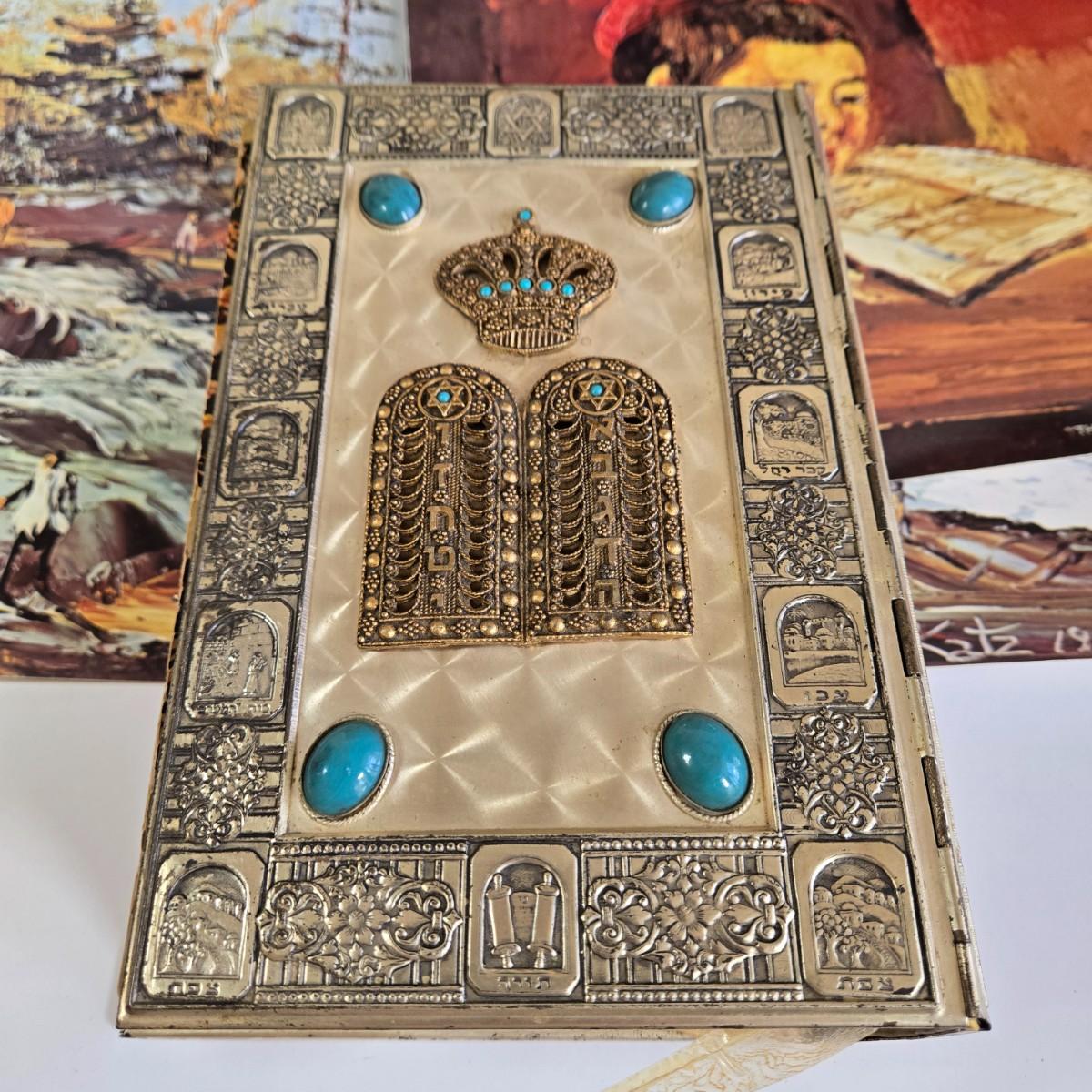 LOT 70L: Morris Katz Prints, Siddur with Decorative Metal Cover, Hen Holon Pewter Goblet, and More