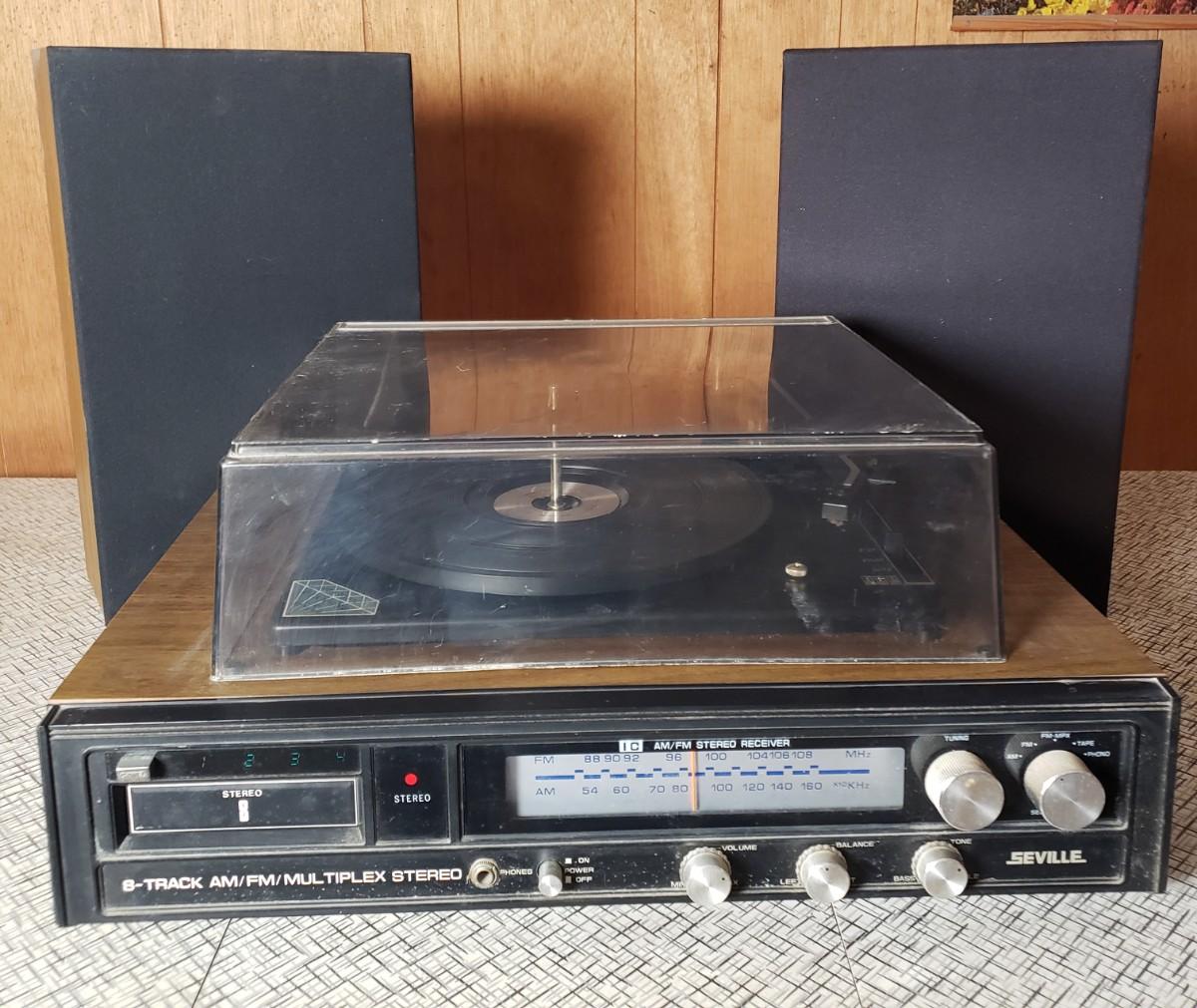 LOT 87B: Seville Solid State 8-Track, Turntable, AM/FM Multiplex Stereo System with Speakers