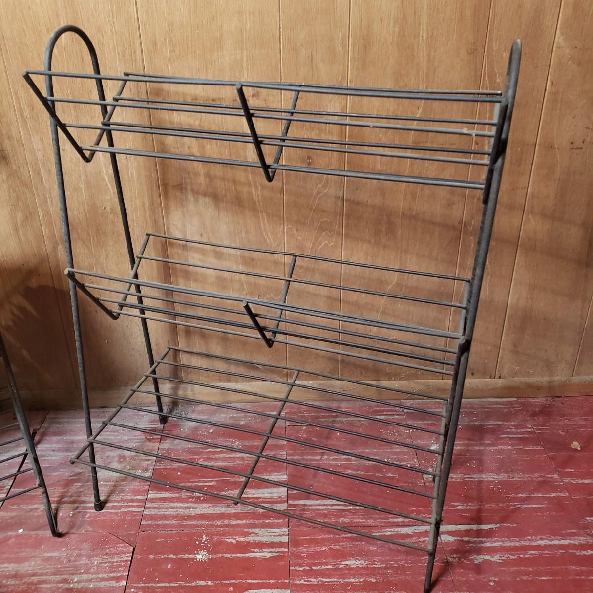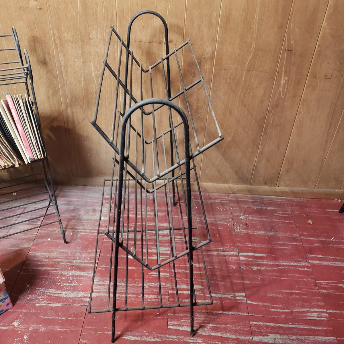 LOT 94B: Two Metal Wire Record Album Racks with Collection of 45s