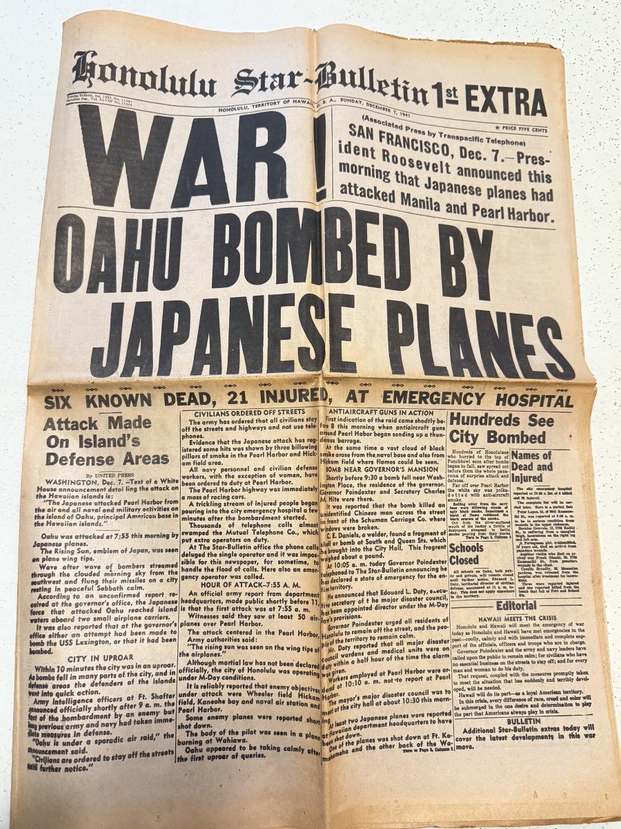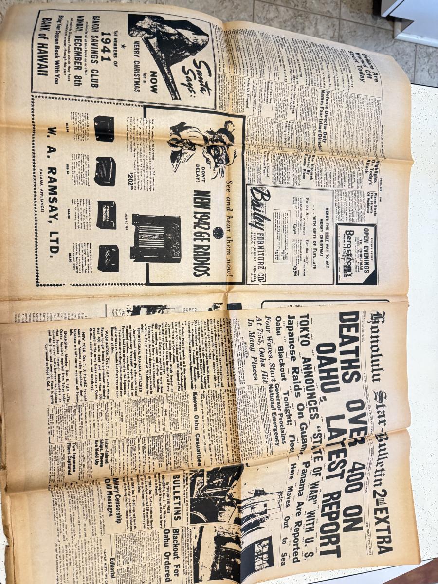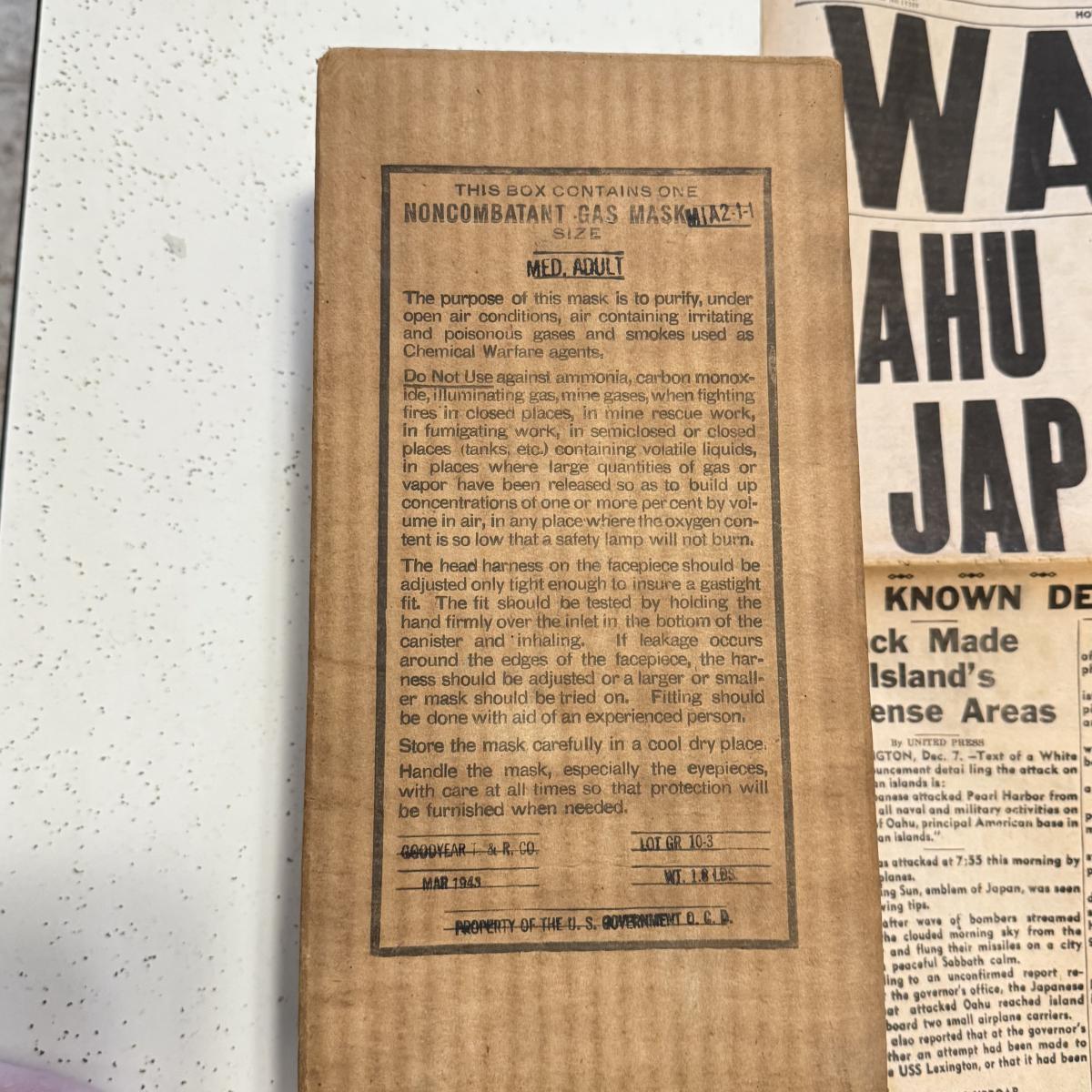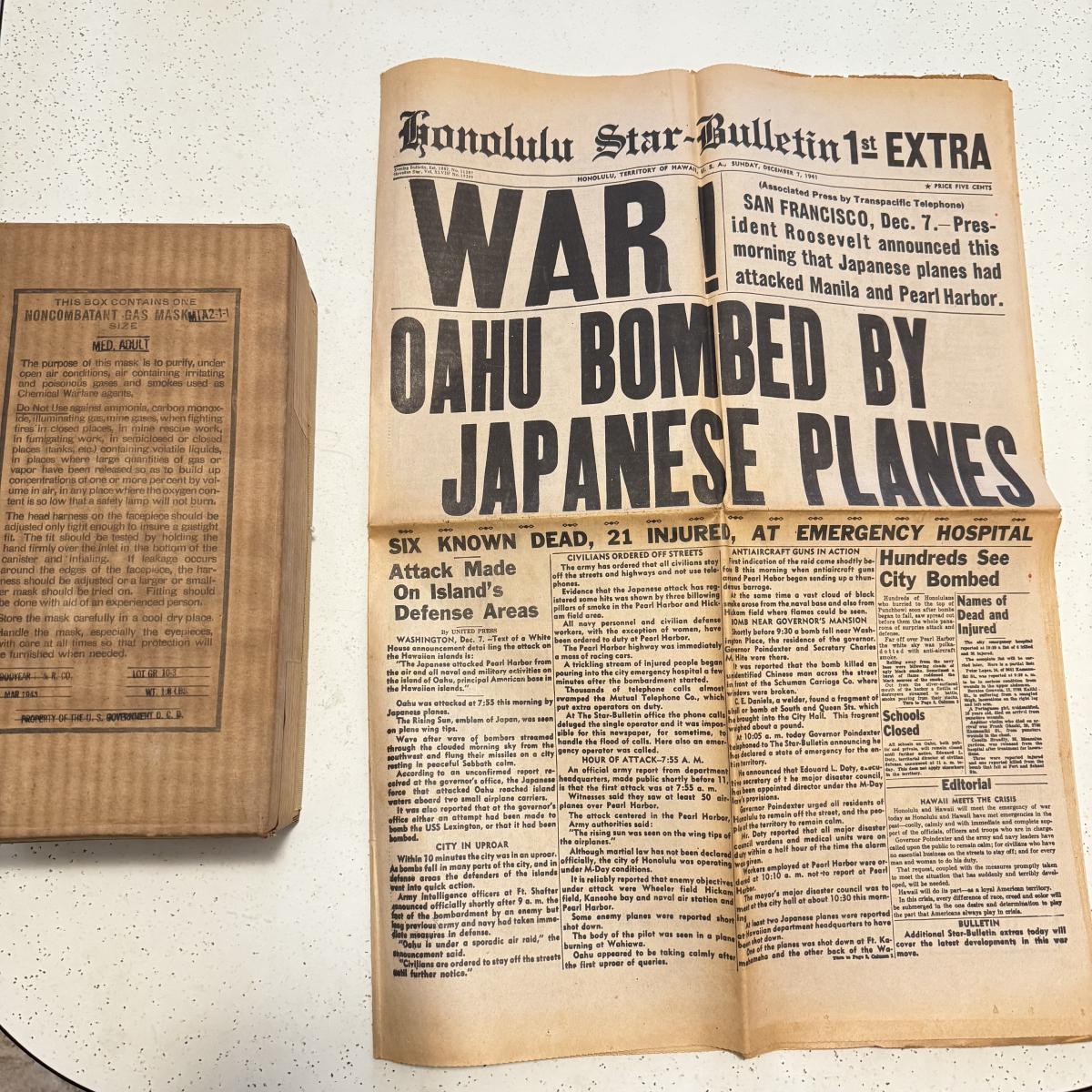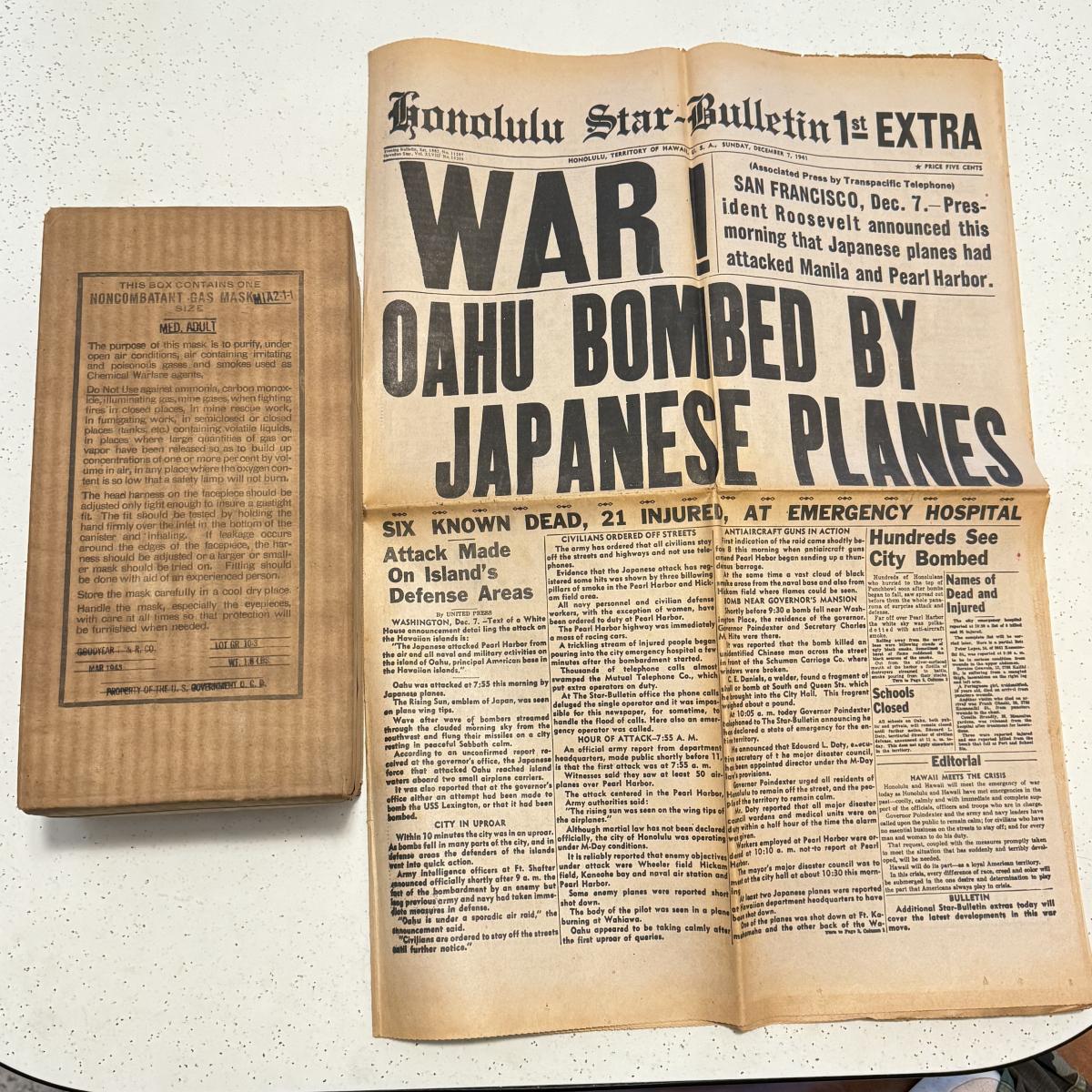 LOT 110K: Honolulu Star Bulletin WWII Dec 1971 Newspaper & NIB SEALED Gas Mask