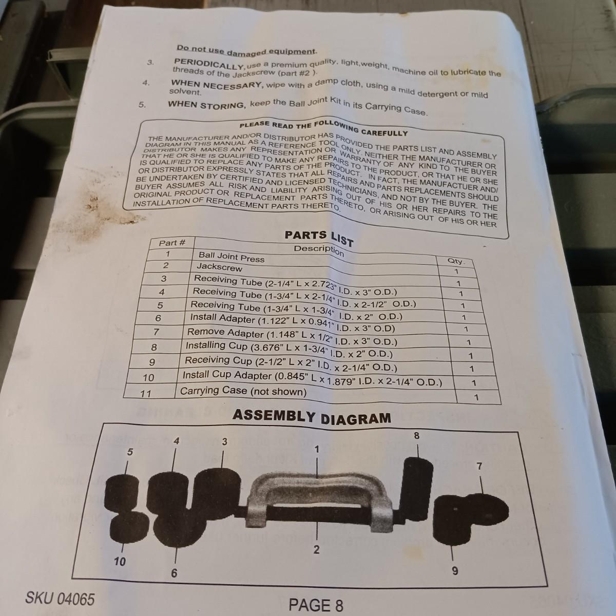 LOT 2: U.S. General Four Wheel Drive Ball Joint Service Kit & Front Wheel Bearing Adapters