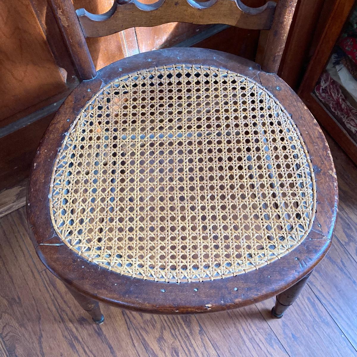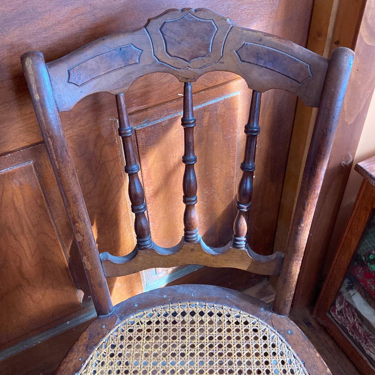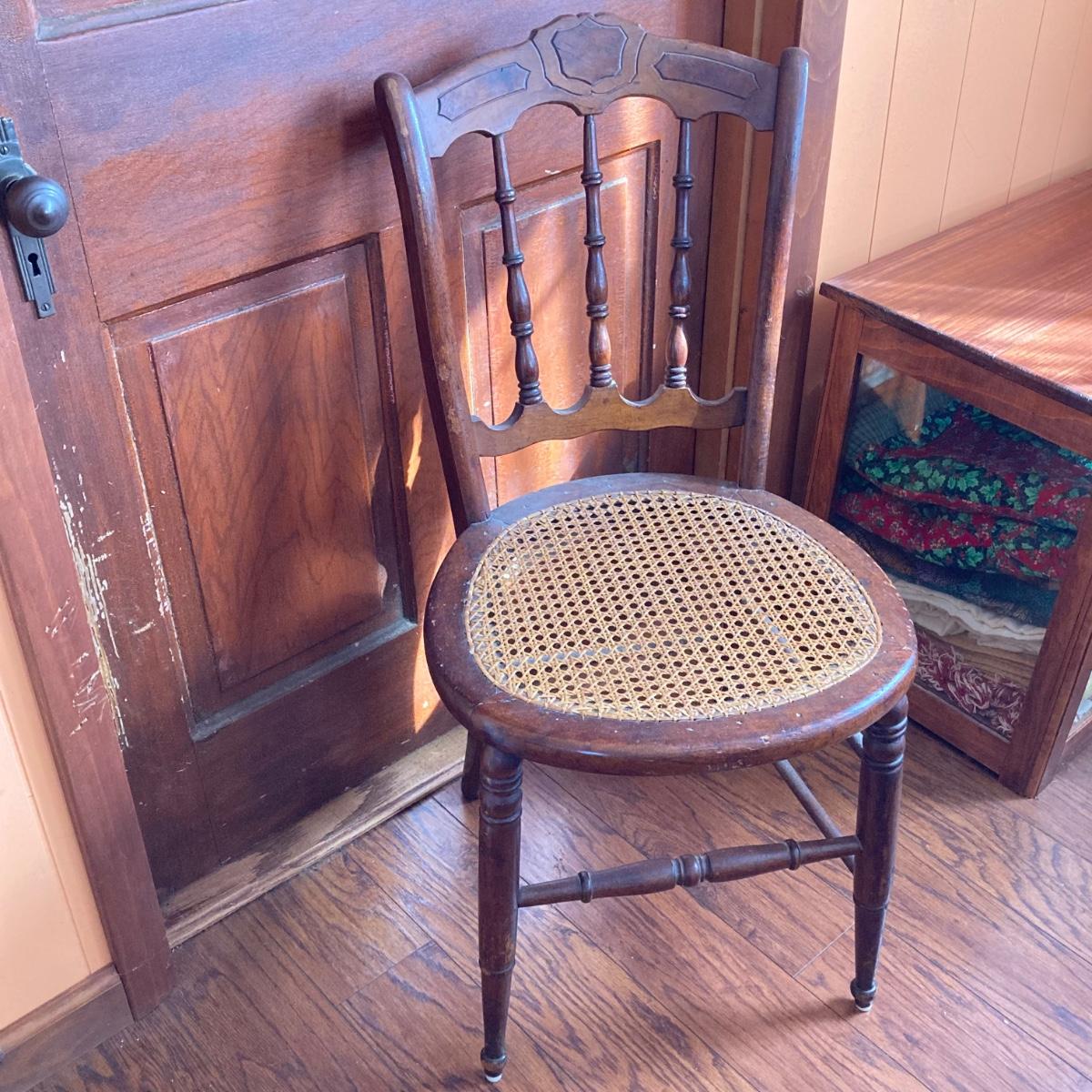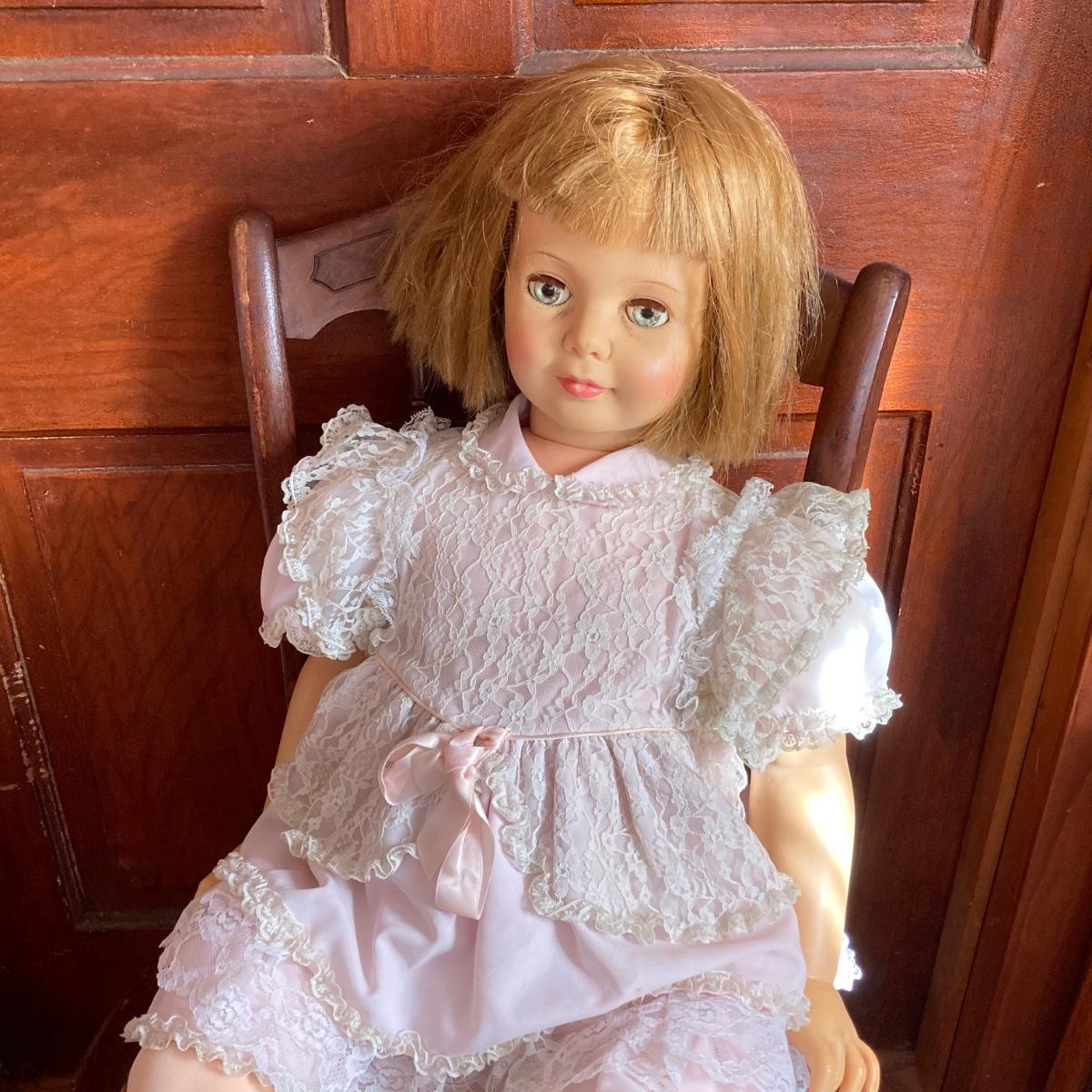 LOT 28: Vintage Collection - Wood / Cane Bottom Chair, Large Doll and Children's Clothing