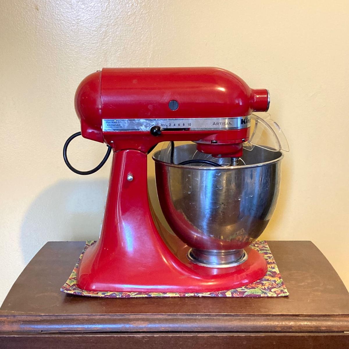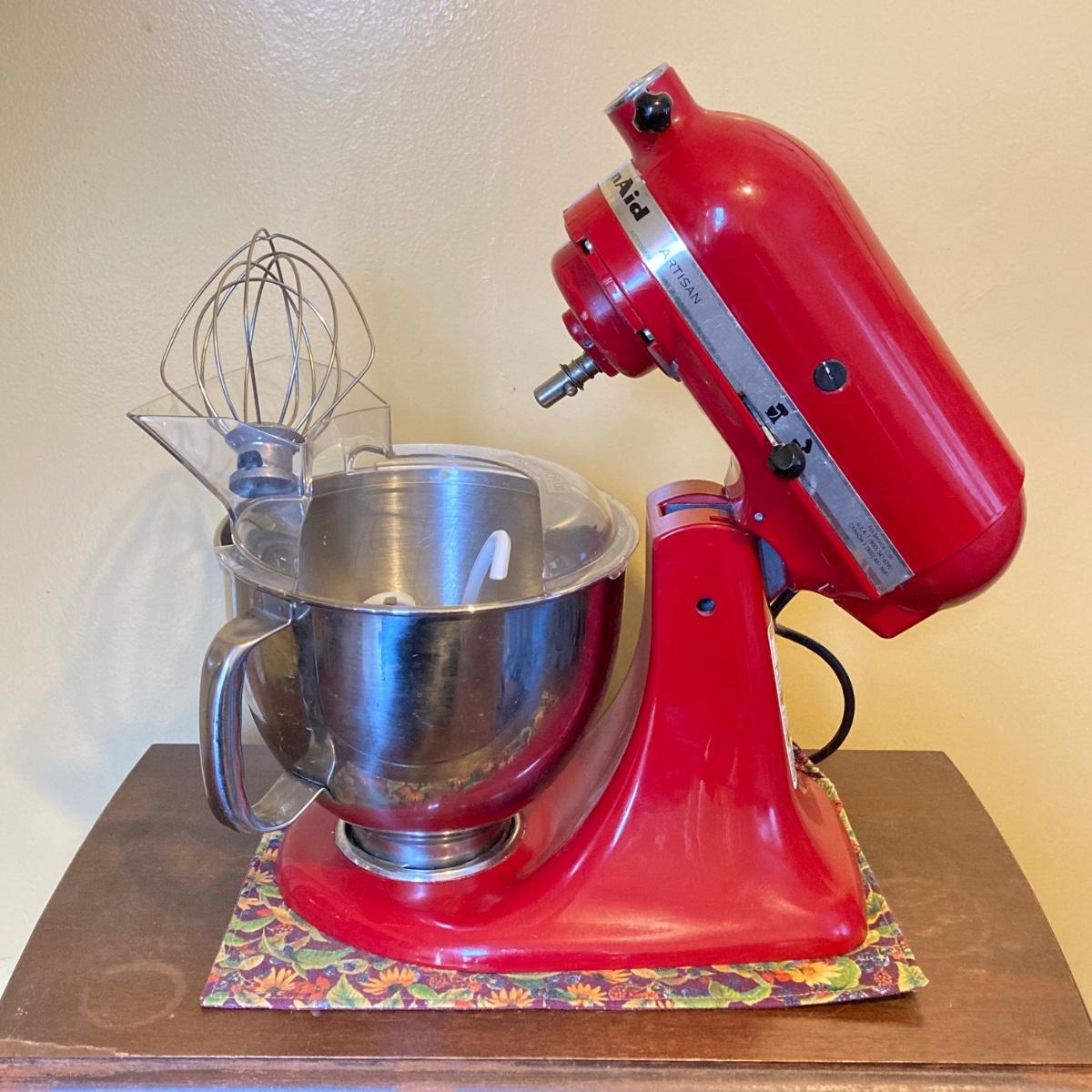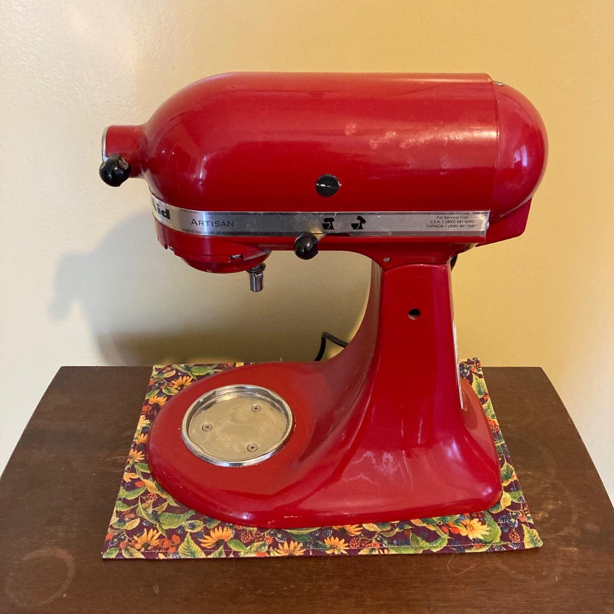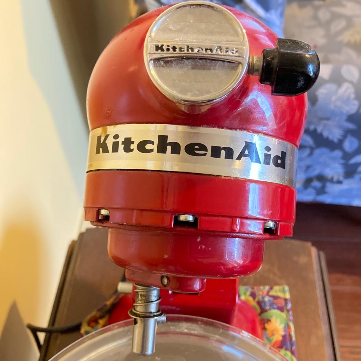 LOT 35: Red Kitchen Aid Table Mixer with Accessories