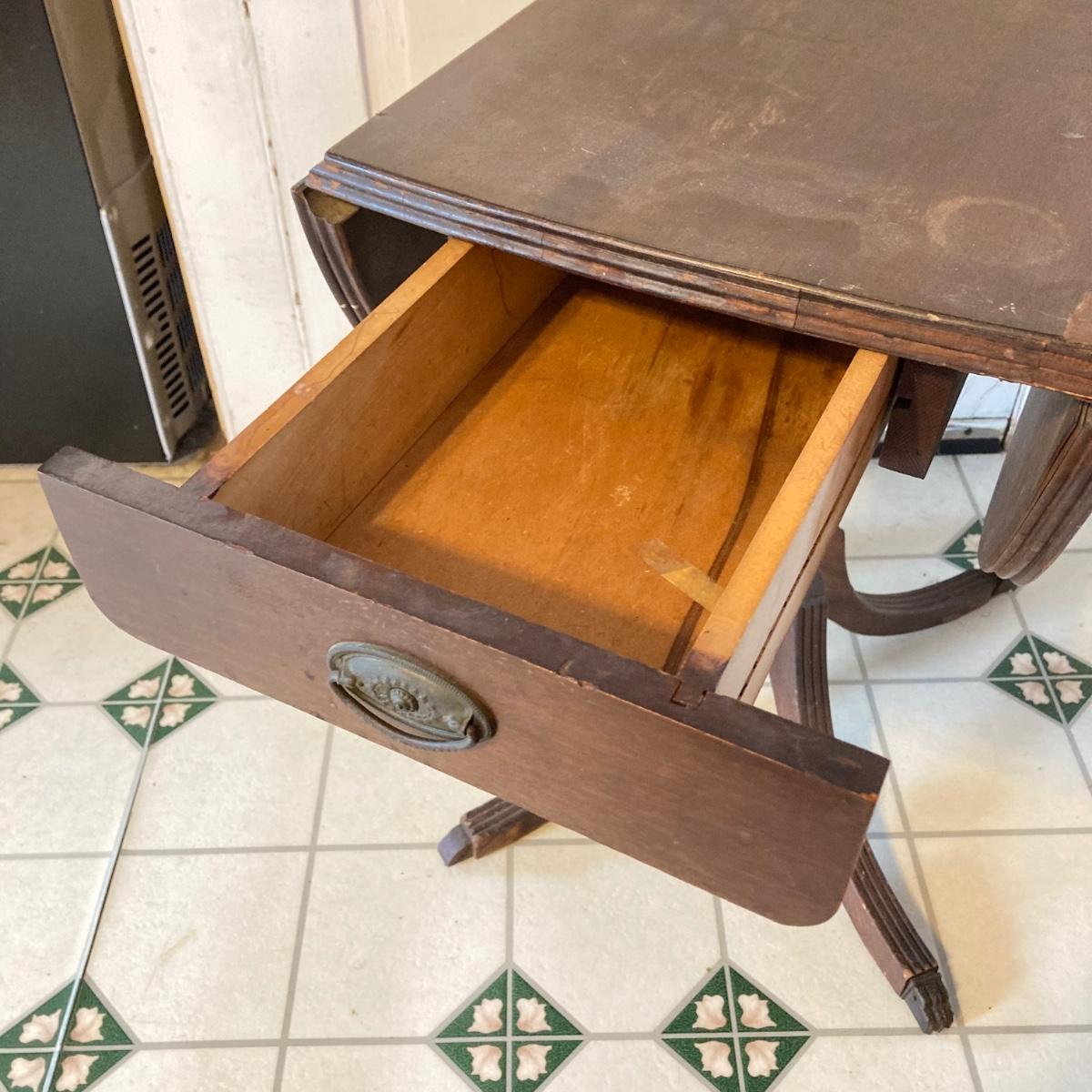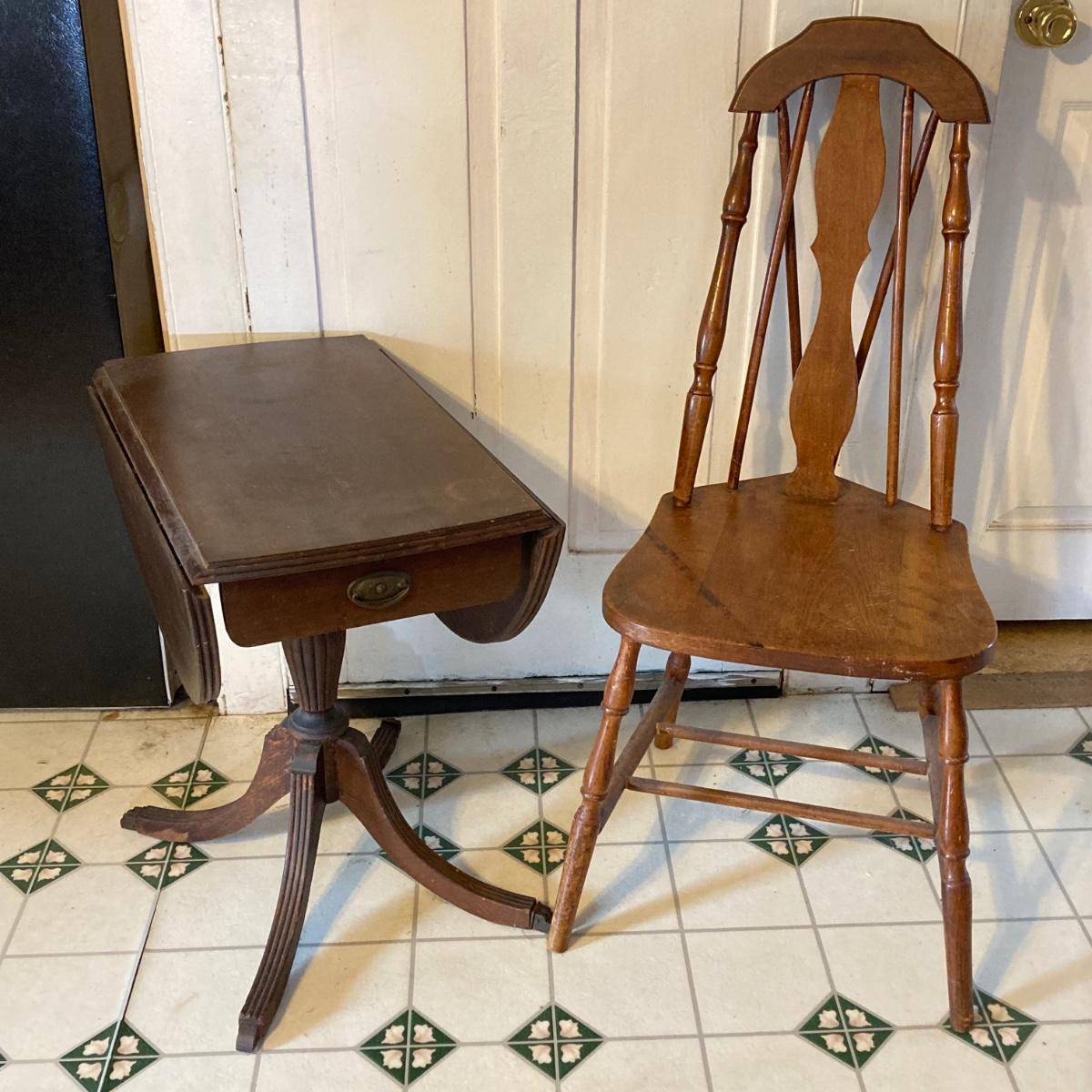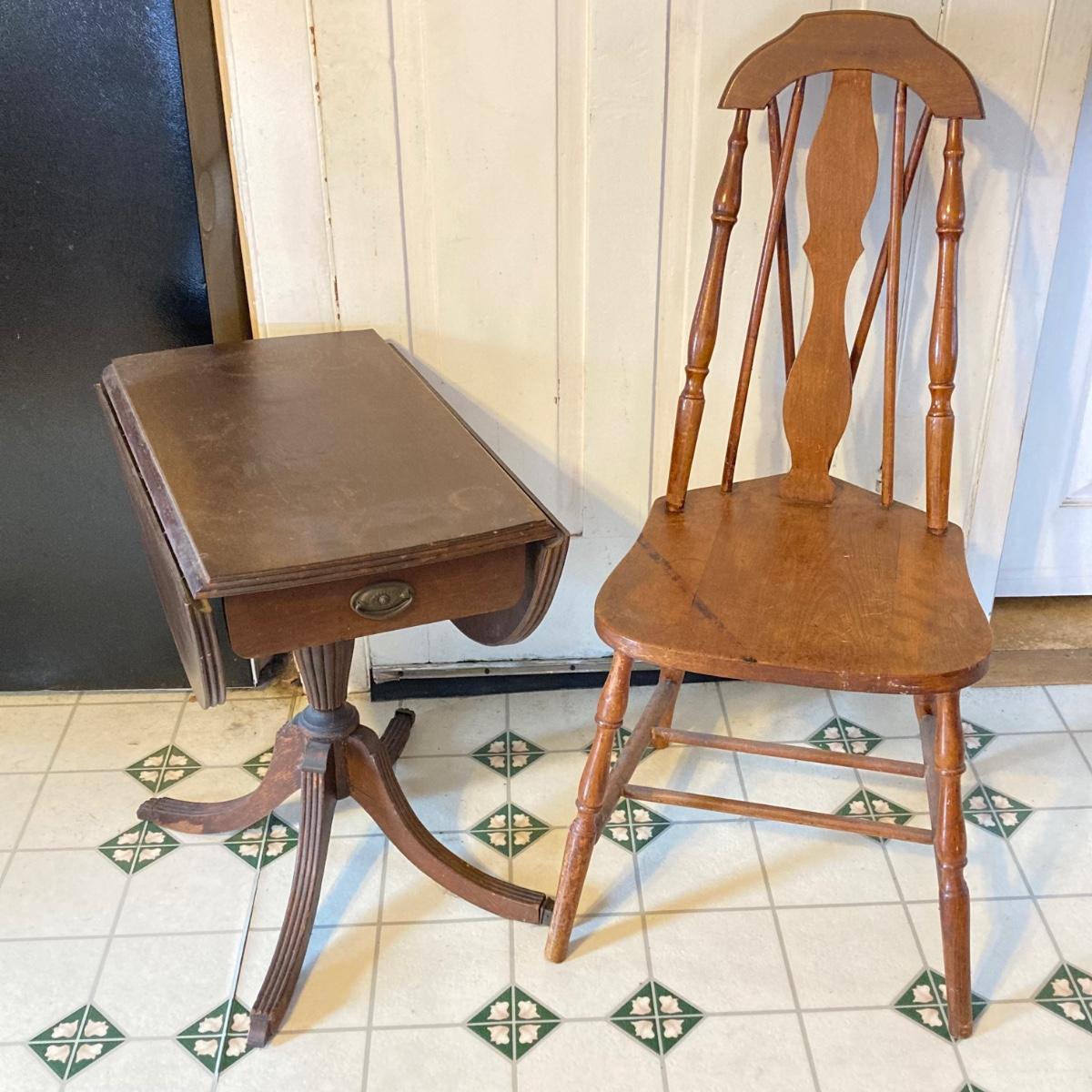 LOT 36: Vintage / Antique Furniture - Drop Leaf Table Drawer and Tapered Windsor Splat Brace Back Spindle Chair