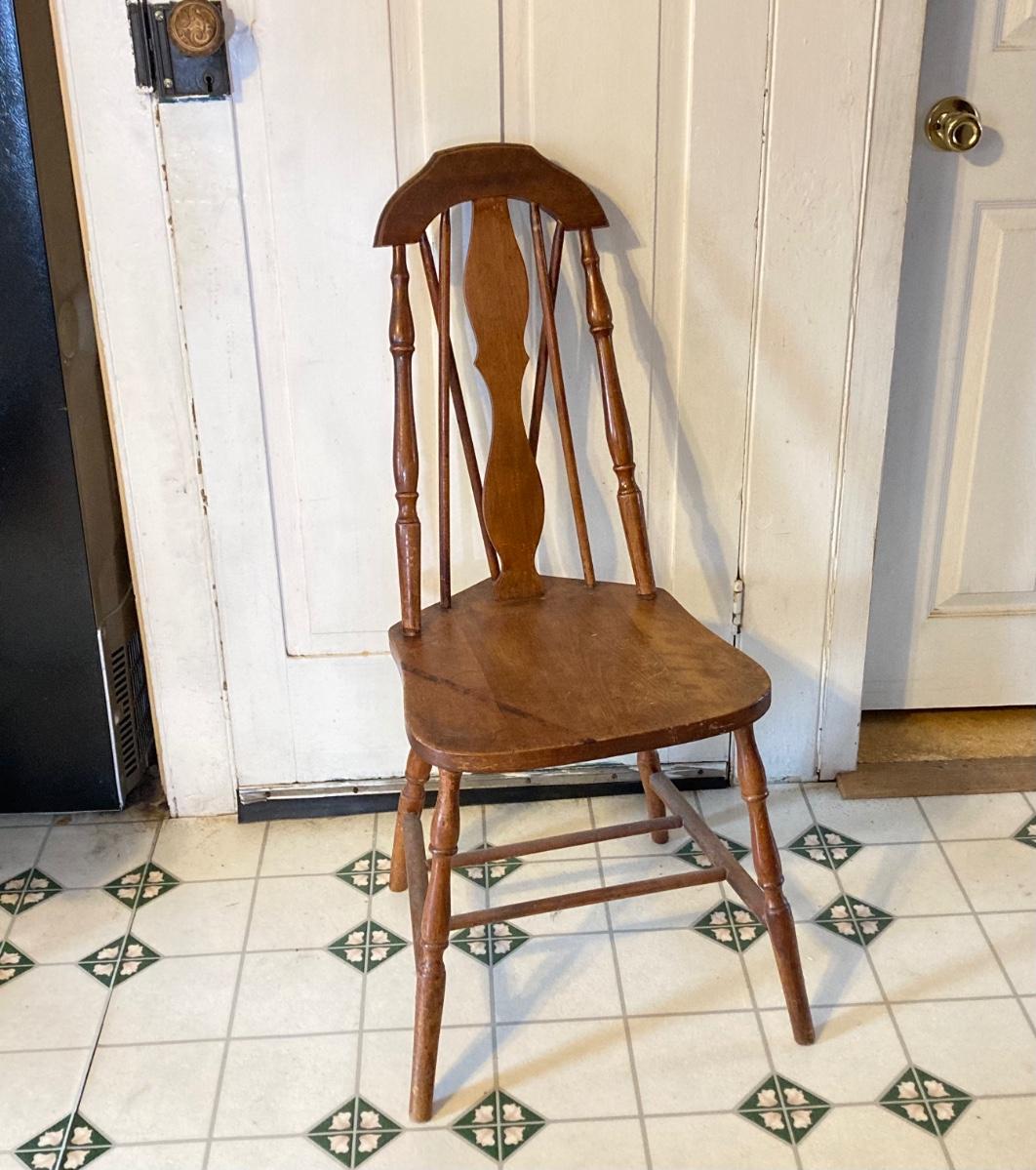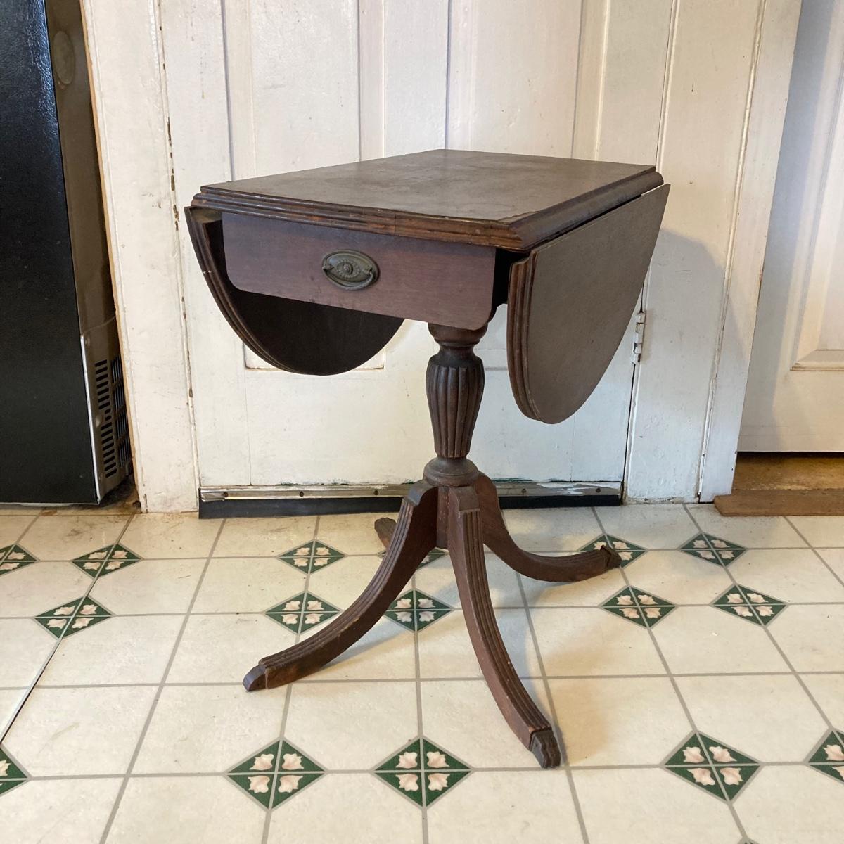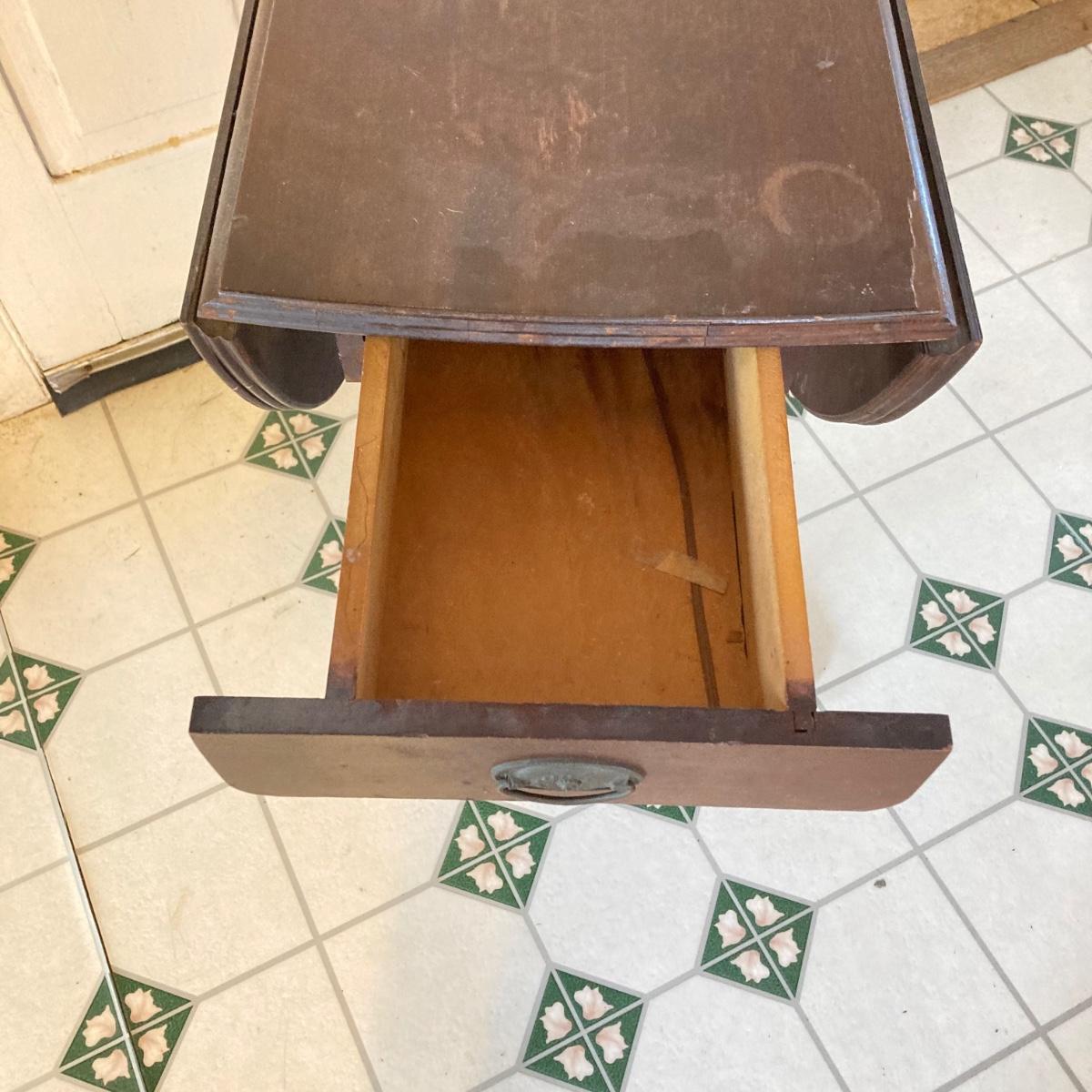 LOT 36: Vintage / Antique Furniture - Drop Leaf Table Drawer and Tapered Windsor Splat Brace Back Spindle Chair